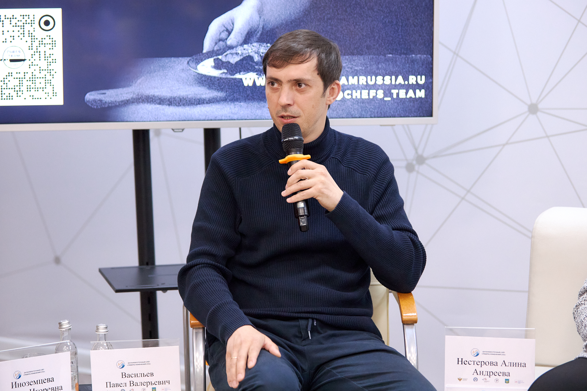 Вице-президент ассоциации шеф-поваров России Chefs Team Russia Павел Васильев вдохновил своим примером ребят на развитие в поварском искусстве, рассказал, как и через что он проходил, достигая успеха. Выступление Павла вызвало очень много вопросов и всем запомнилось.