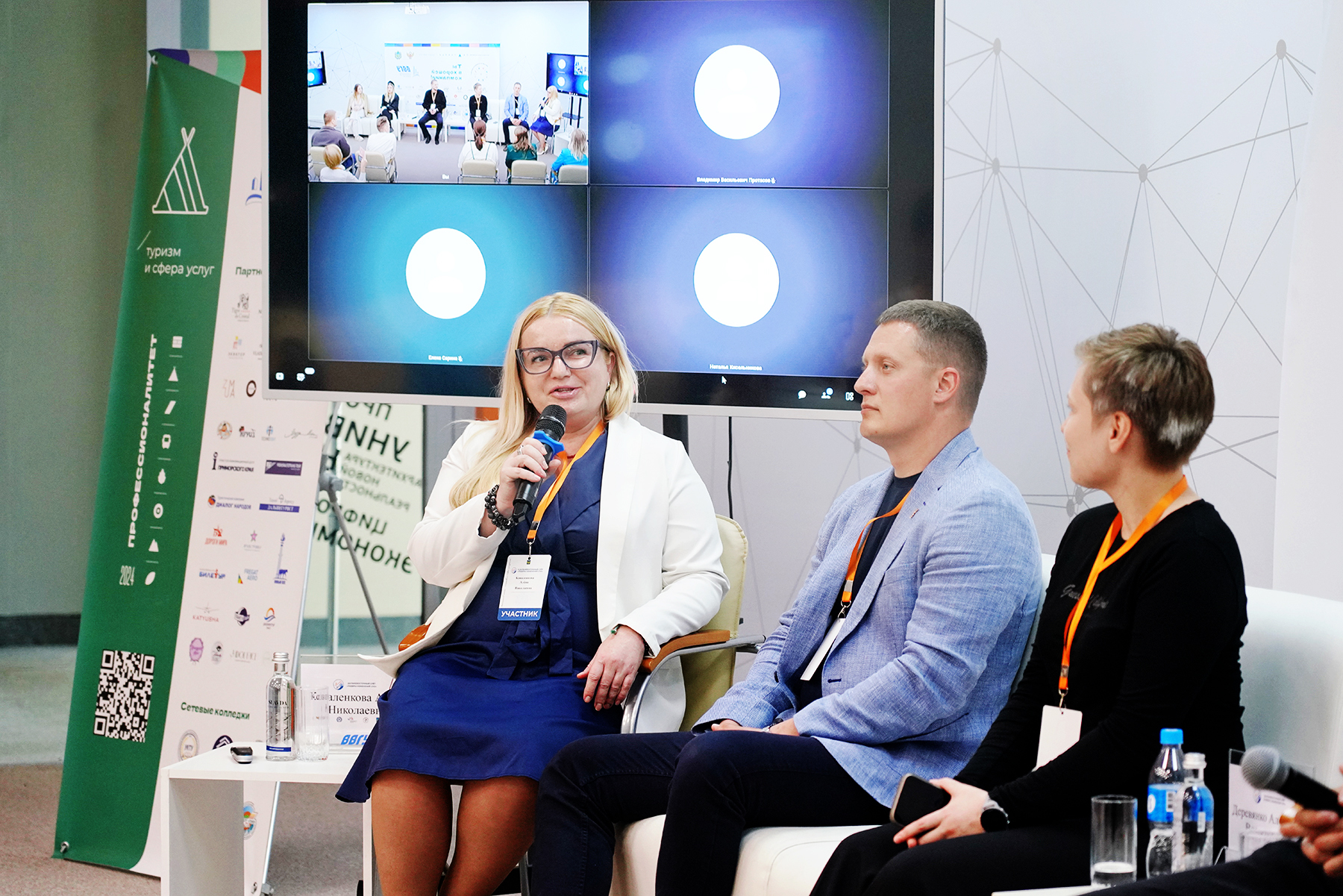 В рамках круглого стола с приветственным словом и докладом выступила Юлия Сметанникова, сопредседатель отраслевой ассоциации «Туризм и сфера услуг», директор Новокузнецкого торгово-экономического техникума. Она поделилась опытом создания учебно-производственного комплекса в кластере «Гостеприимный Кузбасс».
