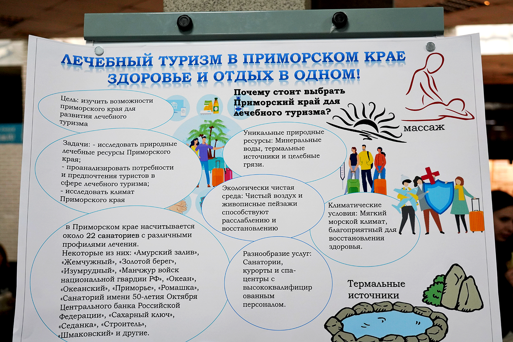 Не менее значимые работы в сфере адаптивной медицины. Среди них проекты реабилитации больных варикозом и артрозом, улучшения качества обработки рентгеновских снимков, лечебного туризма в Приморье. Затронули на форуме и вопросы, связанные с молодежью. Будущие специалисты по работы с молодежью изучили ориентиры и ценности молодого поколения, онлайн-образование среди студентов.