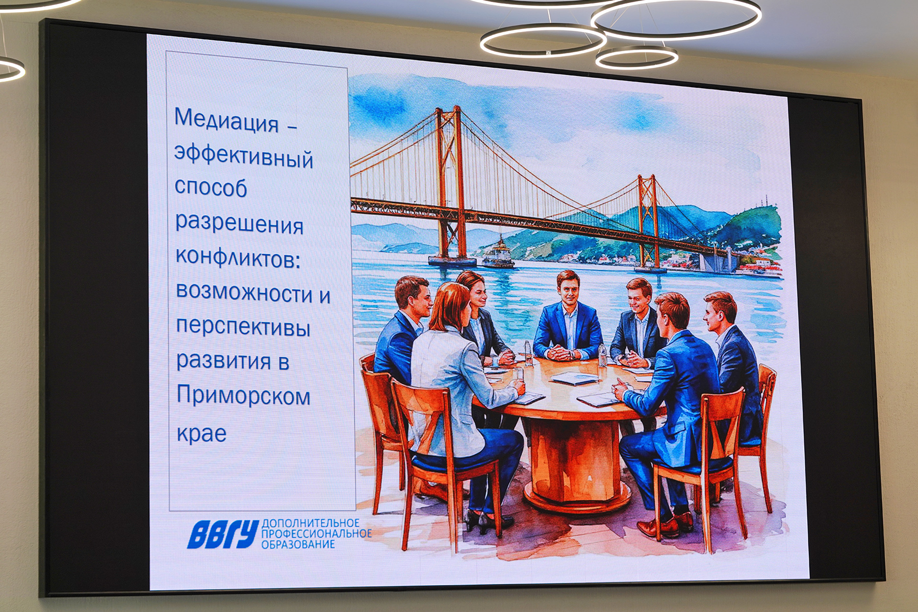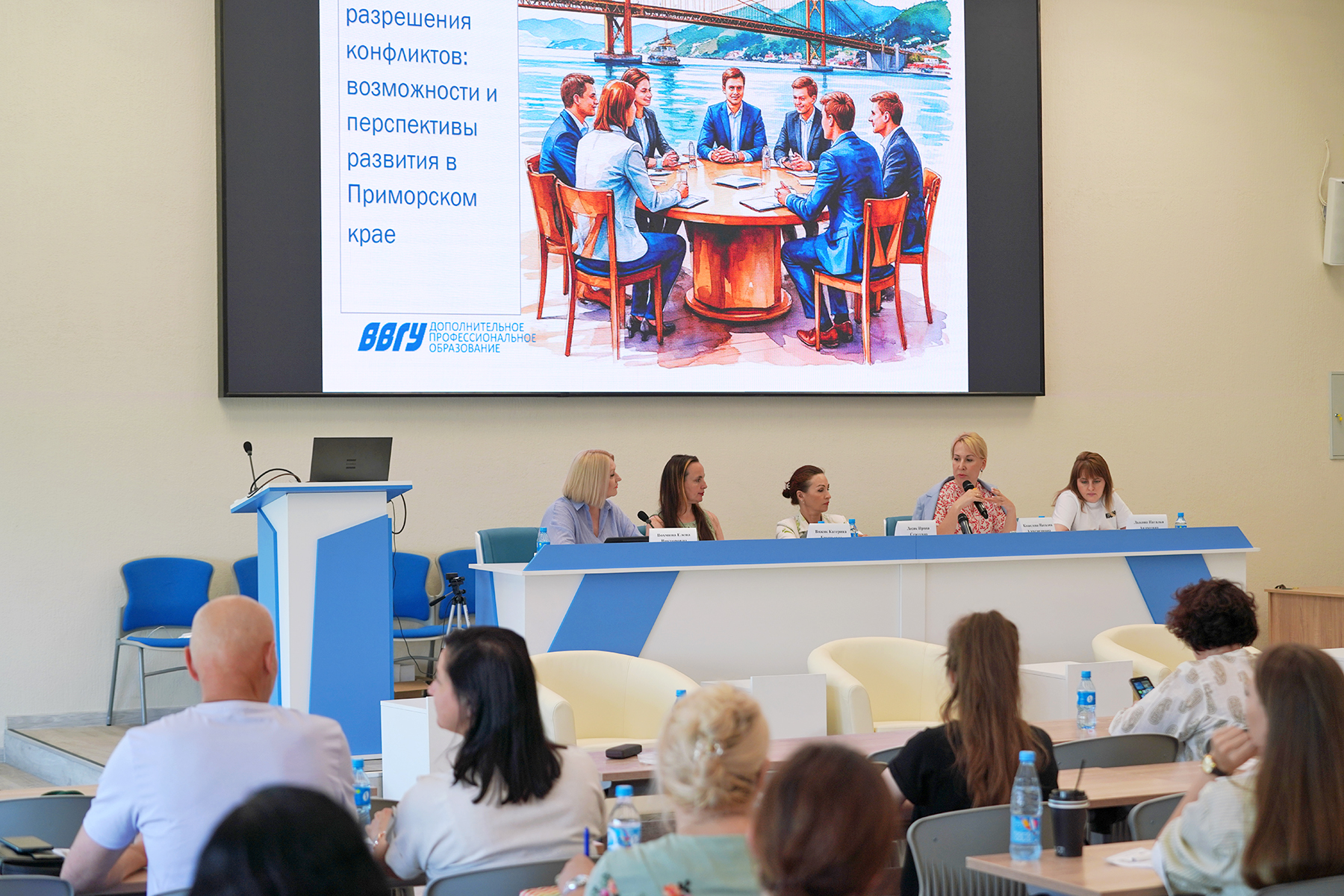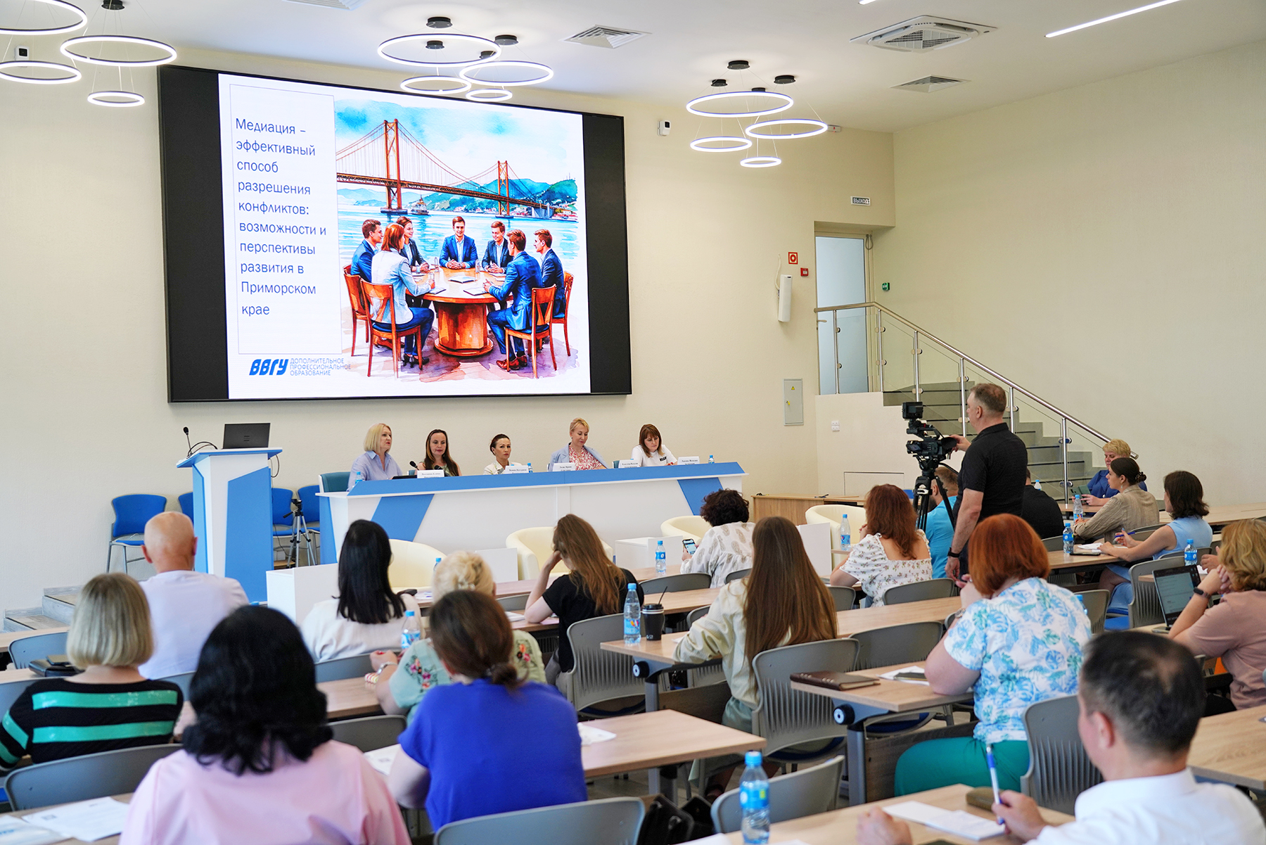 Во Владивостокском государственном университете прошёл круглый стол по вопросам медиации и её развития в Приморском крае. Сегодня вуз – одна из первых площадок на Дальнем Востоке по подготовке специалистов этой сферы.