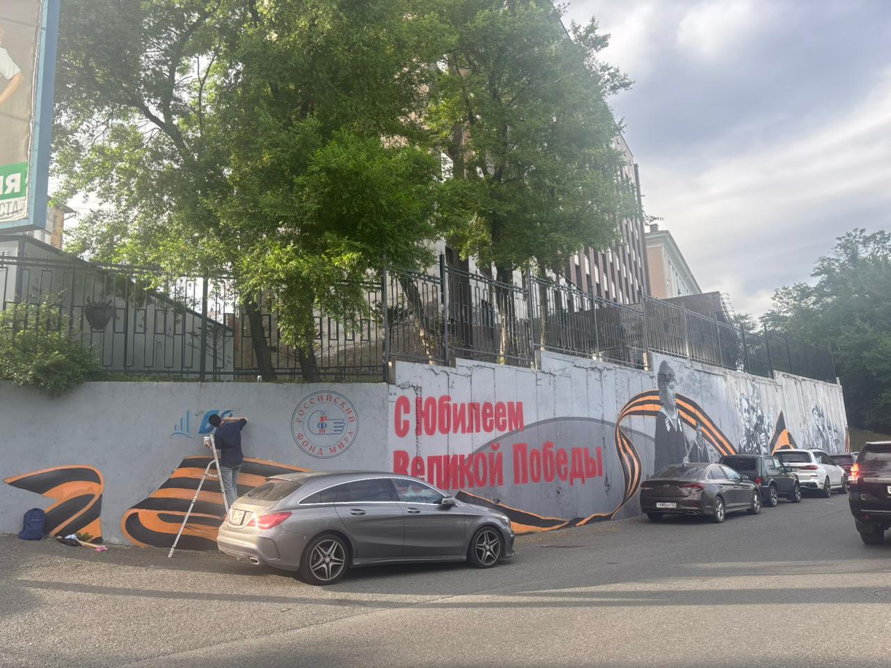 Преподаватели и студенты Колледжа информационных и креативных технологий ВВГУ приняли участие в росписи подпорной стены. Новый мурал появился в районе дома № 12в по улице Верхнепортовой.