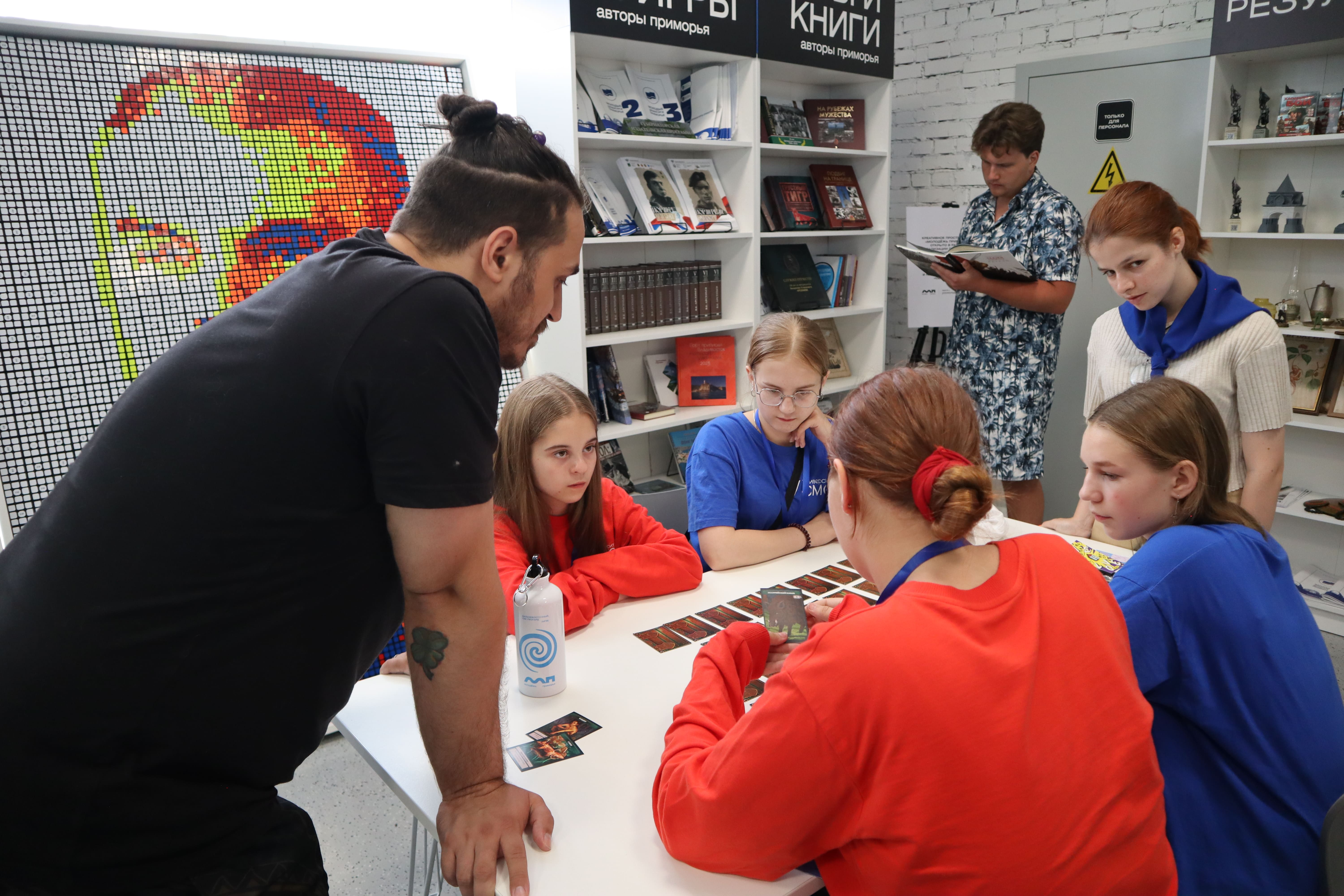 Гостей познакомили с работой центра, провели экскурсию по пространству и творческим лабораториям. Специально для школьников из Тореза провели игротеку, посвящённую истории Приморья. Участников смены познакомили с проектами, созданными в молодёжном креативном пространстве. Так, в центре разработаны настольные игры «Хасанские бои» и «Дневники Арсеньева». Их сюжетные линии основаны на исторических событиях Приморья.