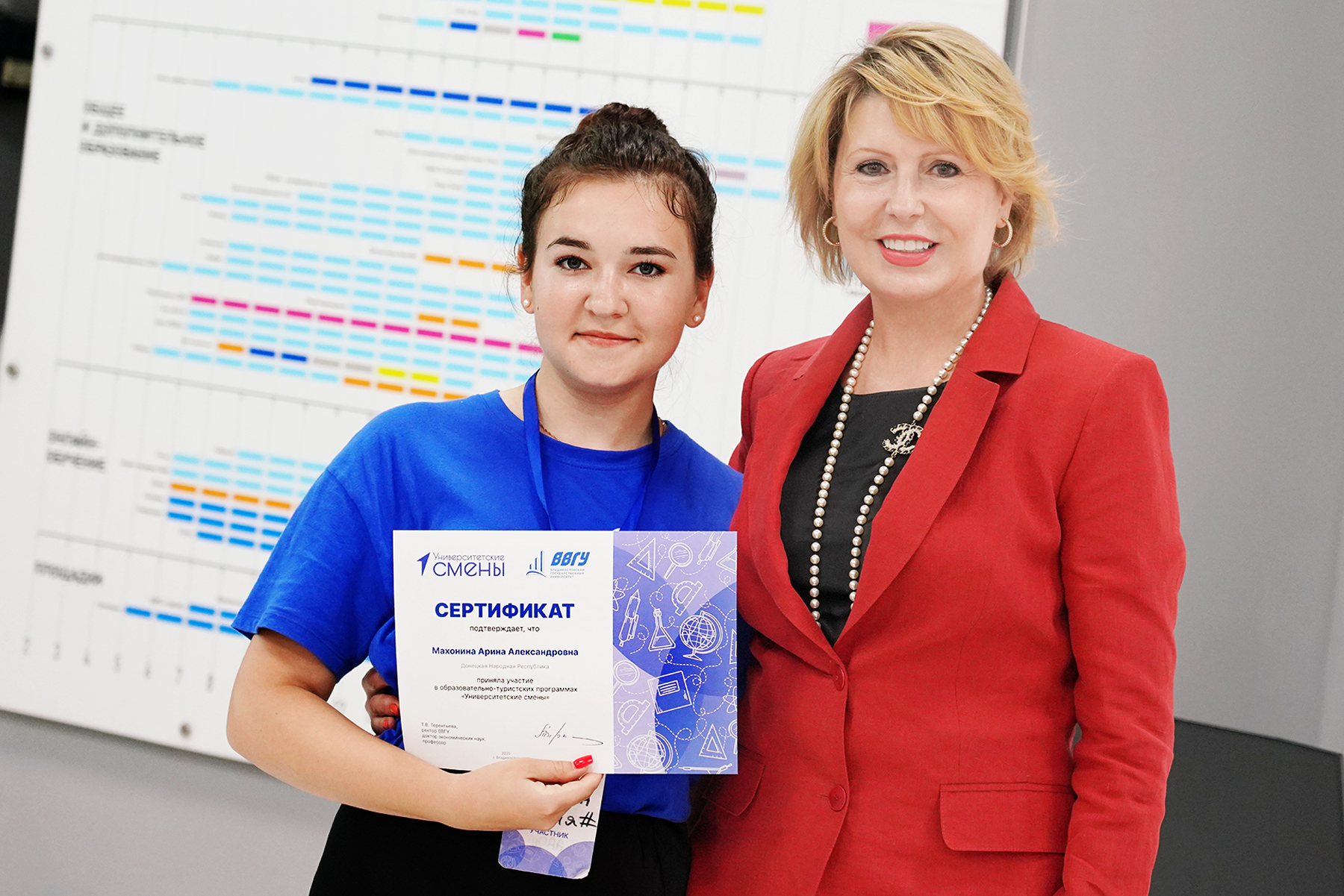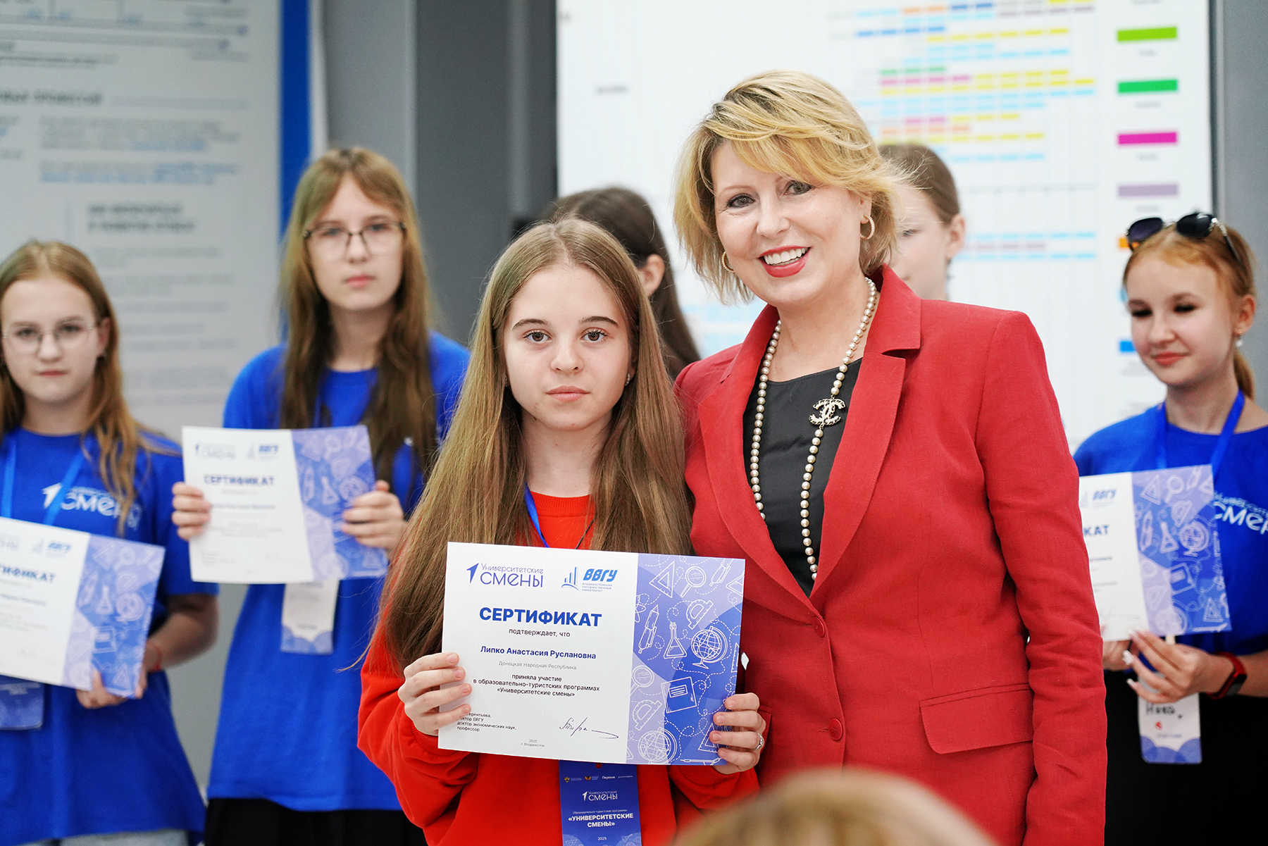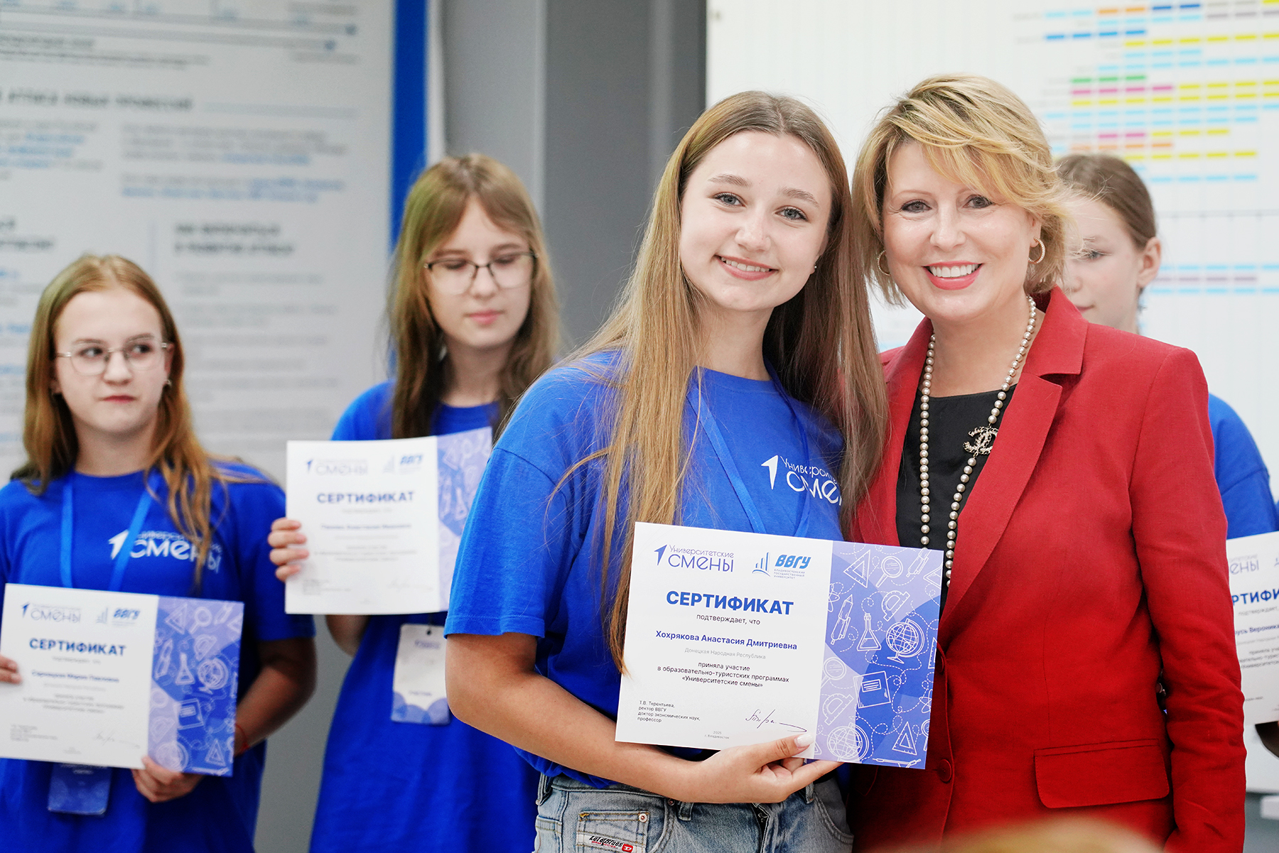 Ректор вручила школьникам сертификаты об участии в «Университетских сменах». Участники программы сделали памятное фото с Татьяной Валерьевной.![]()