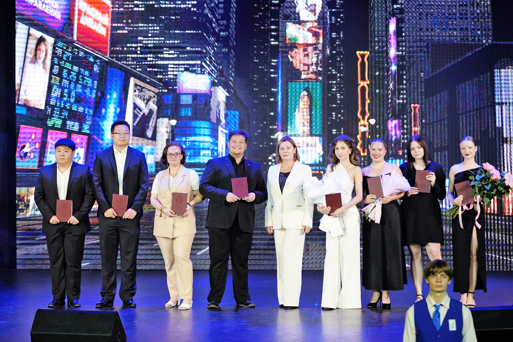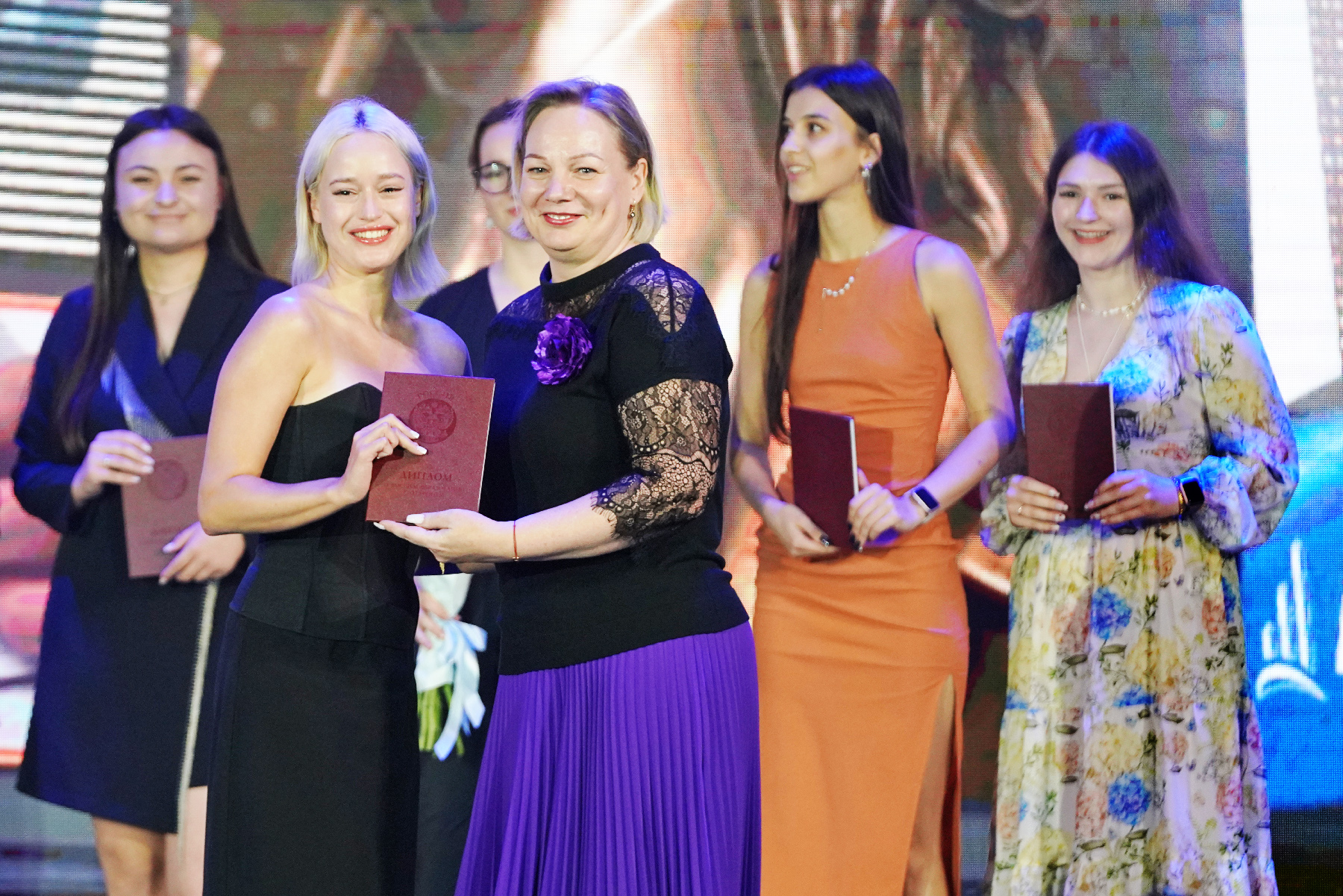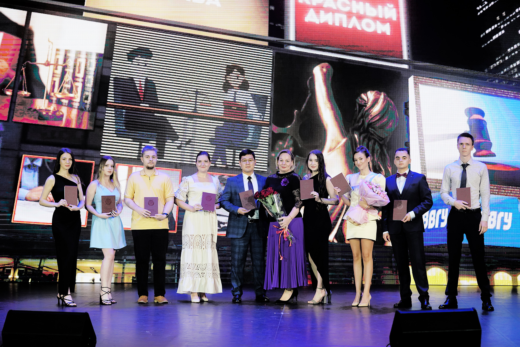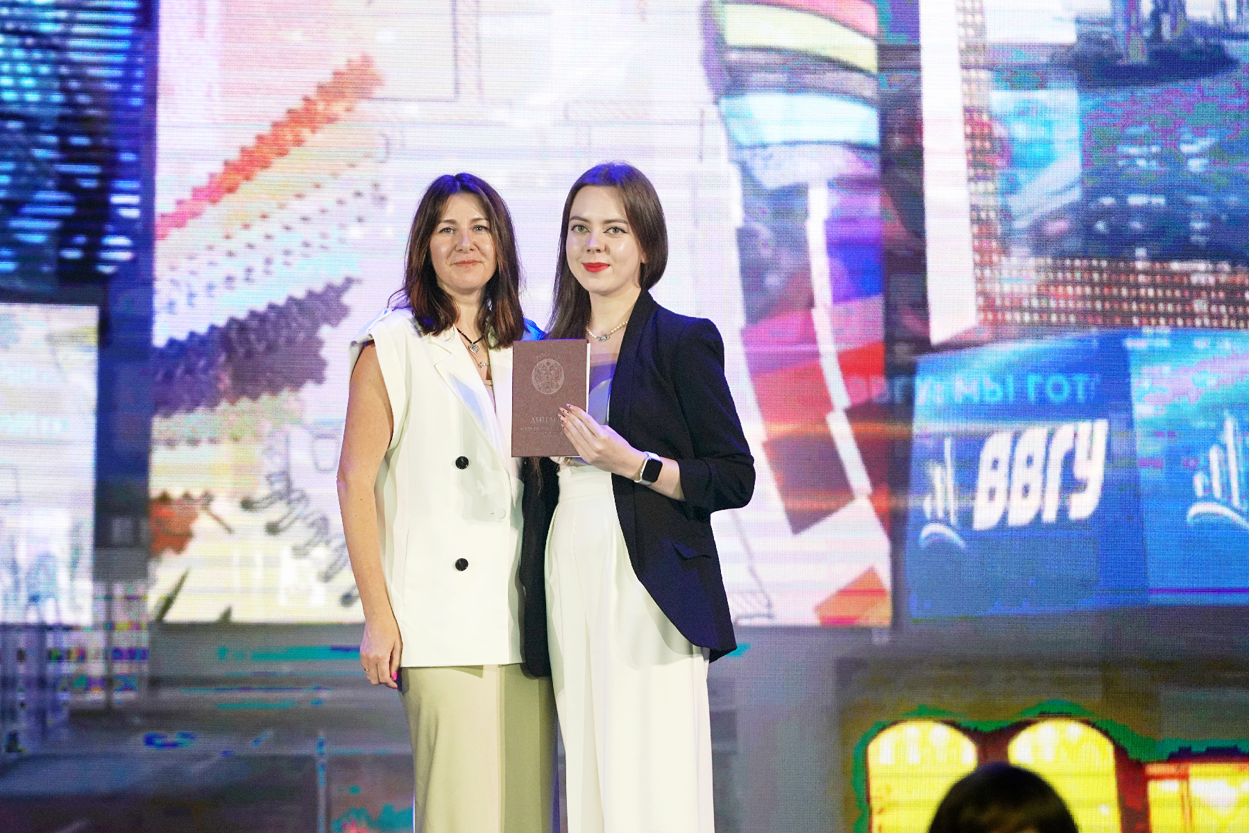 В торжественной обстановке красные дипломы получили выпускники институтов ВВГУ. В этом году подразделения вуза выпустили более 900 молодых специалистов. Директора институтов выступили с поздравительными речами, рассказали о своих студентах, выпускающихся во взрослую жизнь, дали напутствия и пригласили продолжить обучение и построить карьеру в родном вузе.