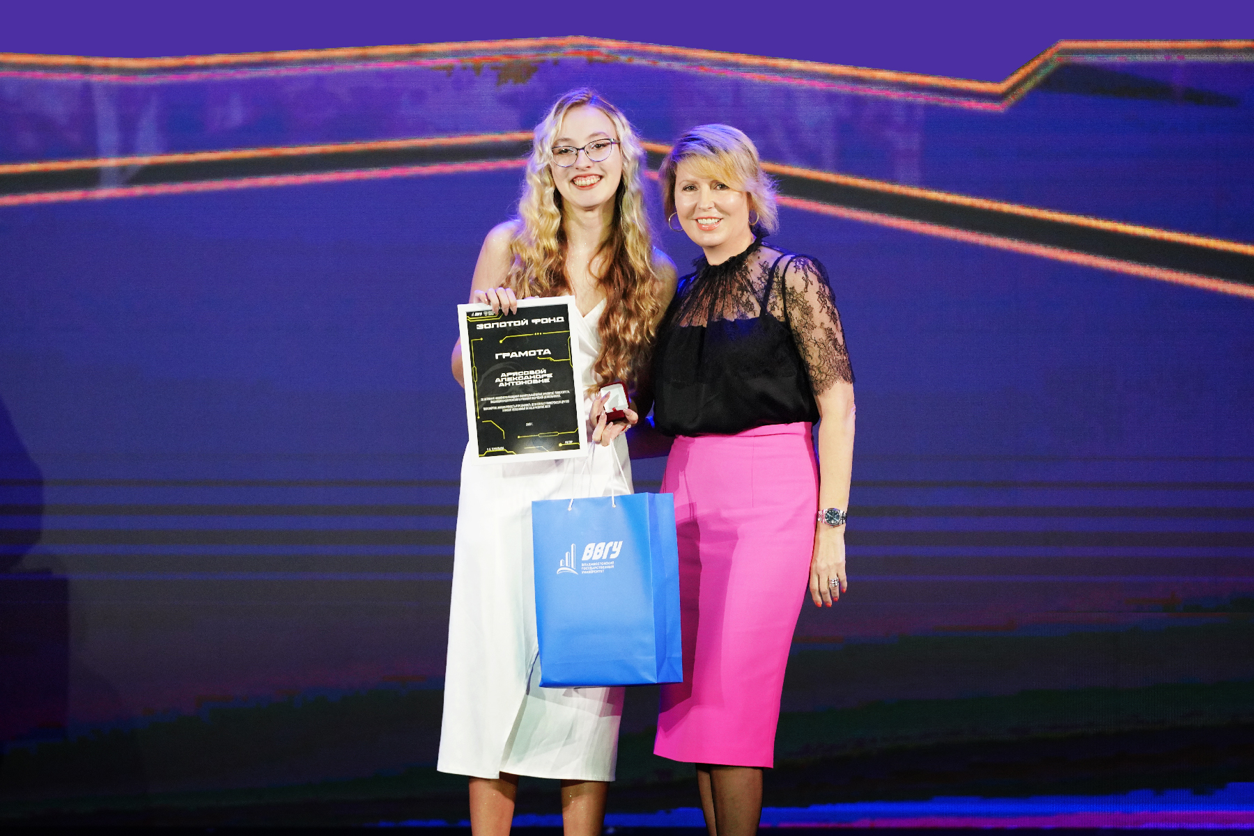 Ректор ВВГУ тепло поздравила лучших из лучших выпускников, удостоенных чести – войти в «Золотой фонд ВВГУ». Ректор особо подчеркнула исключительную значимость этих студентов для университета.
