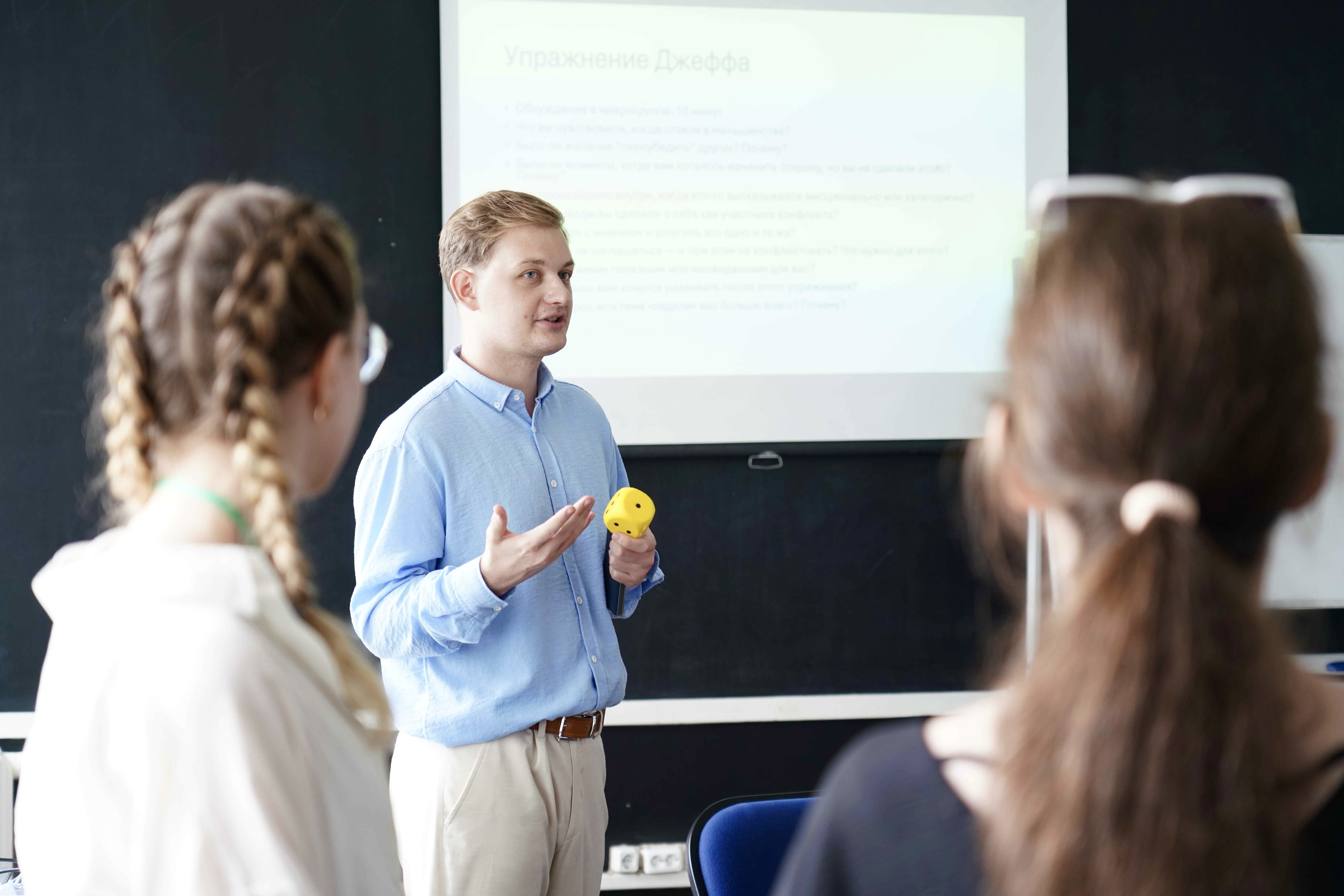 На первом занятии сотрудники обсудили проблему управления конфликтами. Наставником их выступил старший преподаватель кафедры общей и юридической психологии Александр Самойличенко. За его спиной десятки тренингов, обучение по направлениям «Управление конфликтами в профессиональной сфере» и «Основы деструктологии».