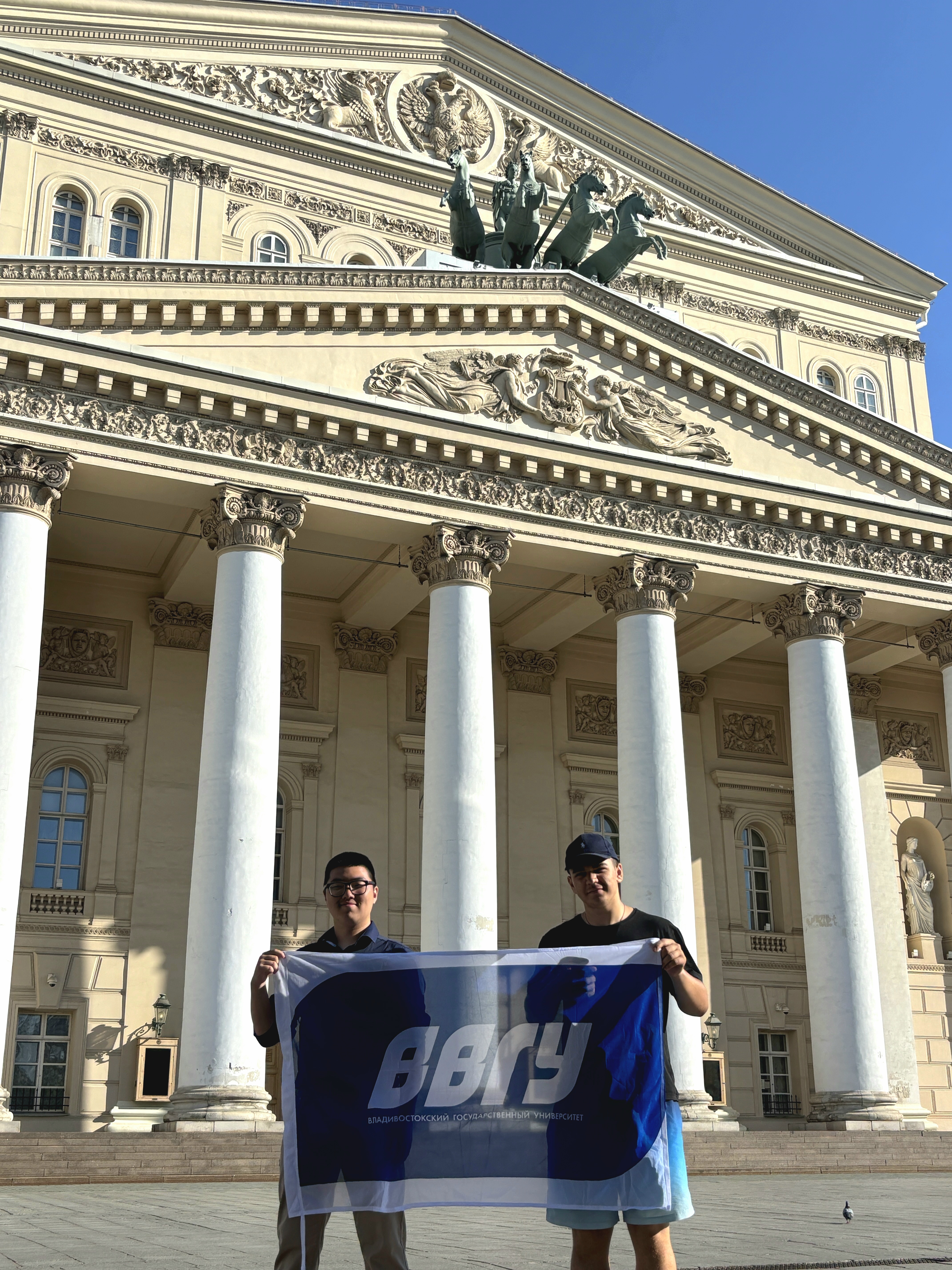 Ещё в выходные Максим Кван и Эрнест Костанян участвовали в фестивале молодого искусства «Таврида» в Крыму, а уже сегодня они – в Москве. Между перелётами студенты зря времени не теряют – исследуют столицу России. Так, парни уже посетили Большой театр.