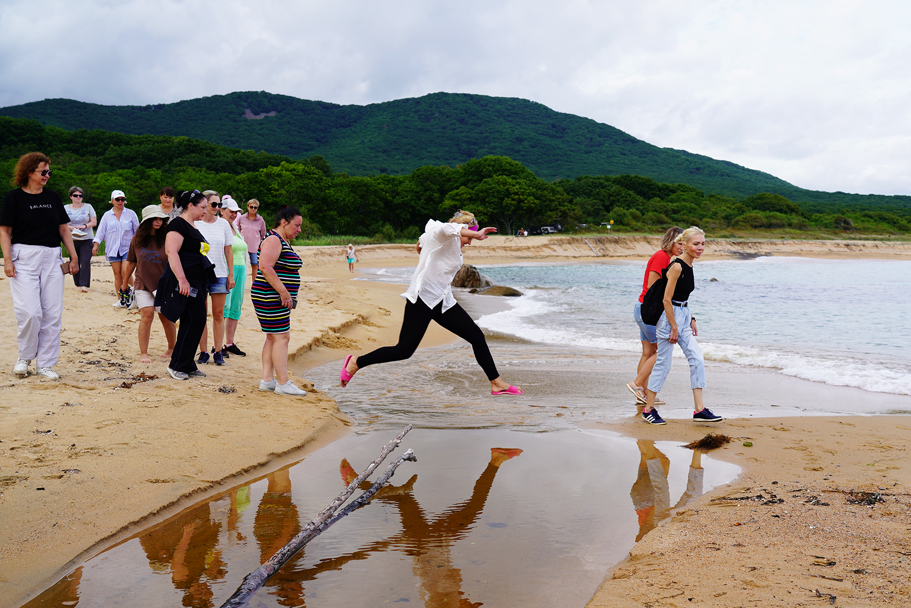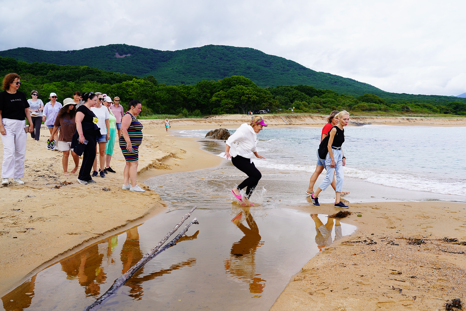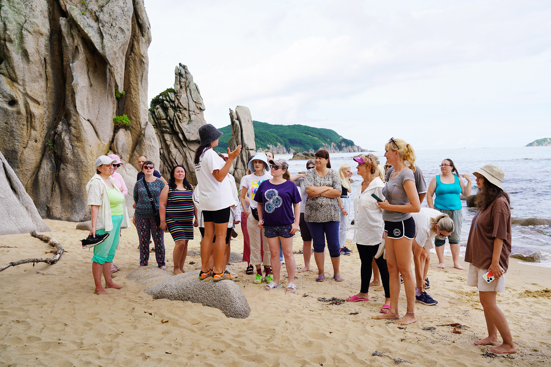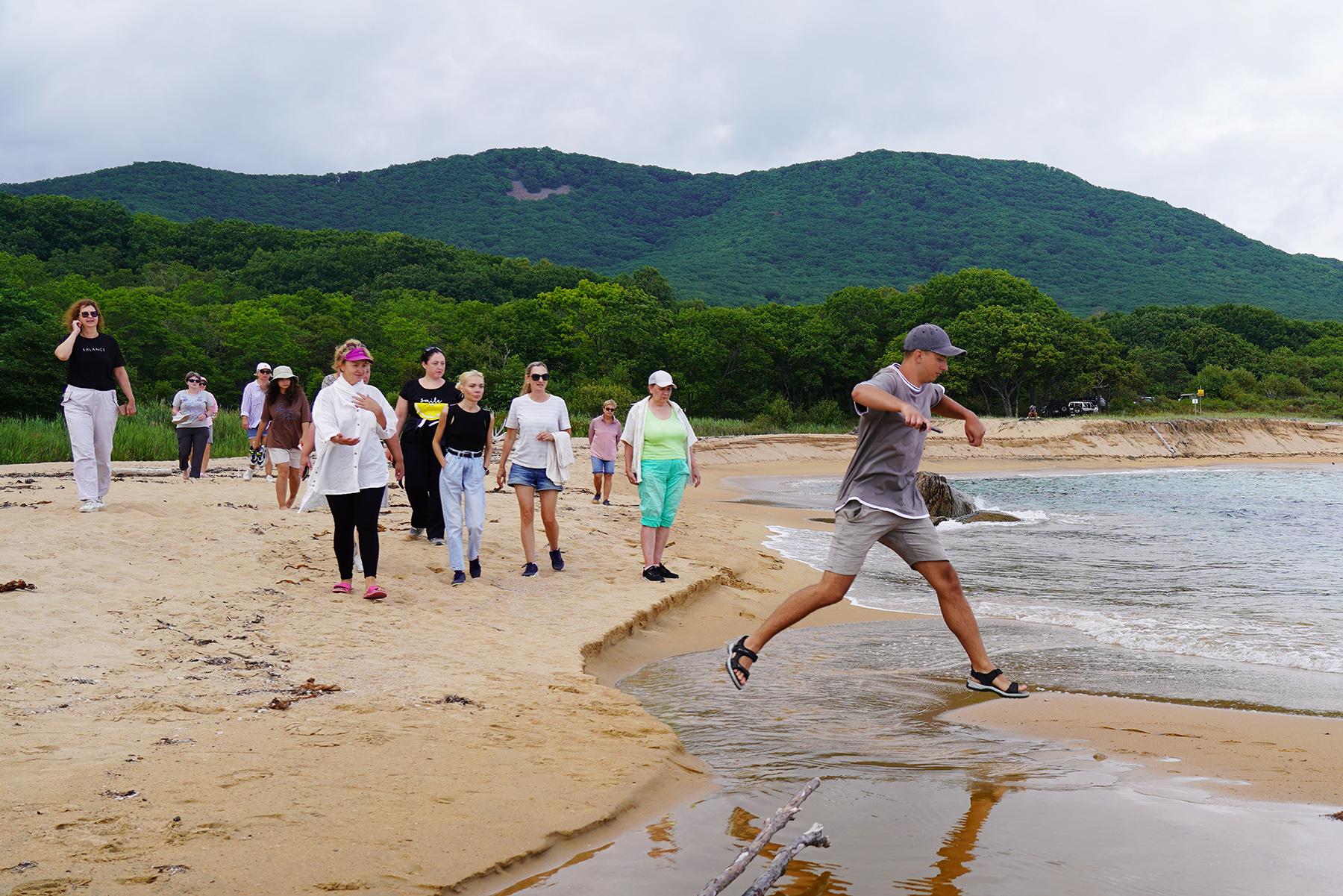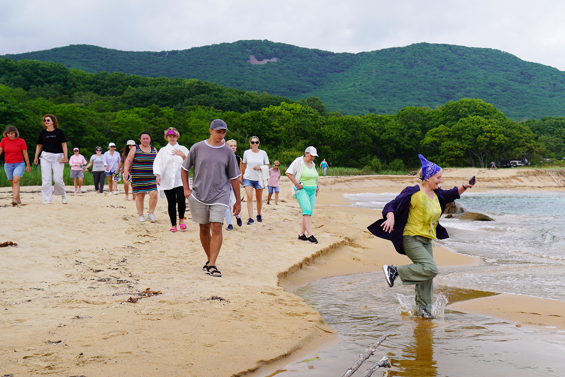 В завершение поездки сотрудники совершили пешую прогулку к бухте Любви, а также к кекуру Акула. Кроме природных пейзажей гости насладились купанием в чистейших заповедных водоёмах и импровизированным пикником на берегу Японского моря.