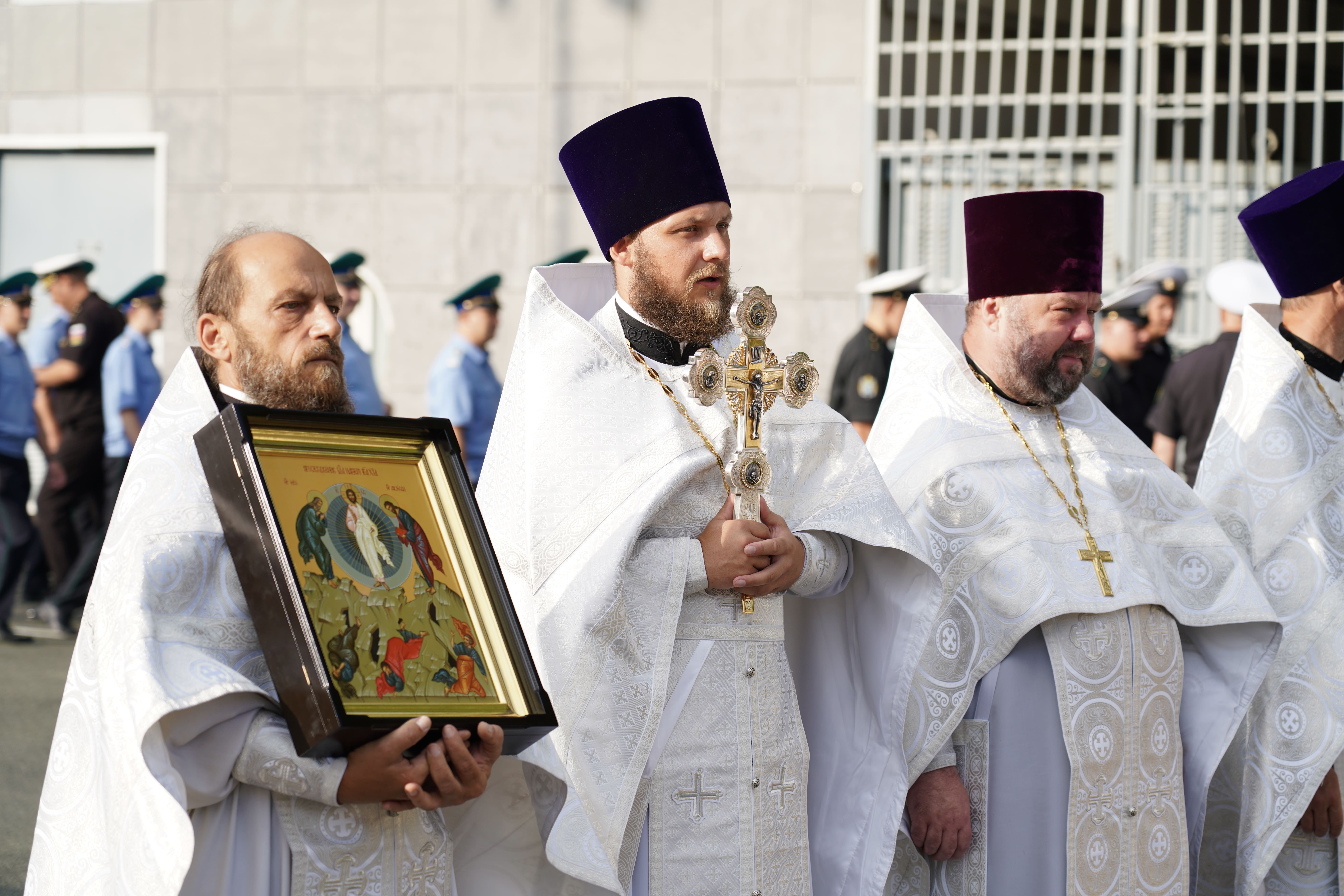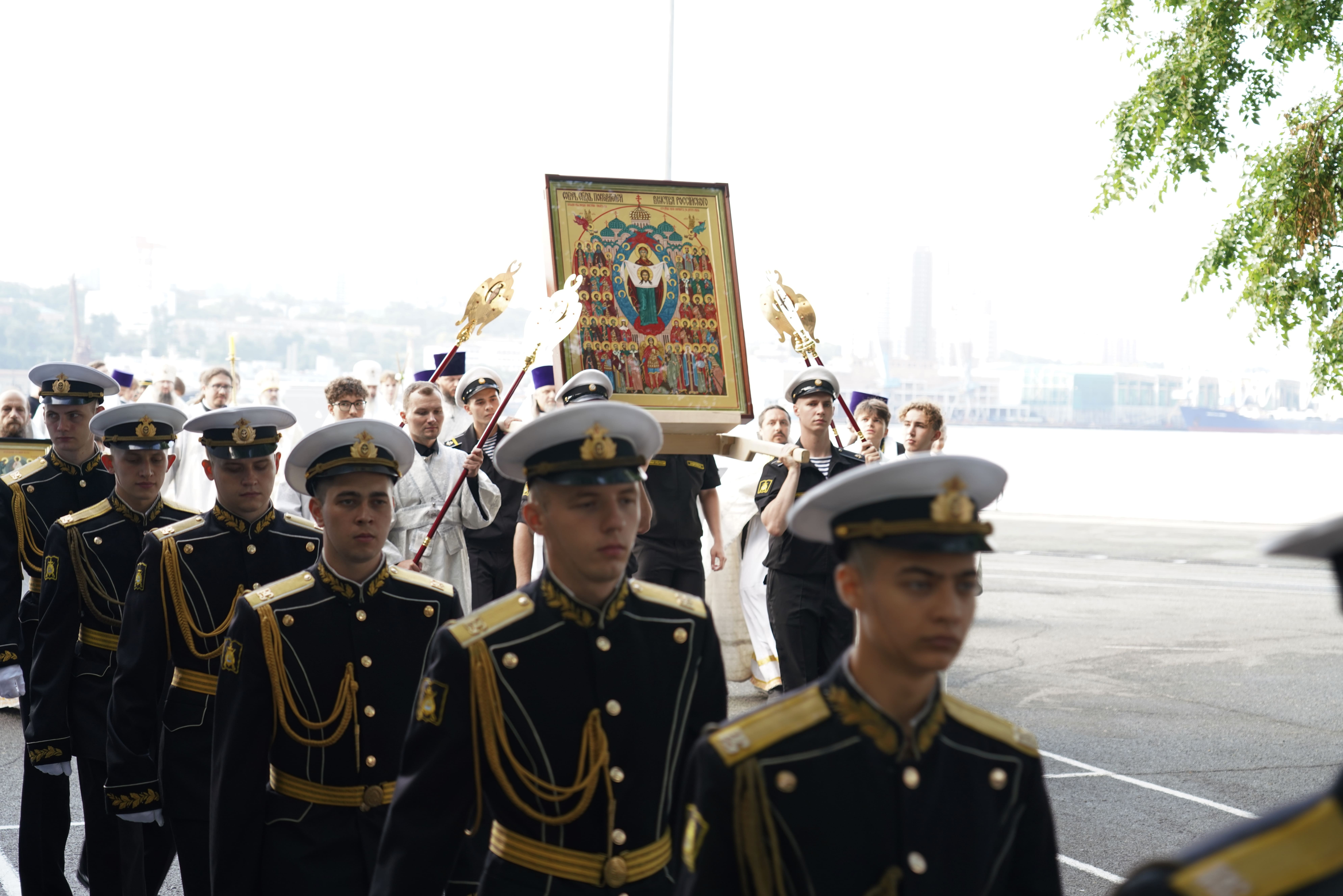 Во Владивостоке завершился крестный ход с иконой «Собор покровителей воинства российского». Шествие длилось 59 дней по городам, посёлкам и военным частям Приморского края. В дальневосточной столице икону встретили курсанты военно-учебного центра ВВГУ, моряки Тихоокеанского флота (ТОФ), сотрудники администрации и жители города.