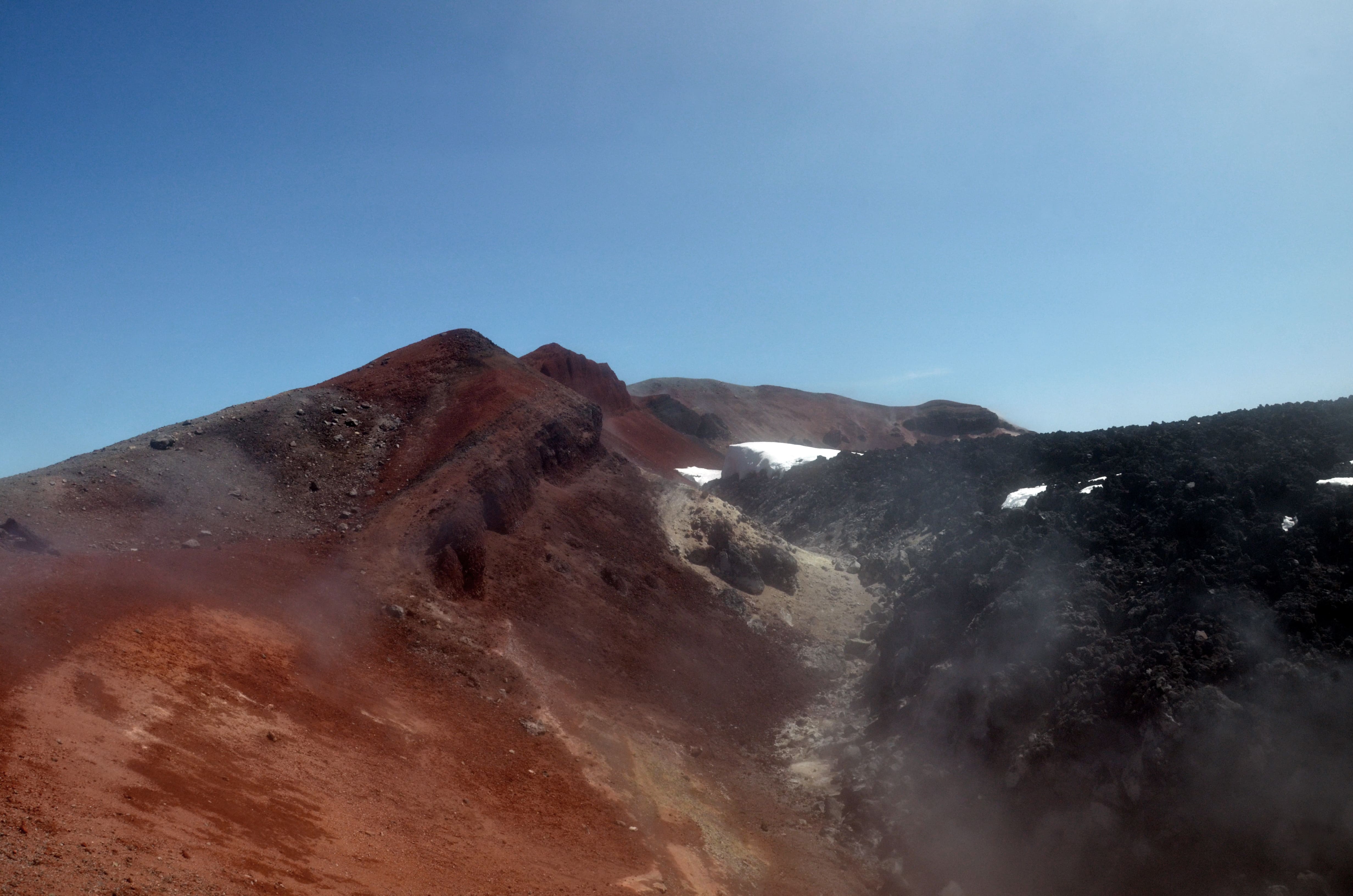Находясь в кратере не сложно представить, какие процессы происходили на вулкане при извержении. В 1991 году воронка вулкана почти полностью заполнилась лавой. Небольшой поток её излился на южный склон конуса. В кратере вулкана тепло, дымят фумаролы (клубящиеся массы горячих вулканических газов), пахнет сероводородом. По застывшей в кратере лаве можно походить, но надо быть осторожным, так как местами она ещё теплая, а застывшие причудливые формы очень острые.