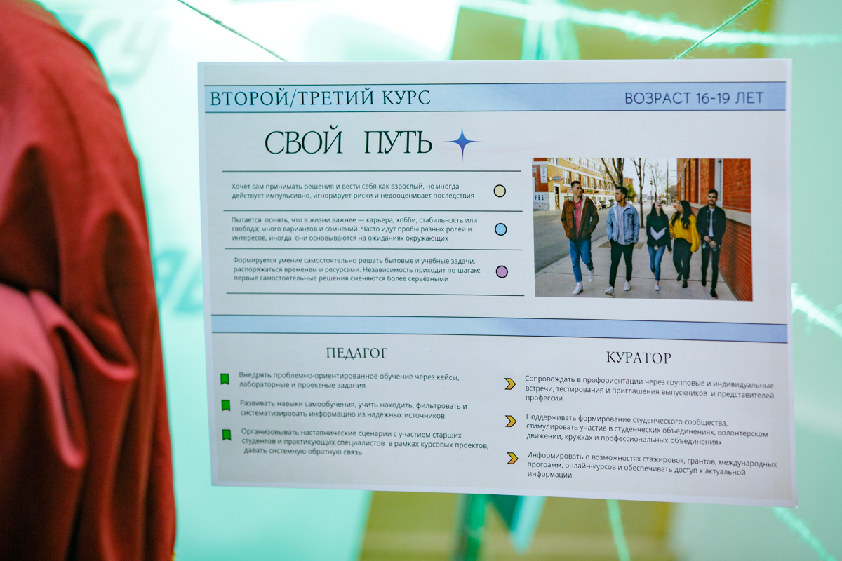 Наталья Никульченкова провела образовательный блок для гостей форума. Он включил в себя лекцию, тематический квиз, а также «кураторский чай» – круглый стол и рефлексию. Участники обсудили основные принципы работы со студентами, её юридические и психологические аспекты. Завершился форум в тёплом «семейном кругу» – за чашкой чая кураторы поделились своим опытом, интересными историями с работы, а также планами на новый учебный год.