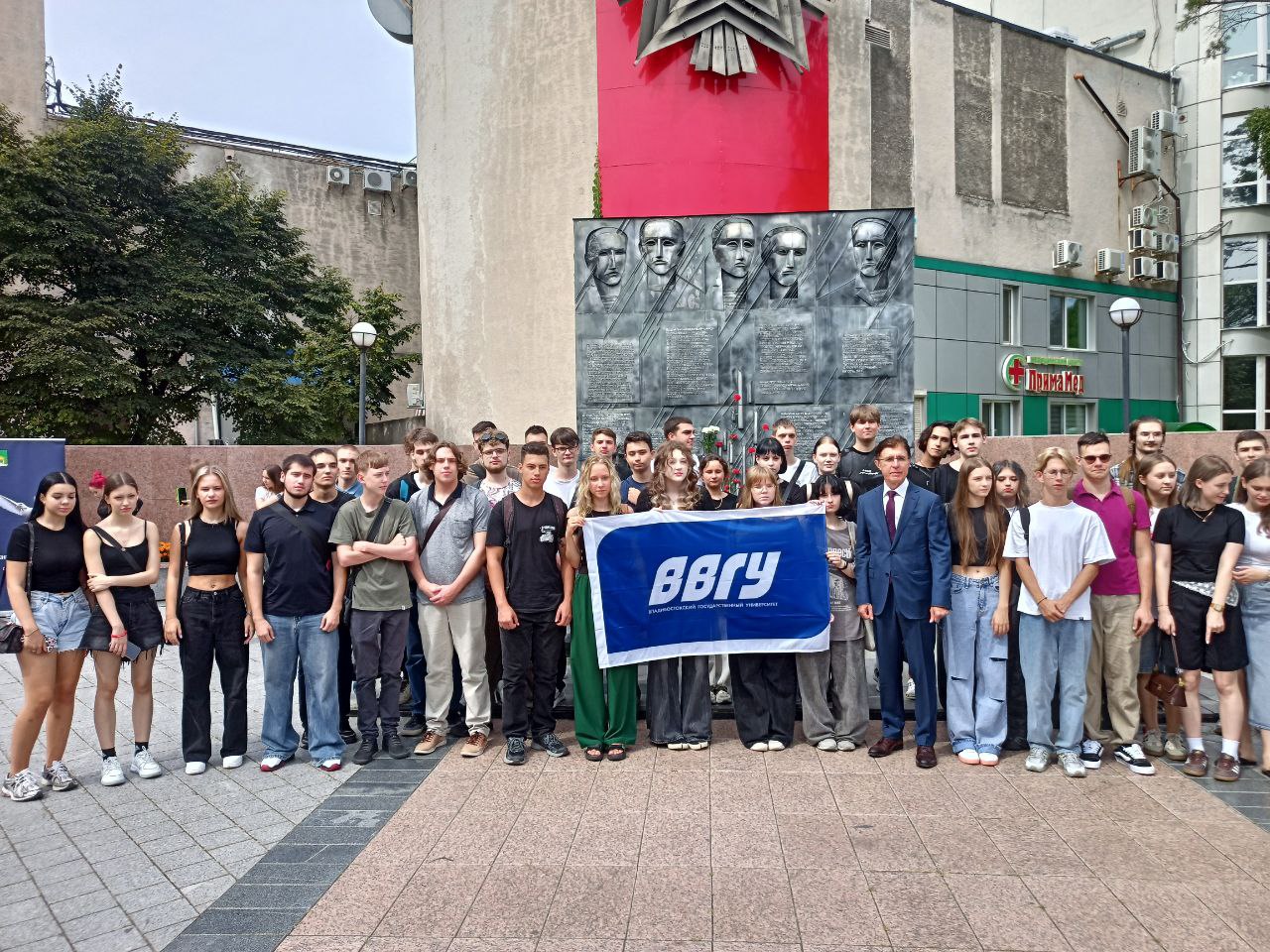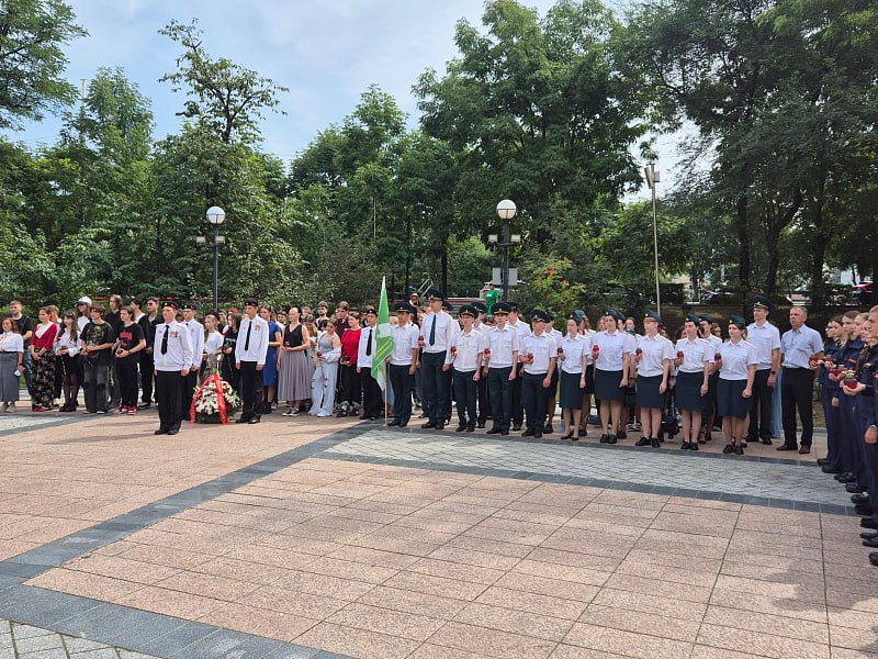 После открытия выставки студенты ВВГУ отправились на мероприятие, посвящённое Дню солидарности в борьбе с терроризмом. Обучающиеся колледжей университета возложили цветы в память о жертвах террора вместе с сотрудниками МЧС, активистами общественных объединений и курсантами «ЮНАРМИИ» города Владивостока.