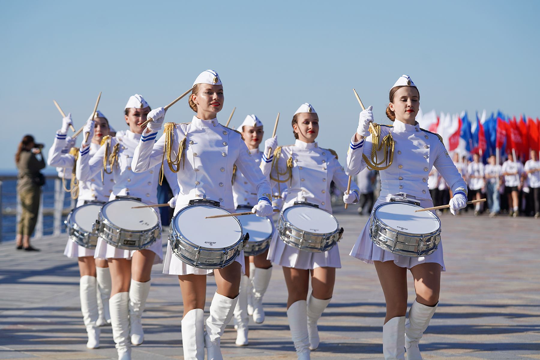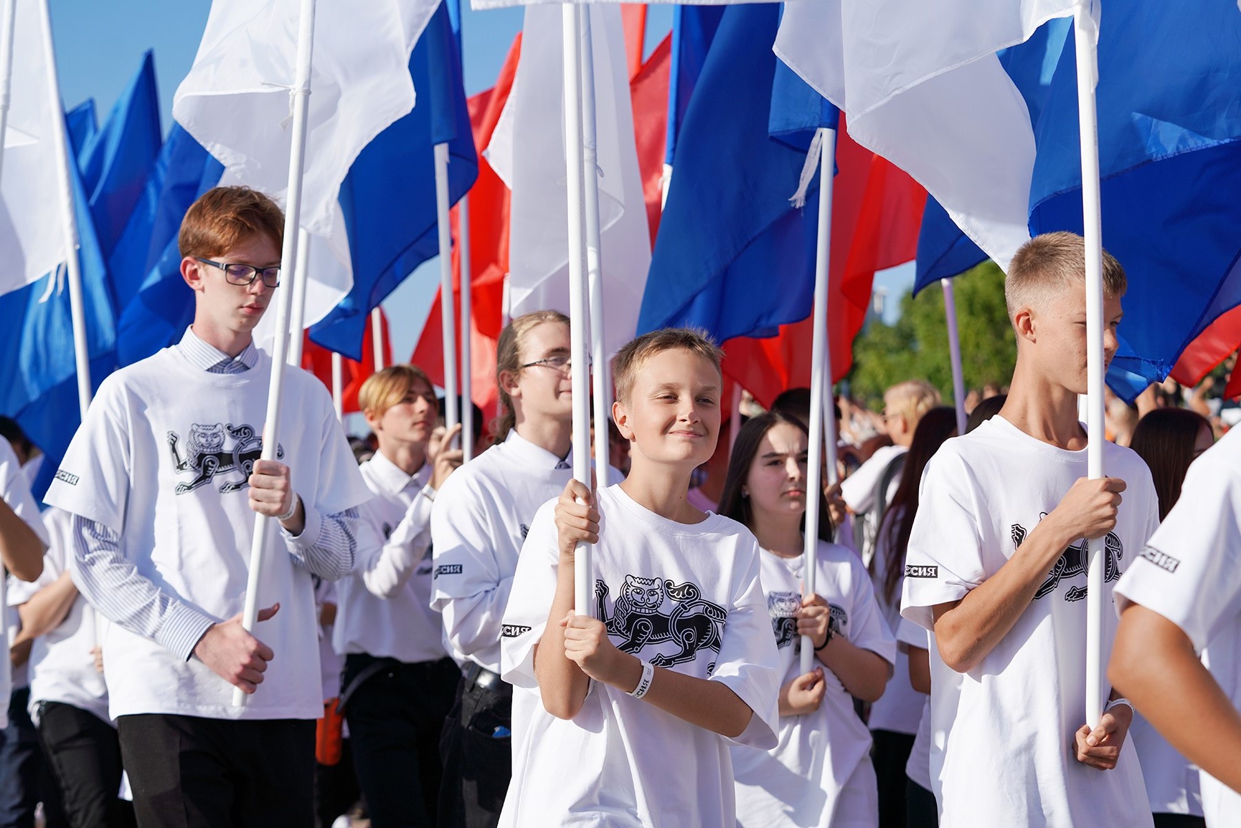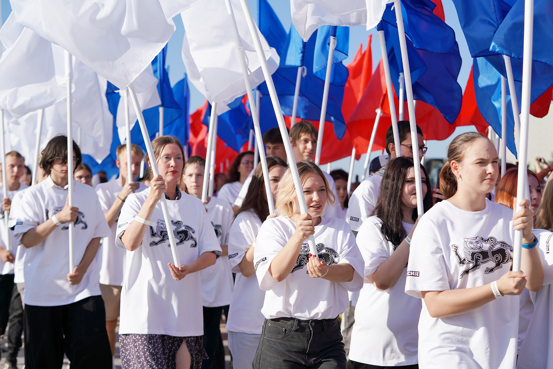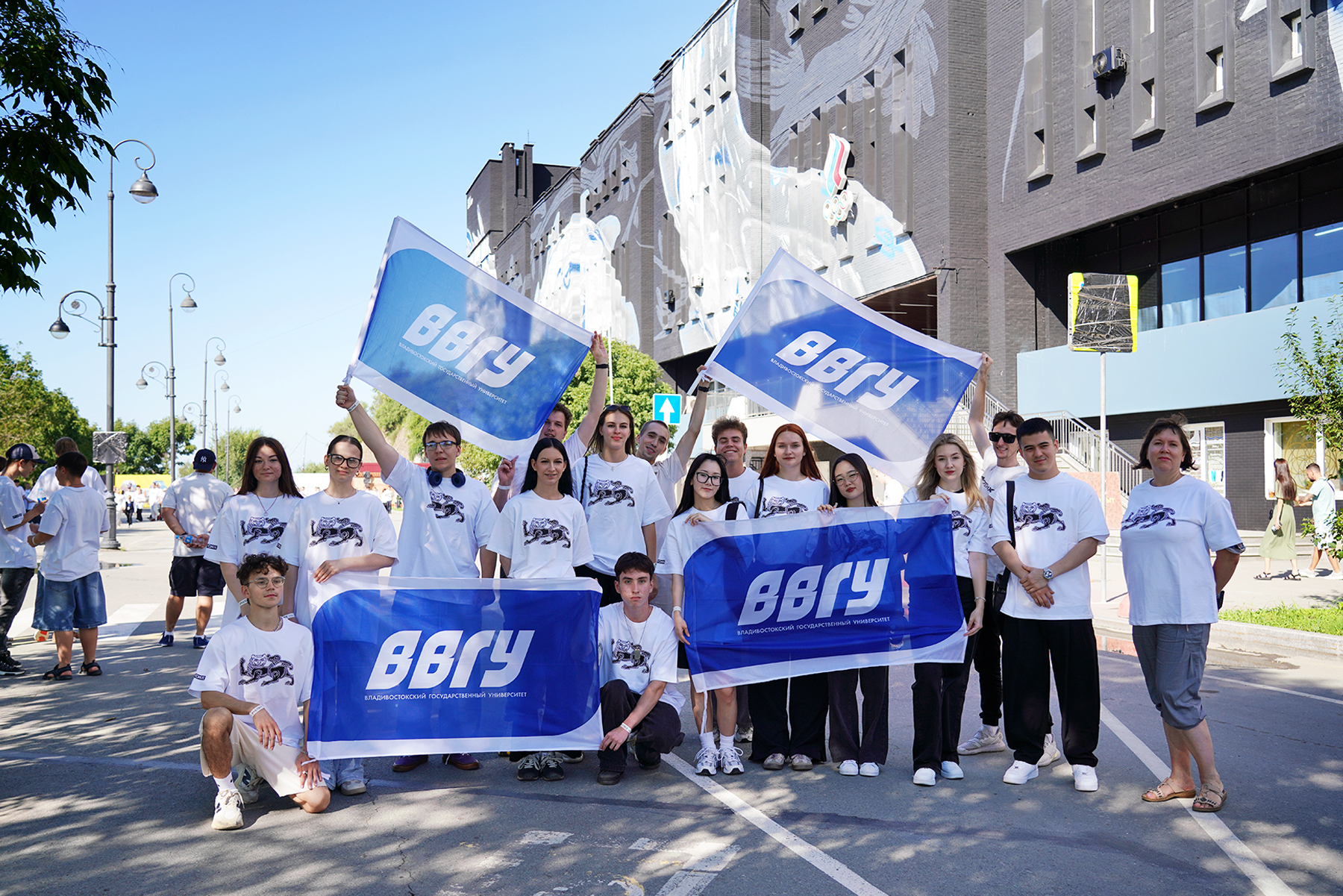Обучающиеся ВВГУ прошли в церемониальной колонне по обновлённой набережной у спорткомплекса «Олимпиец» – плечом к плечу в цветах российского триколора. Возглавили молодёжь университета преподаватель Академического колледжа Елена Пшеничная и педагог-организатор Павел Докучаев.