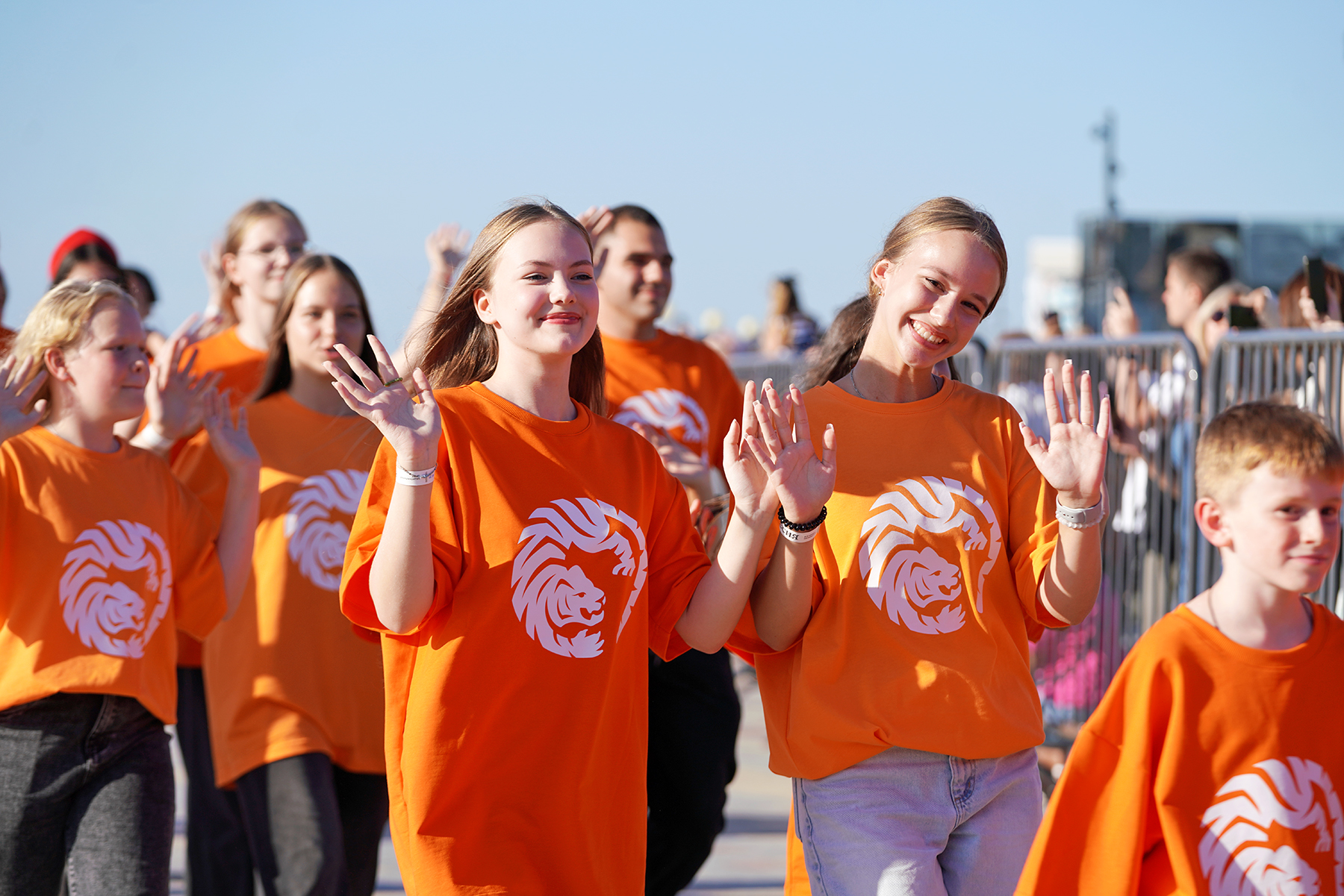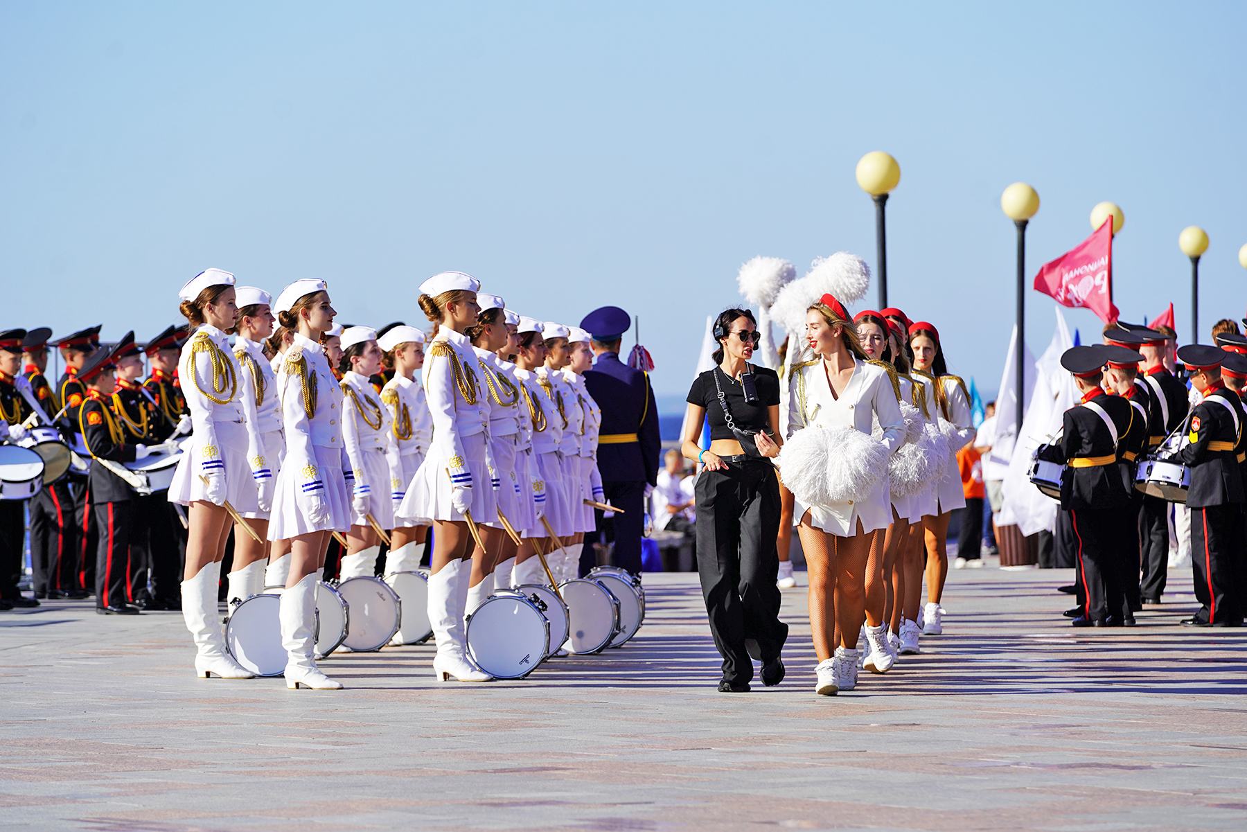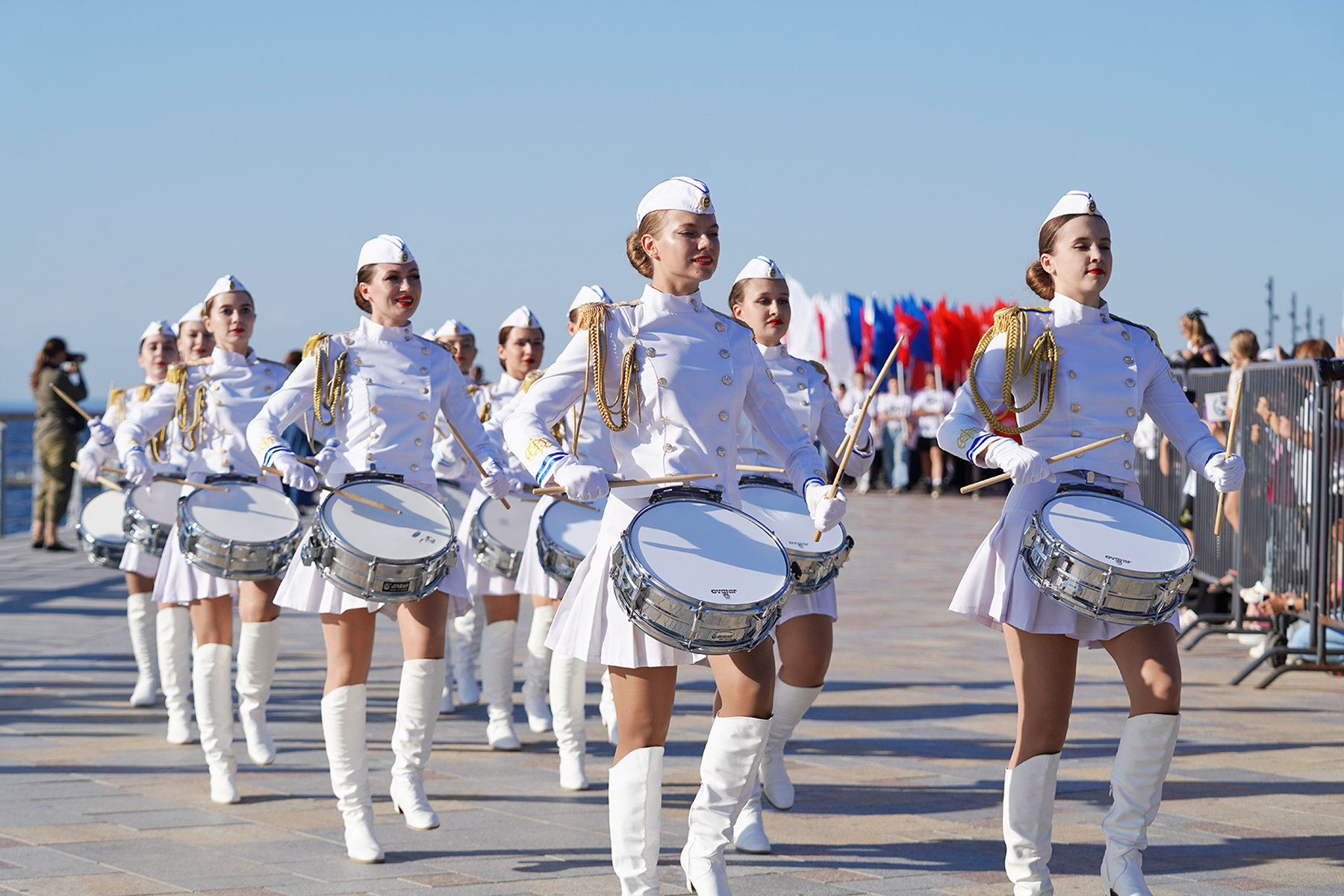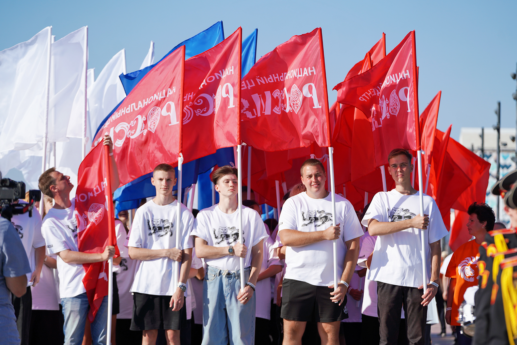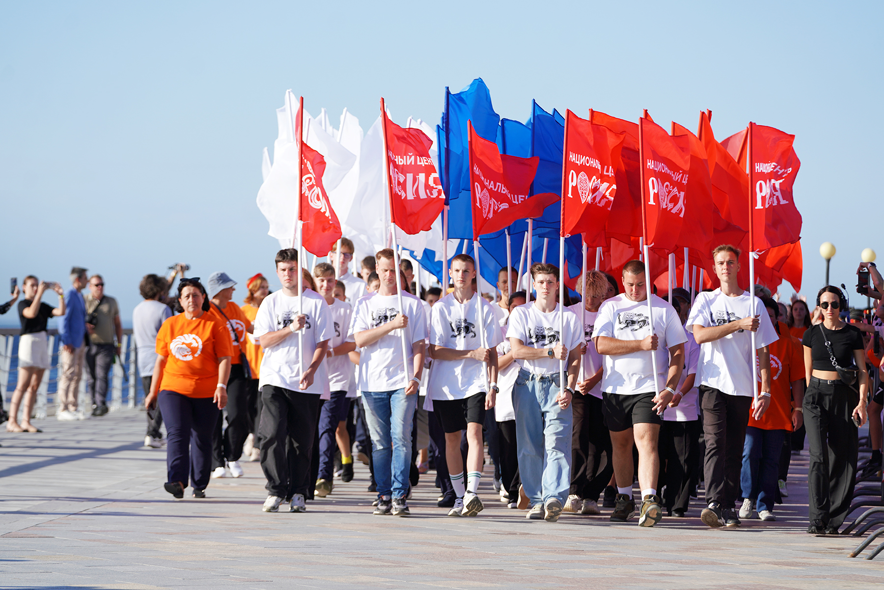 Обучающиеся ВВГУ прошли в церемониальной колонне по обновлённой набережной у спорткомплекса «Олимпиец» – плечом к плечу в цветах российского триколора. Возглавили молодёжь университета преподаватель Академического колледжа Елена Пшеничная и педагог-организатор Павел Докучаев.