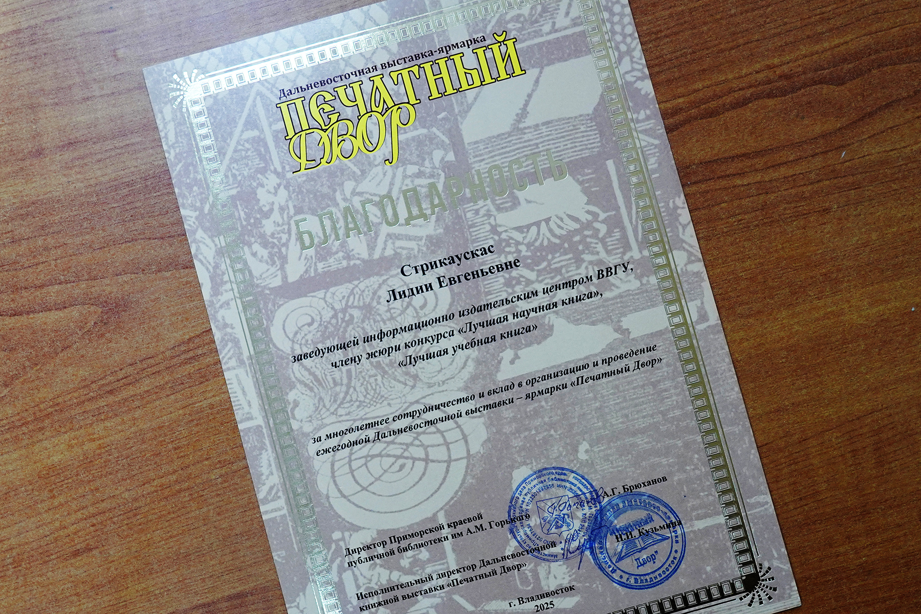 Дипломами Дальневосточной выставки «Печатный Двор – 2025» в конкурсе «Лучшая научная книга» в номинации «Монографии» отмечены: