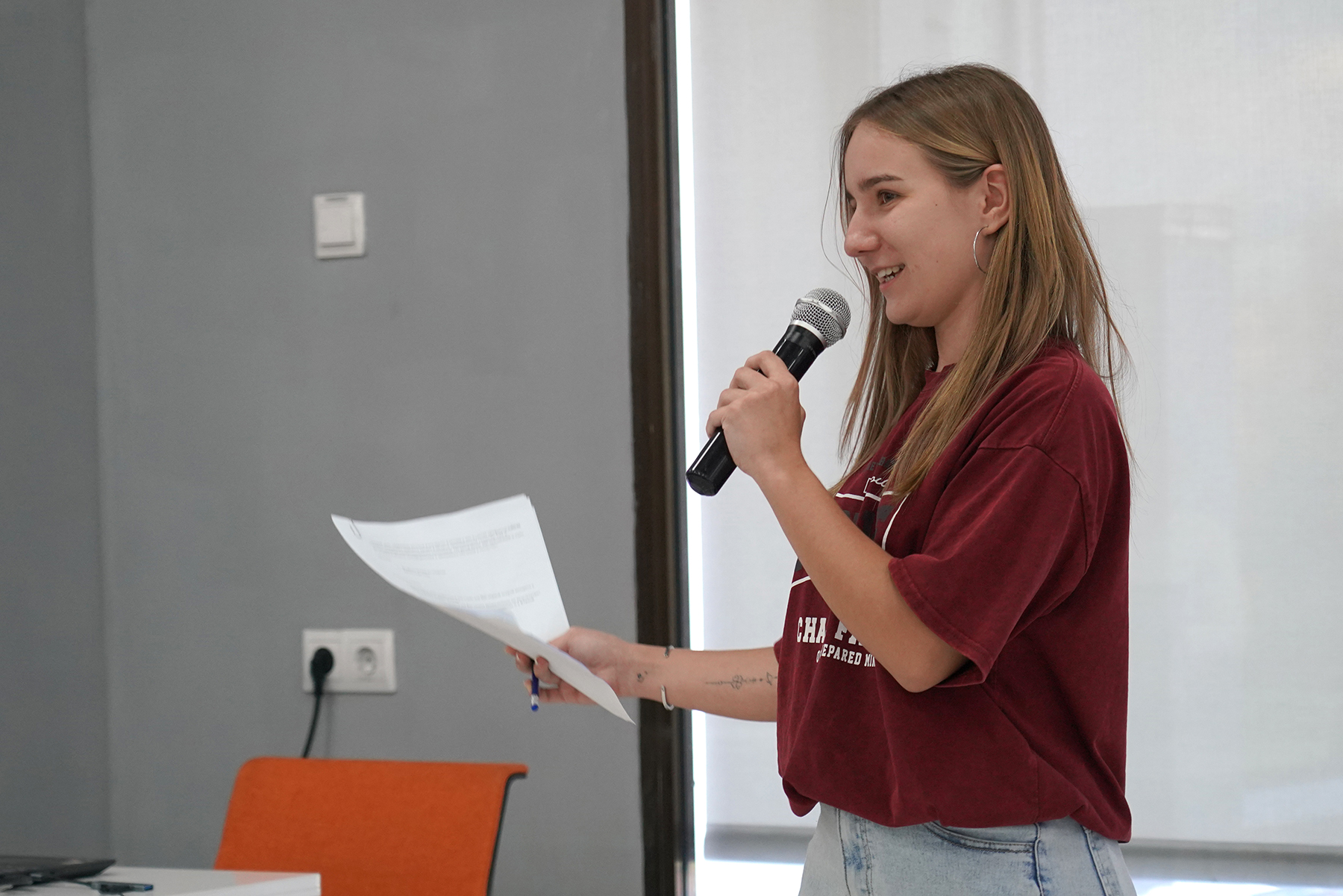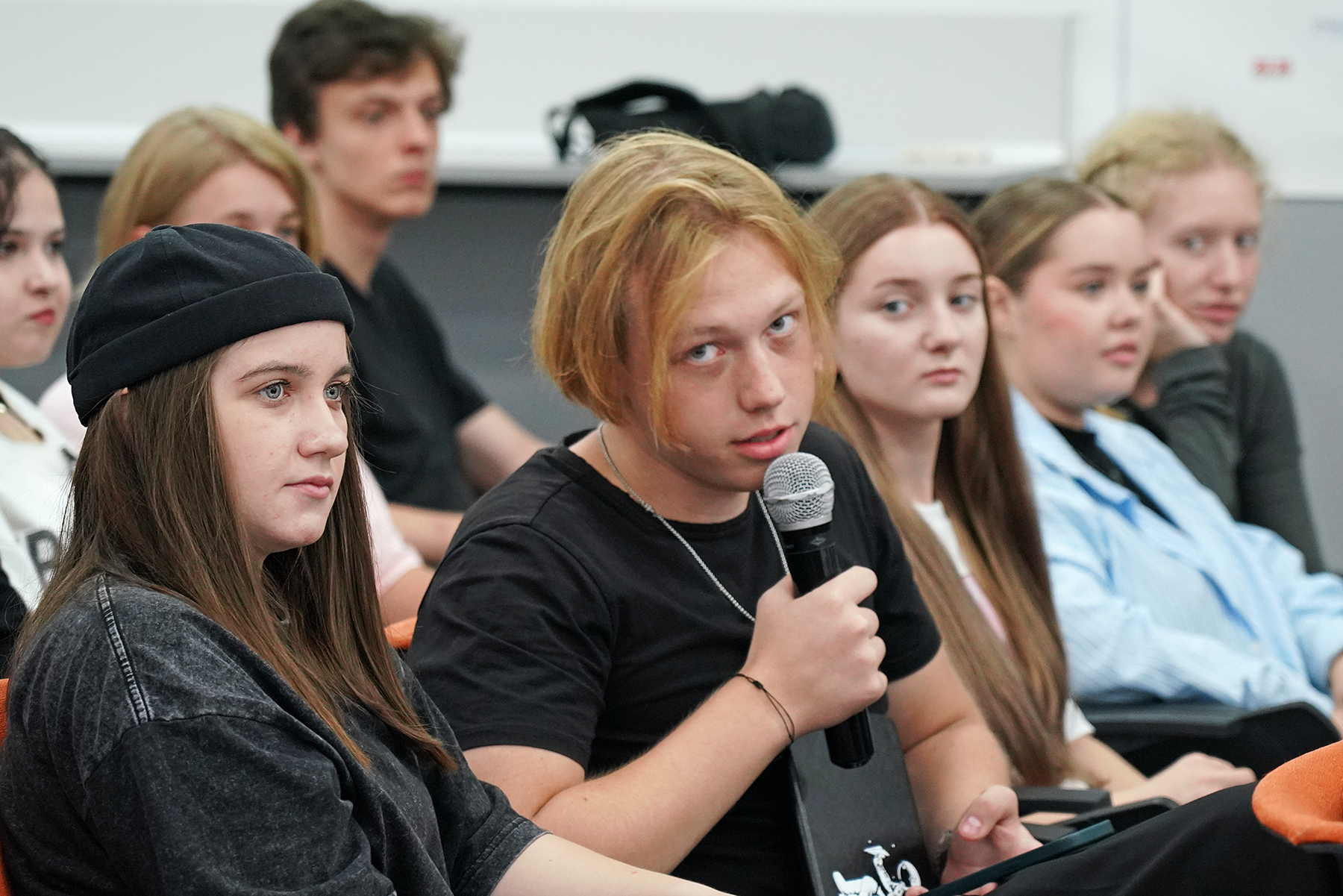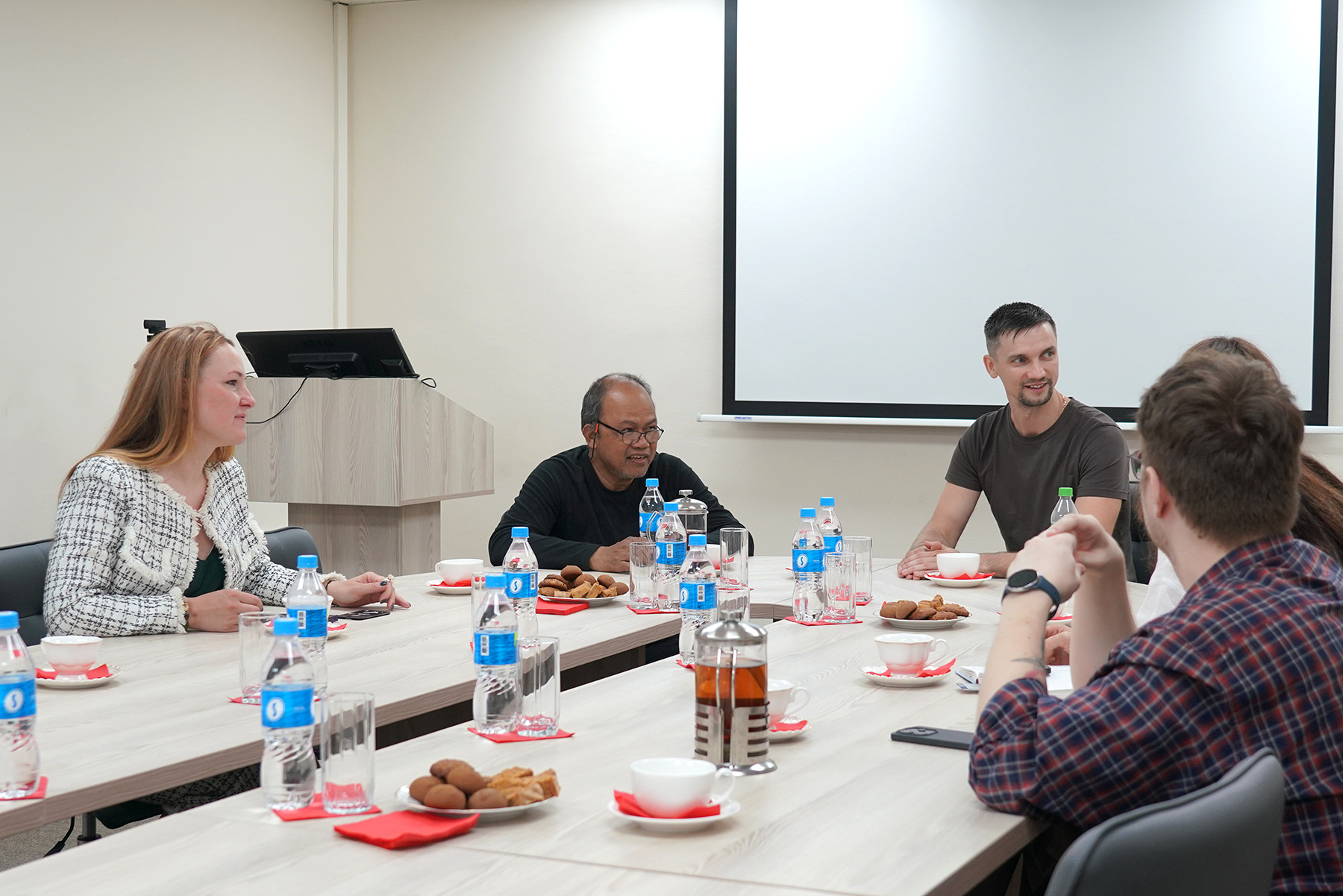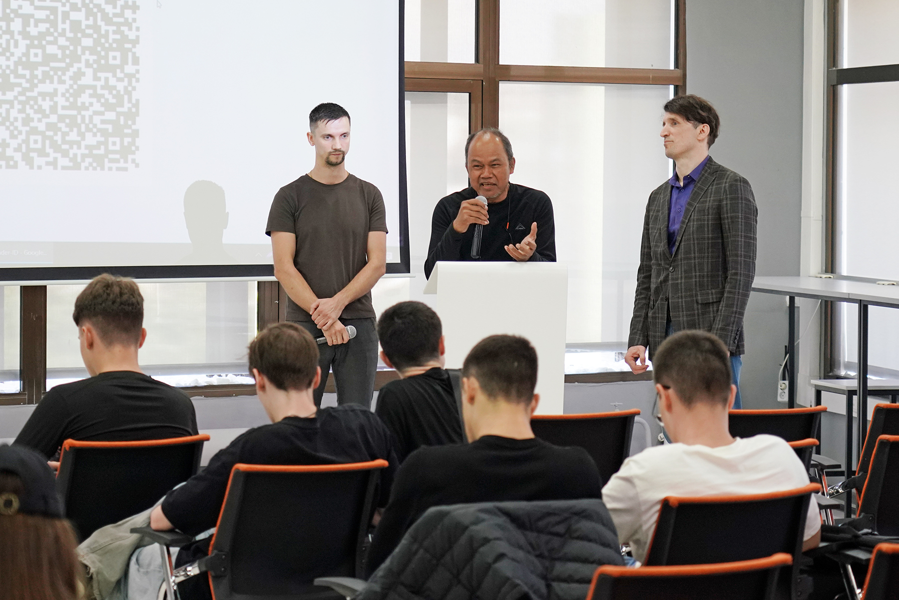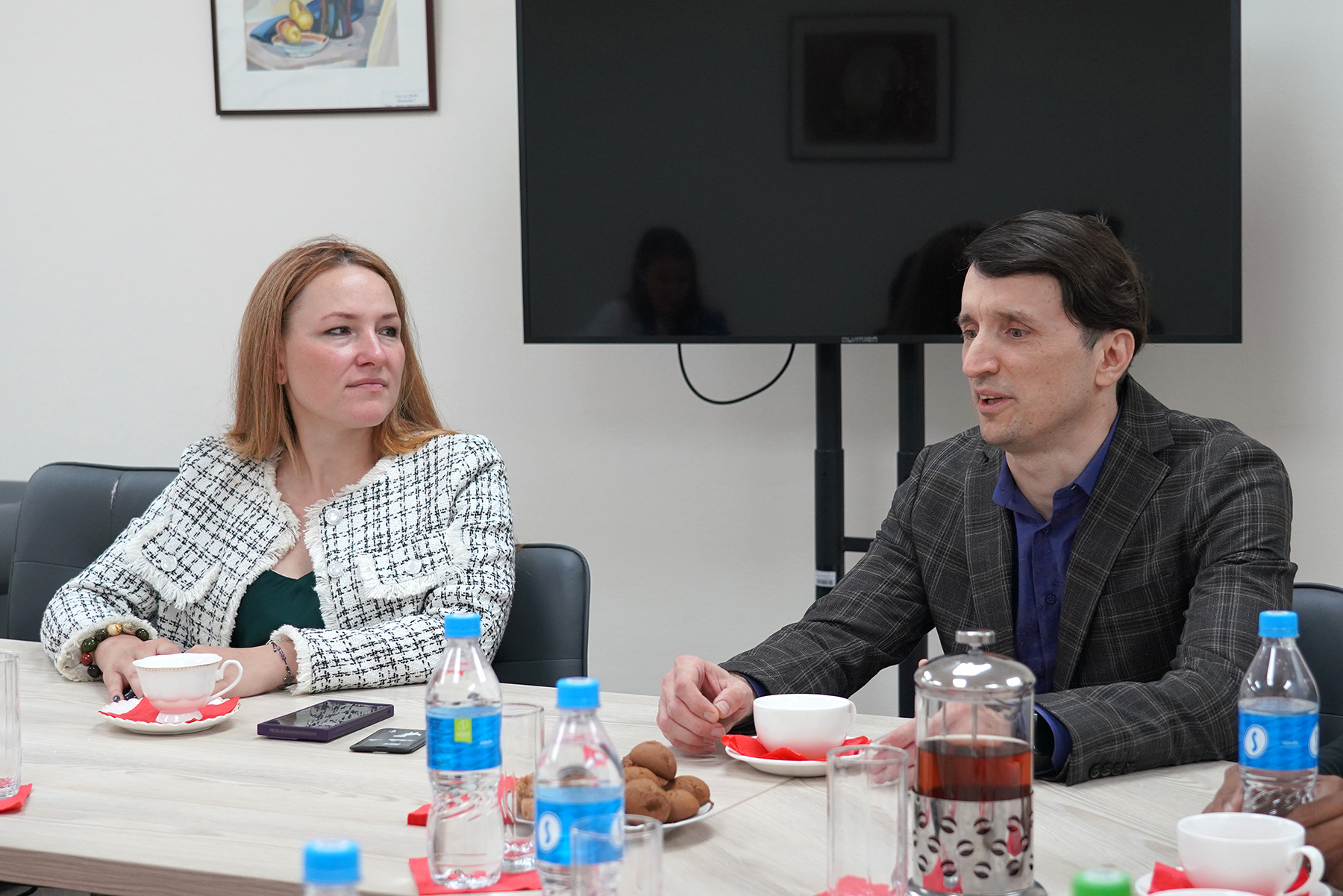 «Мы приветствуем вас в нашем университете! В следующем году ему исполняется 60 лет. Сегодня у нас учатся 15 тысяч студентов среднего профессионального и высшего образования. Из них примерно 800 иностранных студентов из 29 стран мира. У нашего университета есть разные интересы в научных целях. Мы рады обсудить их с вами», – приветствовала гостя Юлия Кравченко, директор колледжа информационных и креативных технологий ВВГУ.