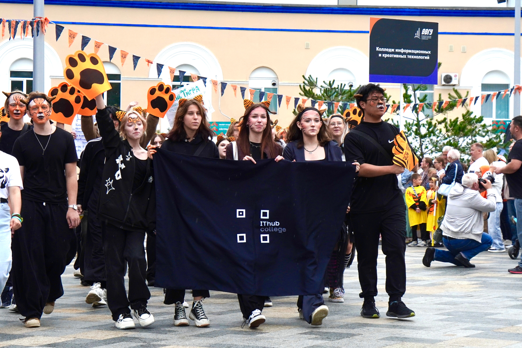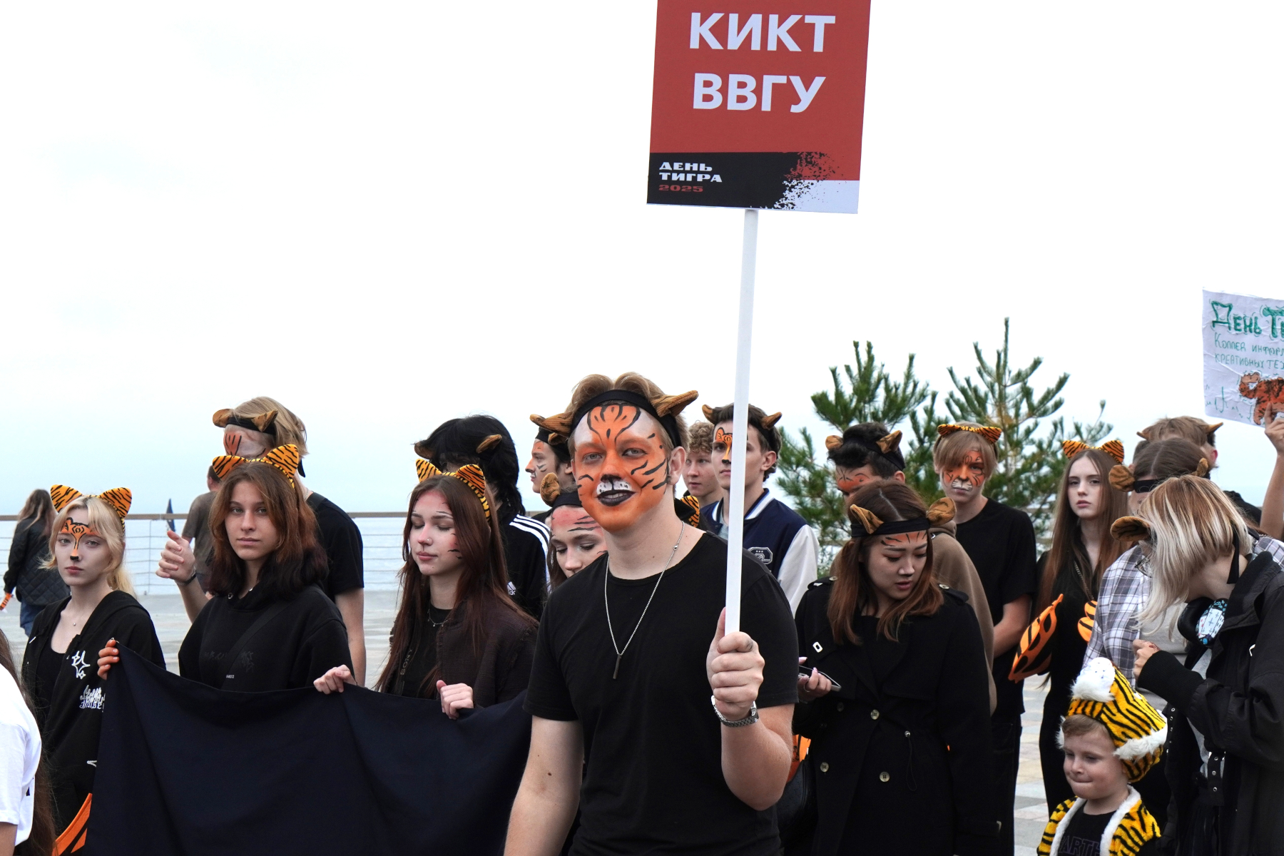 28 сентября дальневосточная столица отметила один из главных и любимых праздников горожан – День тигра. Открыло мероприятие традиционное шествие в поддержку приморского хищника. В праздничной колонне прошли студенты и преподаватели программ высшего образования Владивостокского государственного университета, а также Колледжа информационных и креативных индустрий и Колледжа сервиса и дизайна ВВГУ.