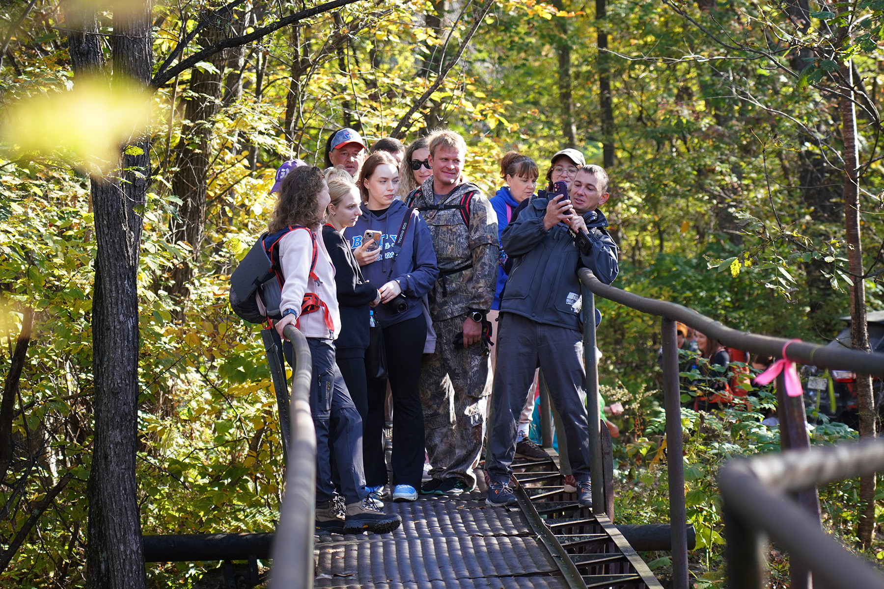 За время пешеходной части маршрута по лесной тропе сотрудники посетили водопады «Малыш», «Трёхголовый» и «Медвежий». Протяжённость маршрута составила около девяти километров. Первую часть пути участники преодолели по лесной дороге, вторую часть – вдоль водного ключа.