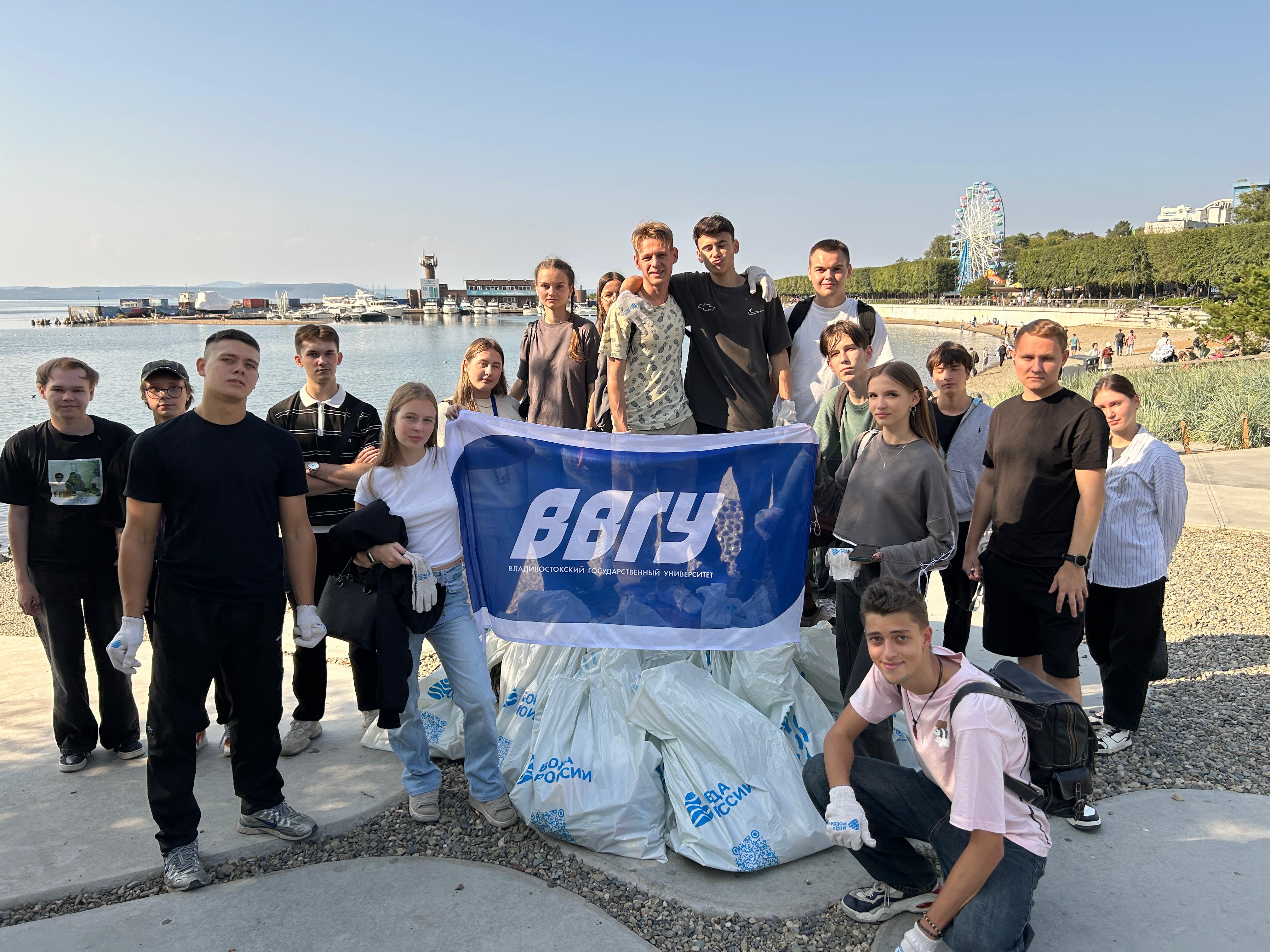30 студентов Инженерной школы ВВГУ приняли участие в очистке территории Спортивной набережной в рамках участия ВВГУ в акции «Вода России».