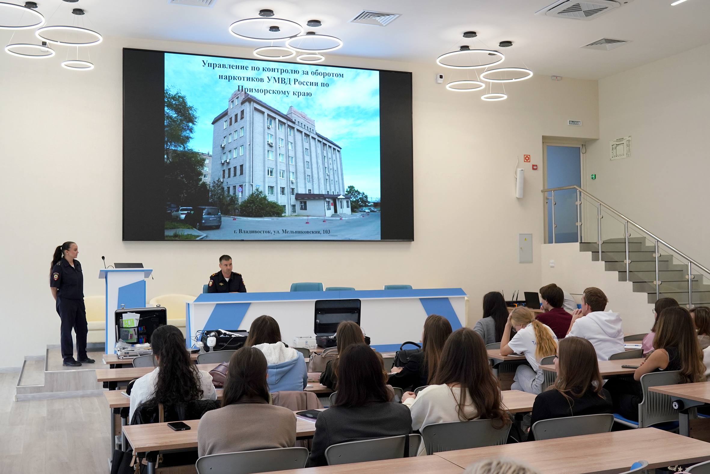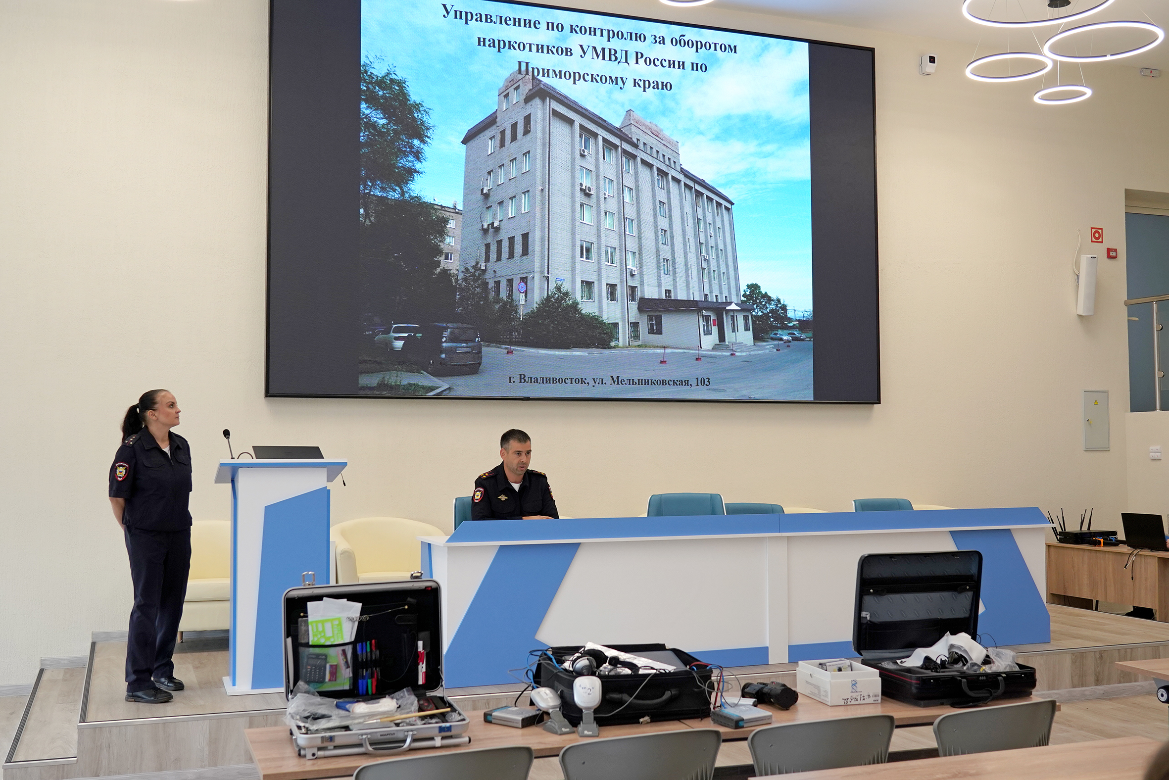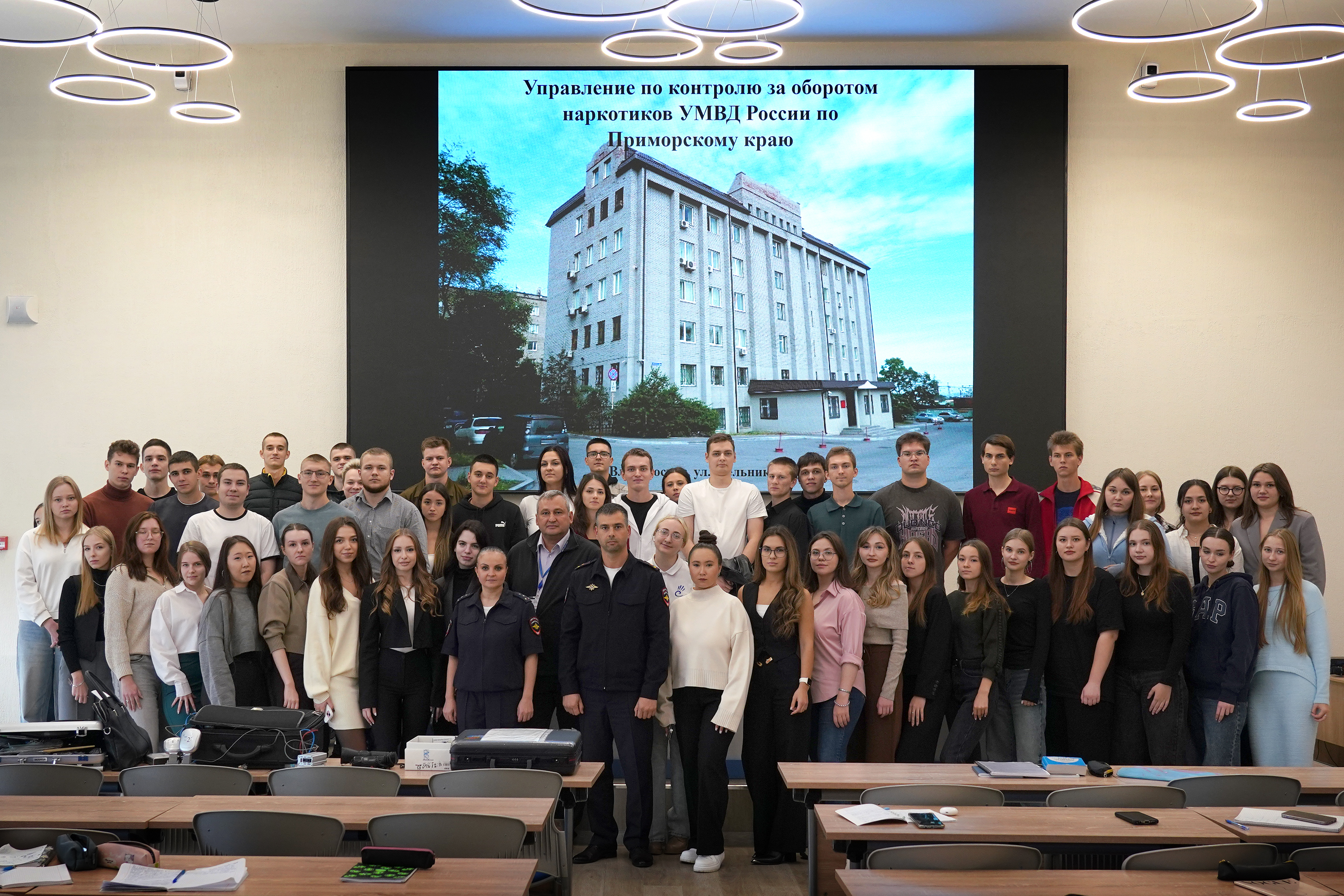 Справка: встречу со студентами провели оперуполномоченный отдела межведомственного взаимодействия и профилактики управления по контролю за оборотом наркотиков УМВД России по Приморскому краю капитан полиции Александра Максименко, временно исполняющий обязанности начальника управления по контролю за оборотом наркотиков УМВД России по Приморскому краю полковник полиции Александр Костылев.