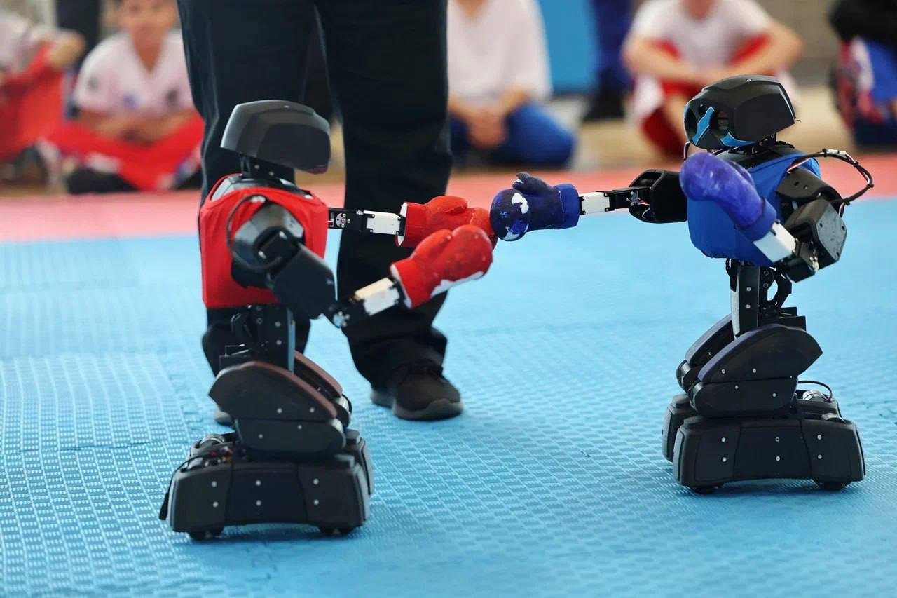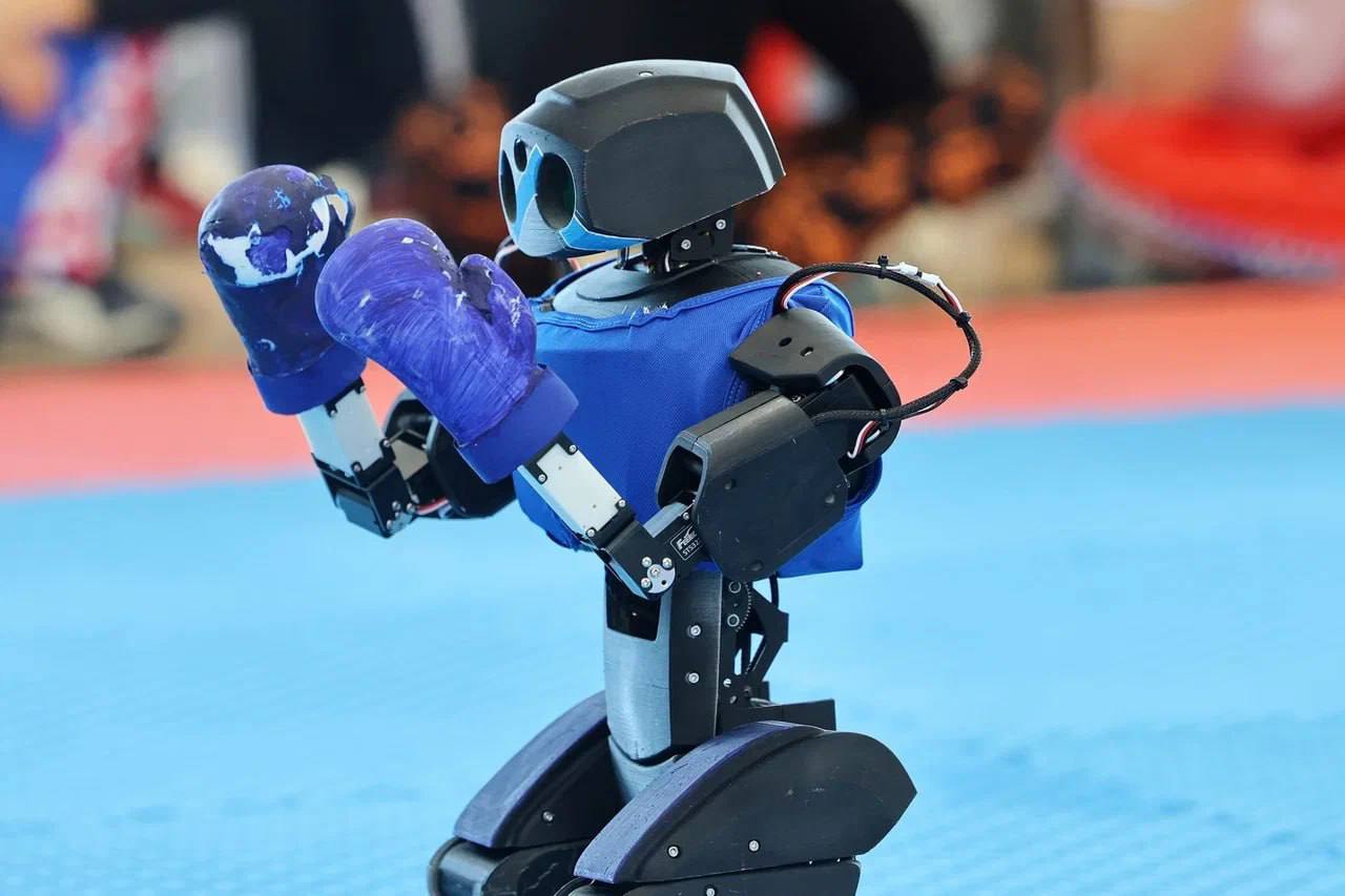 На ринге сошлись два человекоподобных робота ADAM. Показательный бой состоялся по правилам кикбоксинга – с ударами, падениями и настоящим судьёй. Битва оказалась напряжённой – один из бойцов в ходе схватки потерял «руку». По итогам нескольких раундов победу одержал синий робот Арсения Дикмарова.