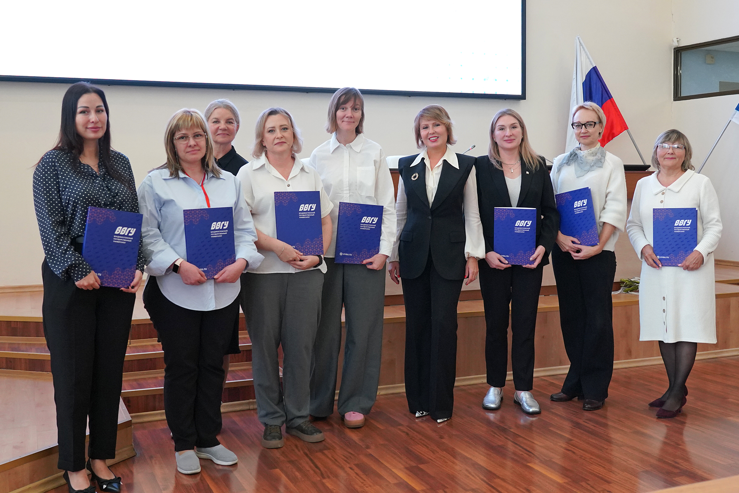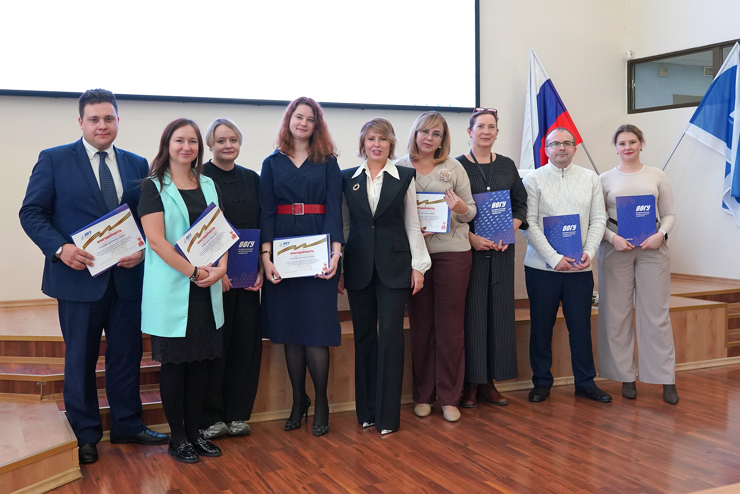 Грамотами ректора за активное участие в воспитательной и патриотической работе награждены преподаватели, педагоги и руководители подразделений: Анна Абызова, Татьяна Баишева, Юлия Володько, Диана Ганник, Анна Гусакова, Екатерина Клопова, Наталья Морозова, Оксана Петрова, Ирина Пруденко, Людмила Сазонова, Людмила Смагина, Ольга Туговикова, Евгения Федоренко, Евгения Феоктистова, Оксана Фурманюк, Анна Чуприна, Юрий Шин.