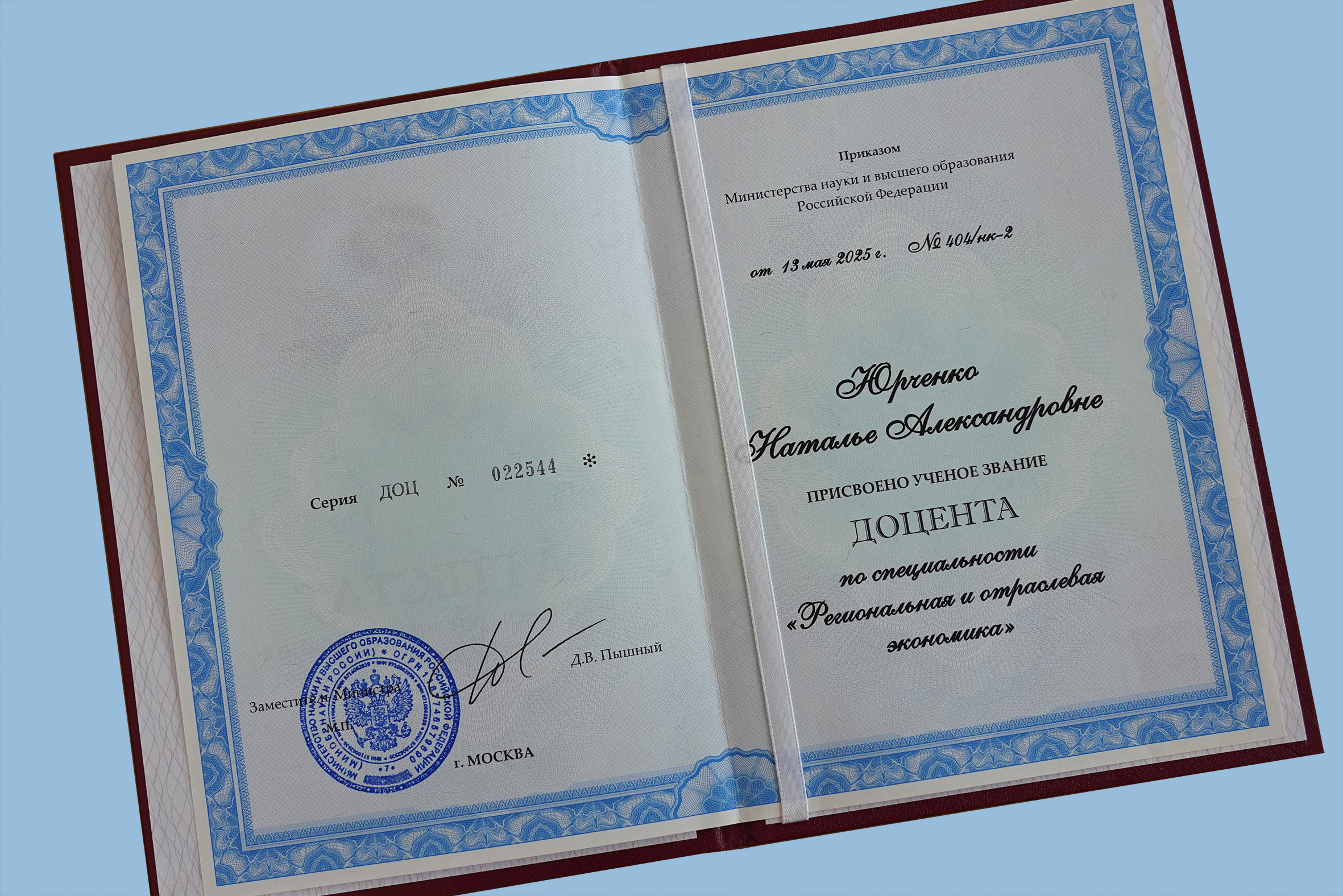 Заведующего кафедрой маркетинга и логистики Наталью Юрченко – с присвоением звания доцента по специальности «Региональная и отраслевая экономика»;