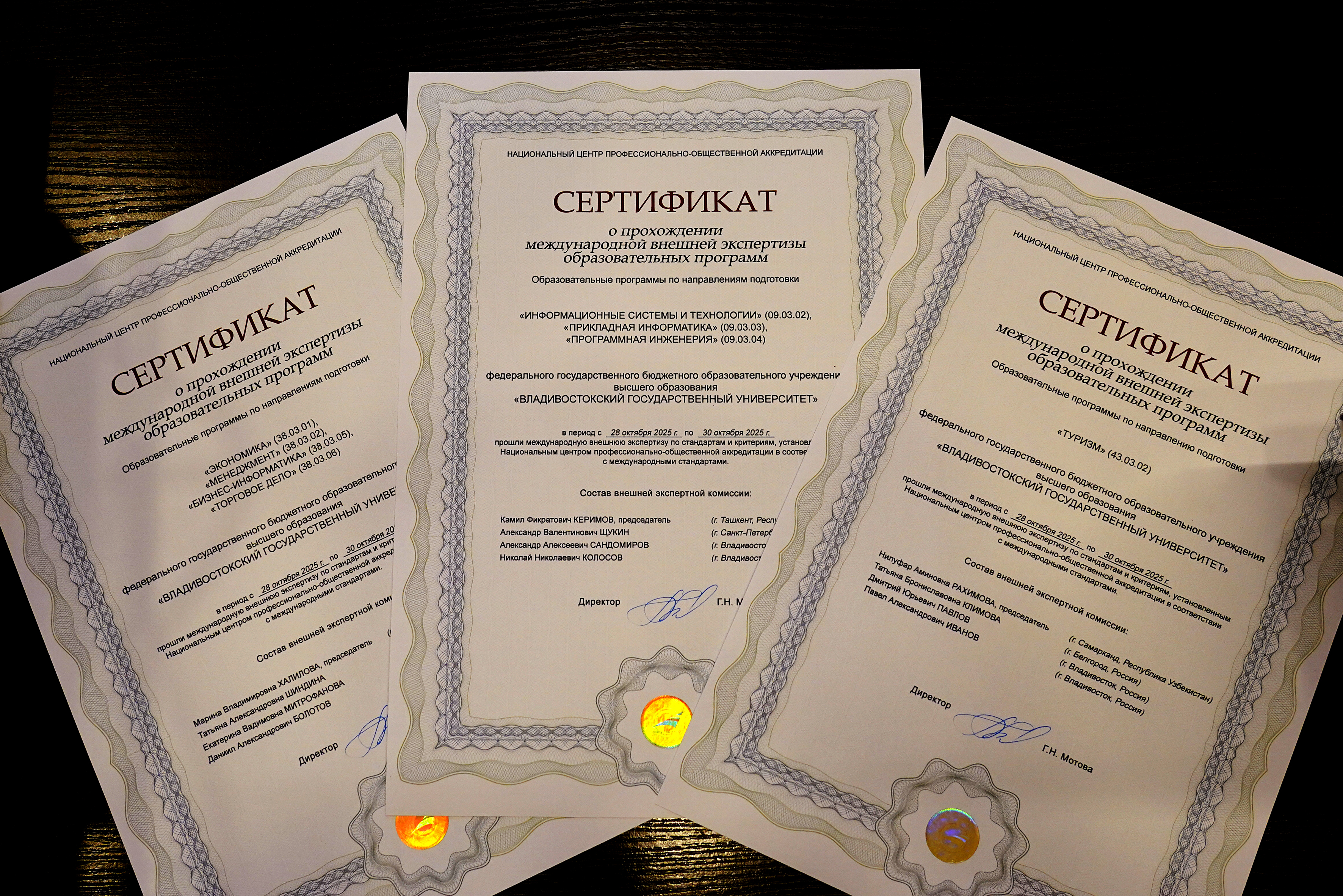 «Для нас было крайне важно показать, что Владивостокский государственный университет соответствует высоким современным требованиям к образовательным программам. Мы не полагаемся на удачу – мы хотим, чтобы наш уровень был официально признан и стал широко известен», – подчеркнула Татьяна Терентьева.