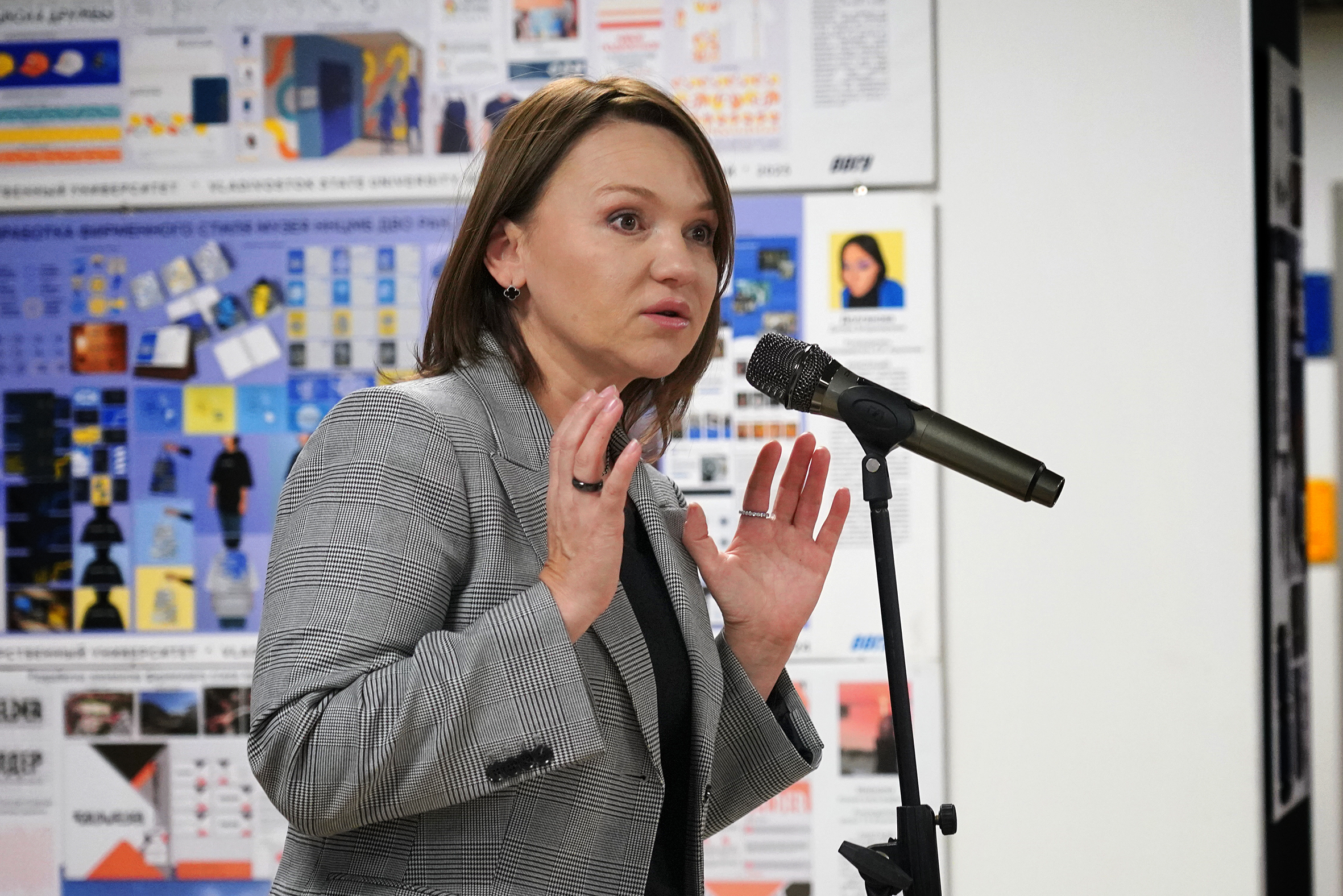 Ректор отметила, что выставка наглядно подтверждает лидерство ВВГУ в подготовке творческих специалистов на Дальнем Востоке, назвав Институт туризма и креативных индустрий настоящей лабораторией идей.