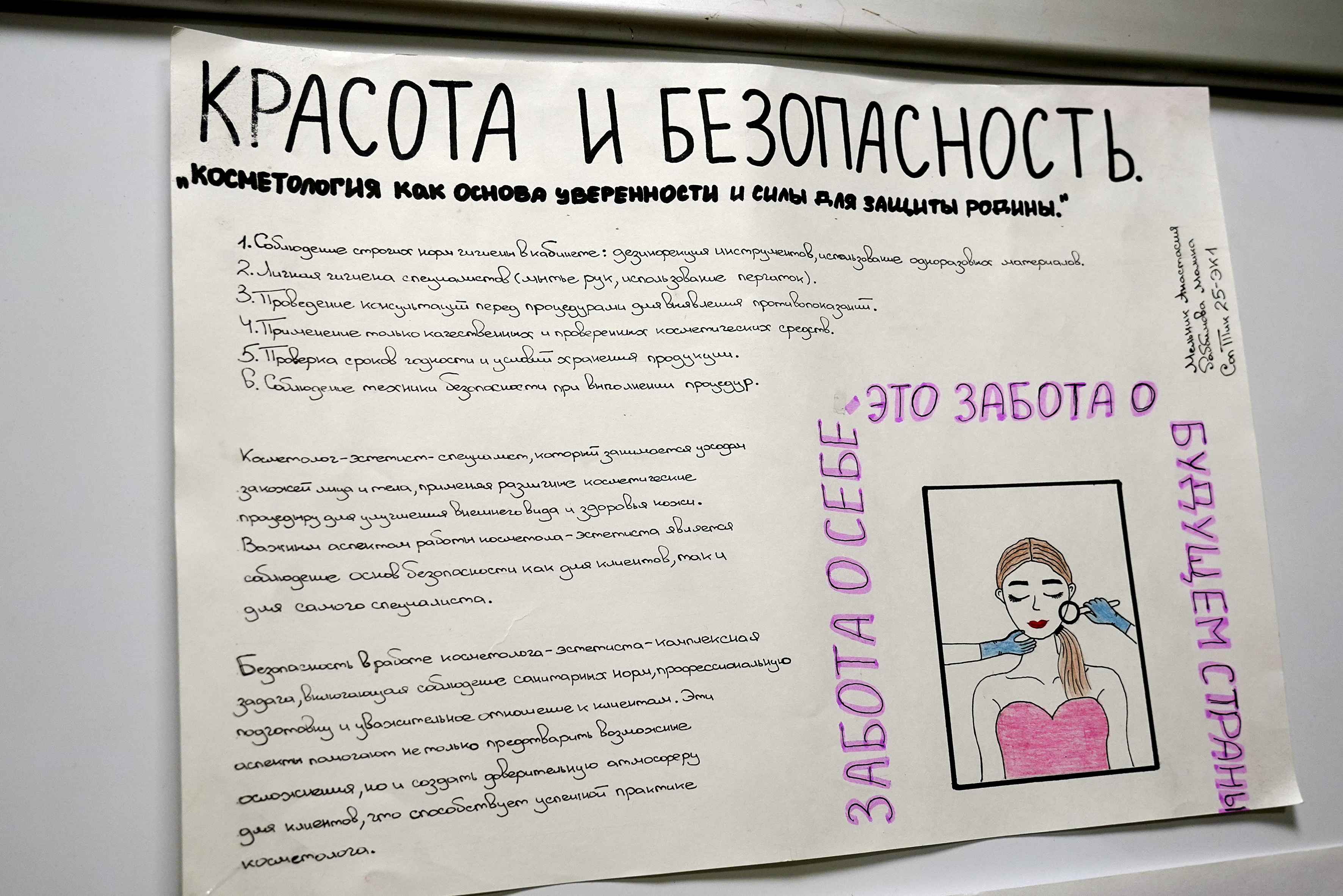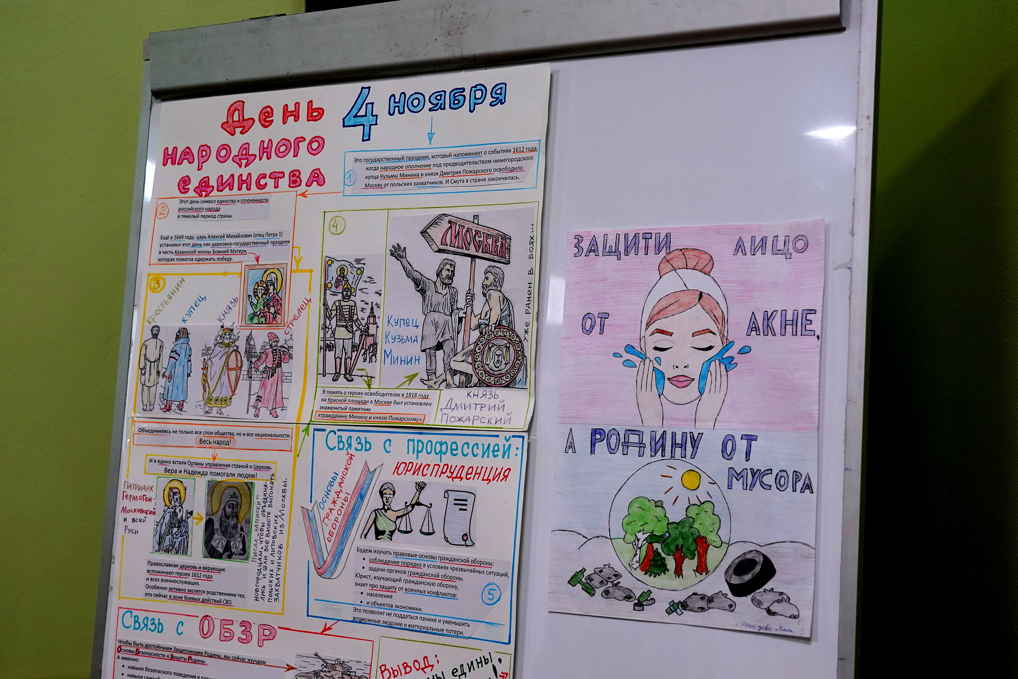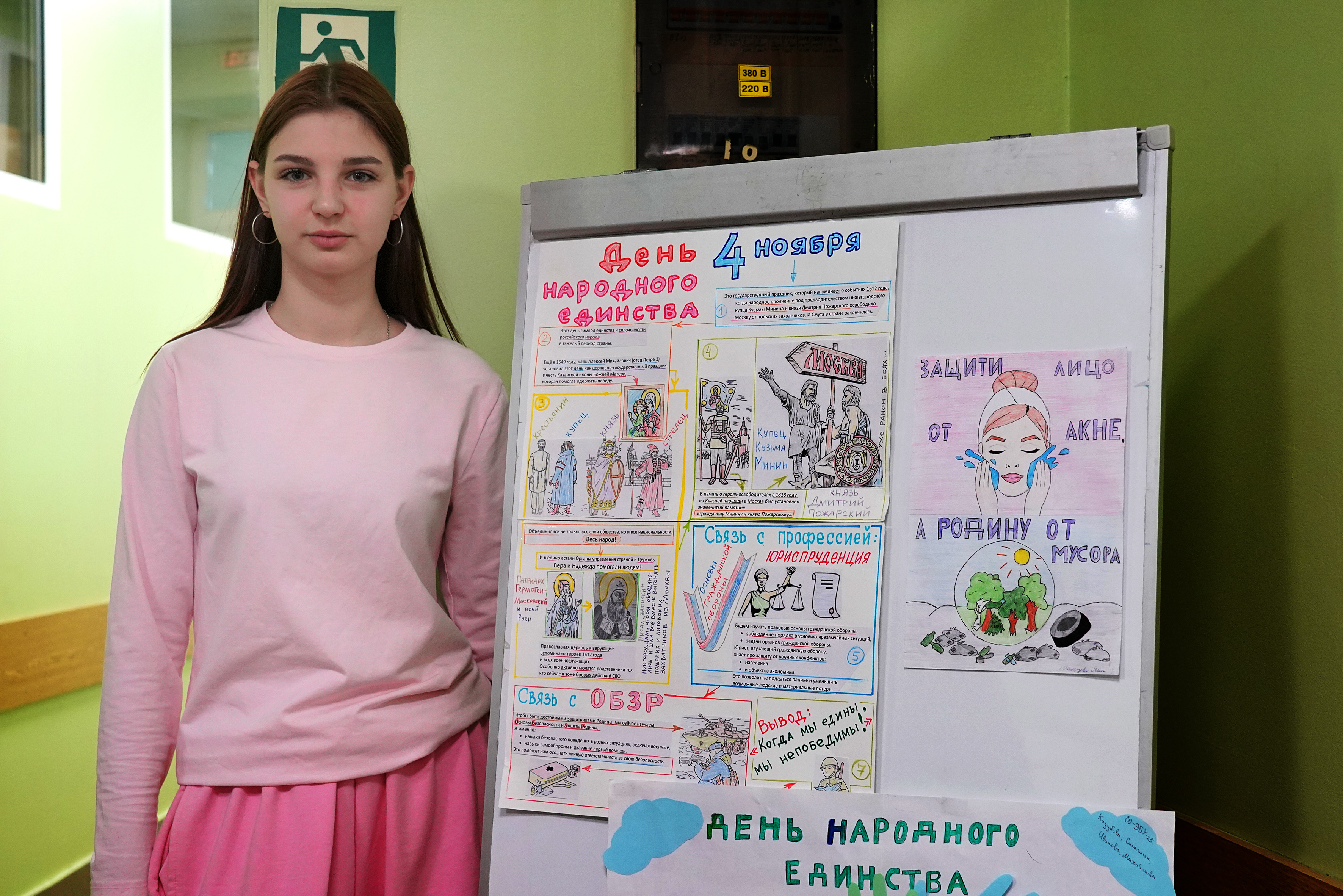 Под руководством своих наставников студенты создали творческие проекты, плакаты и тематические работы. Все они посвящены Дню народного единства, основам безопасности и защиты родины, а также отражают специфику будущих специальностей. Кураторами проекта выступили преподаватель основ безопасности и защиты родины Арина Малышева и преподаватель обществознания Елена Батищева.