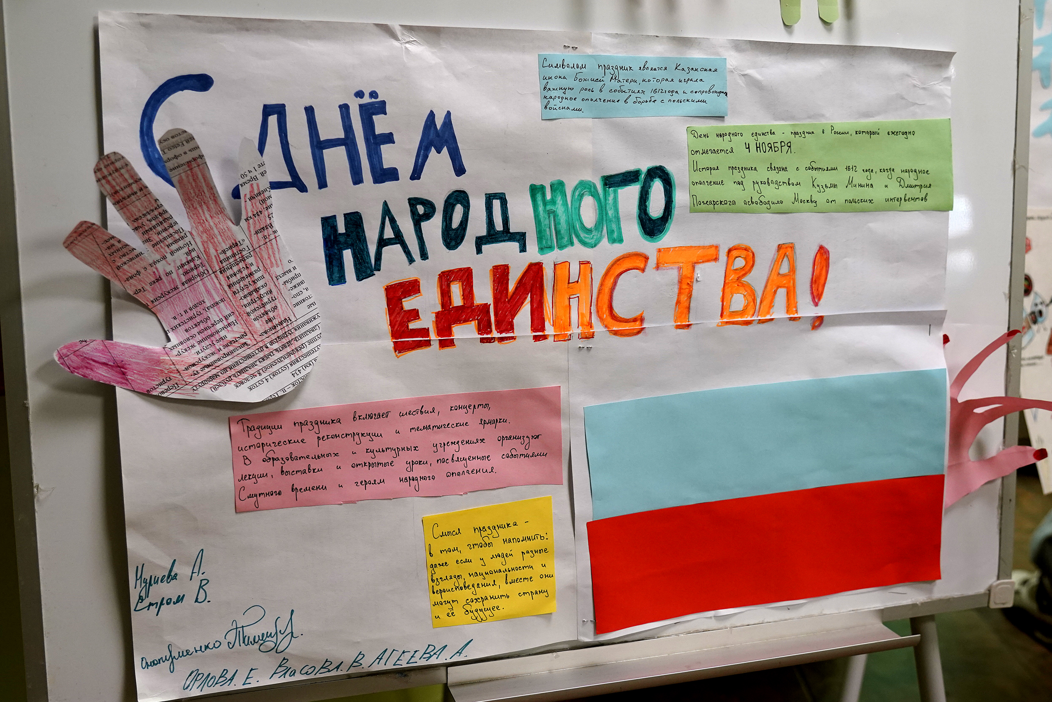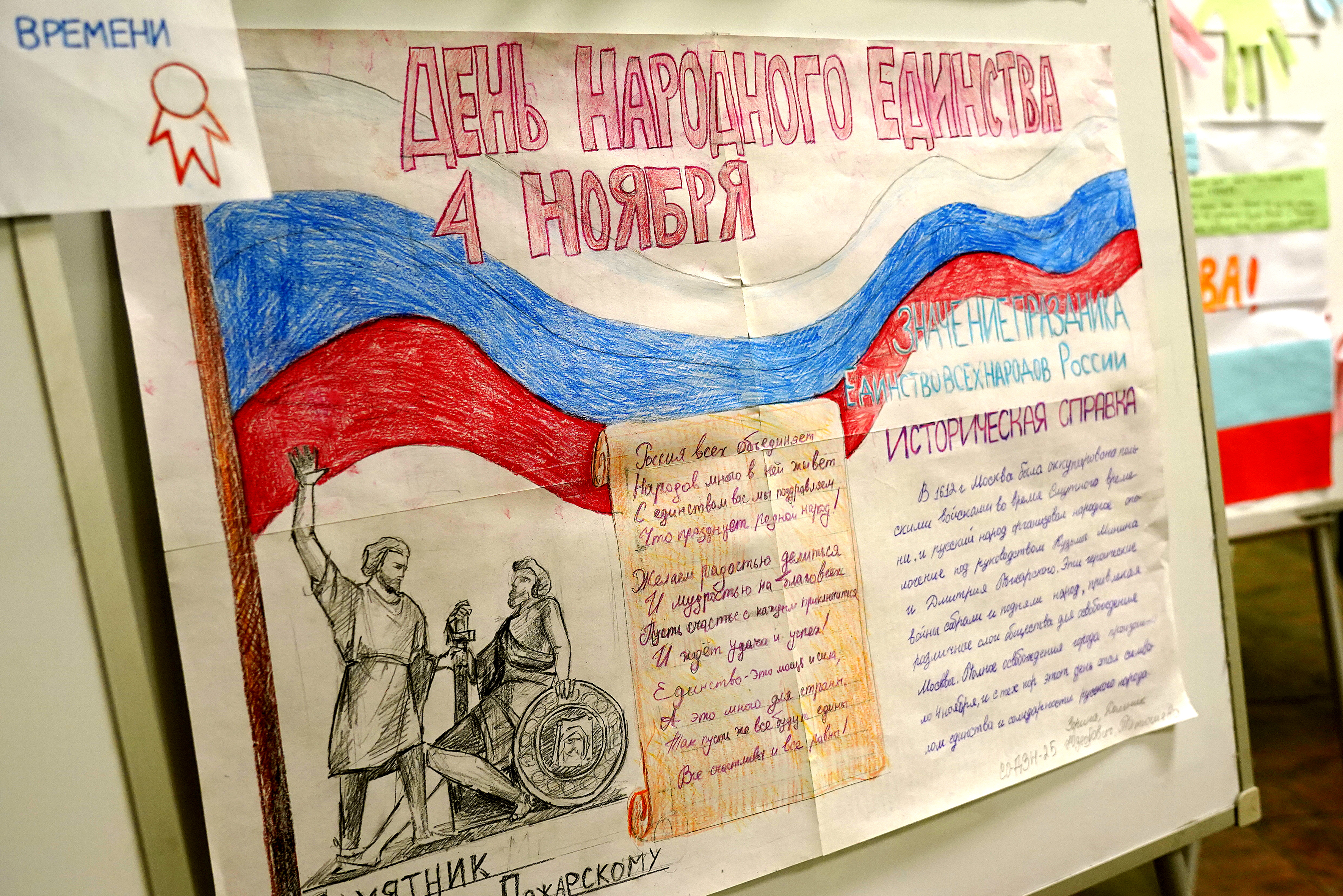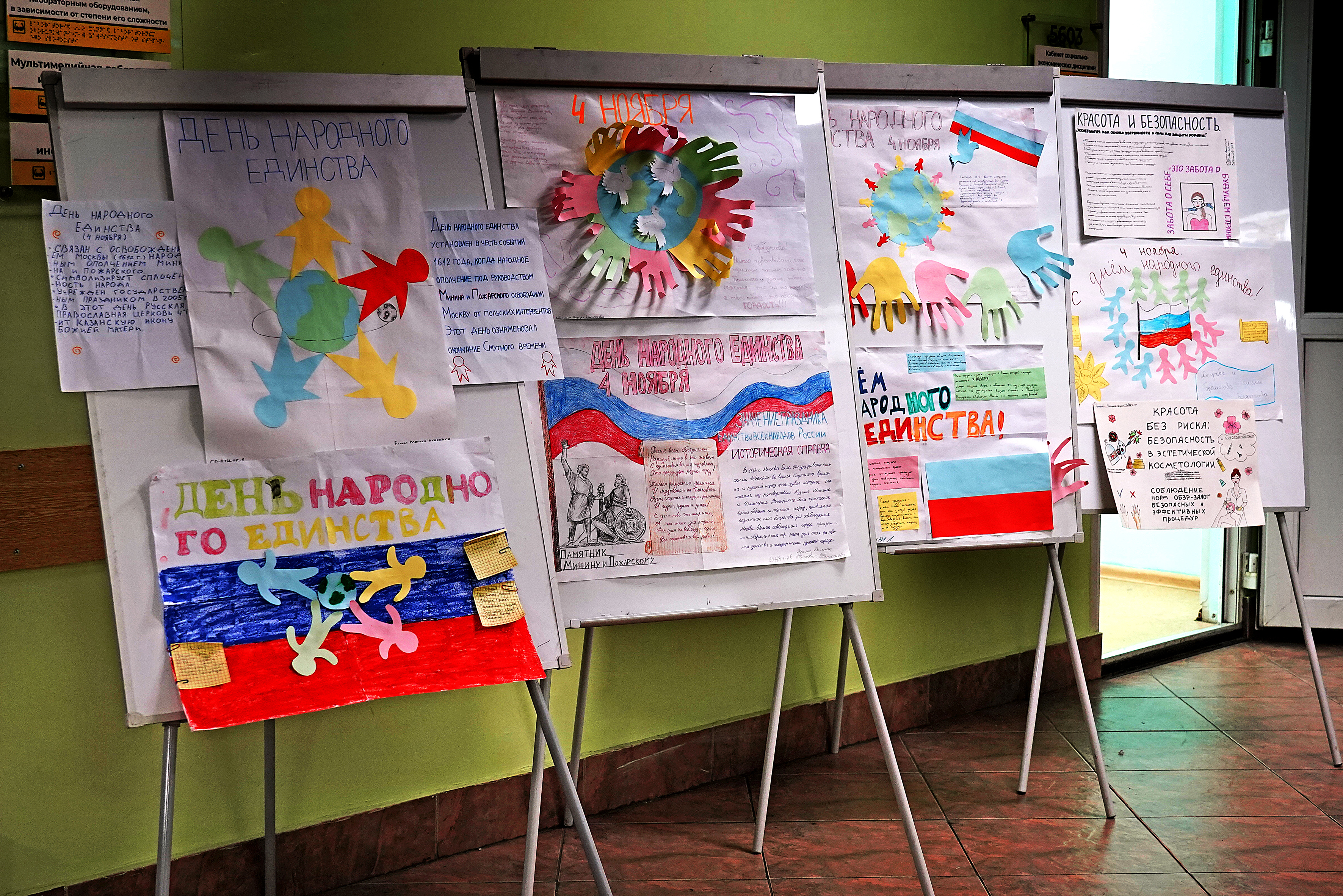 За время создания экспозиции студенты прошли серию тематических мероприятий. Изучили историю России, её традиции и духовно-нравственные ценности. Всё это позволило учащимся подойти к работе не только творчески, но и с глубоким знанием истории праздника. Молодые авторы разобрали идею единства и сплочённости, лежащую в основе Дня народного единства.