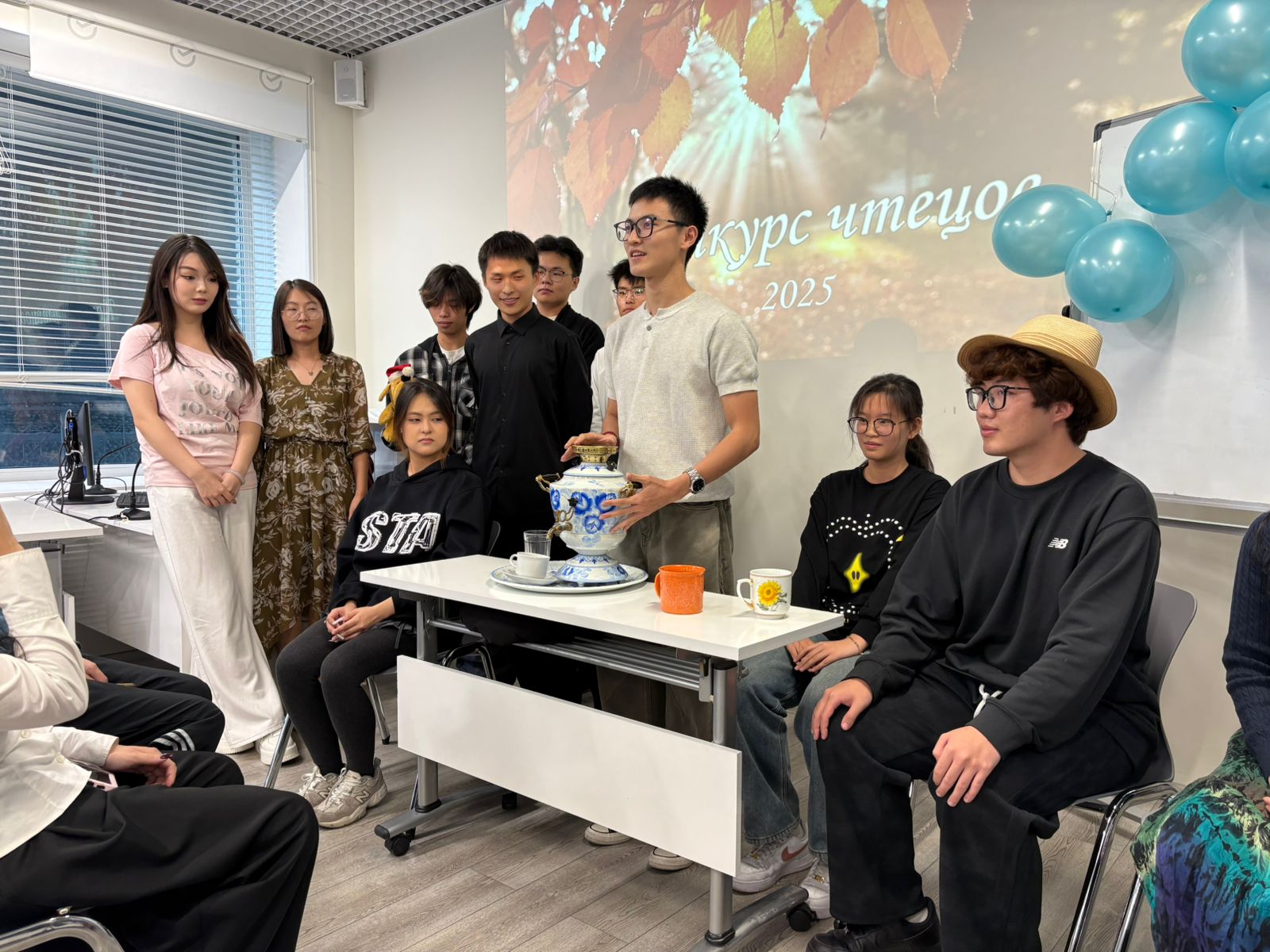 - В этом году наш традиционный конкурс чтецов получил новое дыхание. Во-первых, мы провели его совместно с Институтом подготовки иностранных граждан, во-вторых, выступали неожиданные интернациональные дуэты, в-третьих, выбор произведений для чтения был необычайно широк! Звучали прекрасные строки Александра Пушкина, Сергея Есенина, Роберта Рождественского, Эдуарда Асадова, Расула Гамзатова, Ивана Крылова, Владимира Маяковского, Даниила Хармса и других авторов.