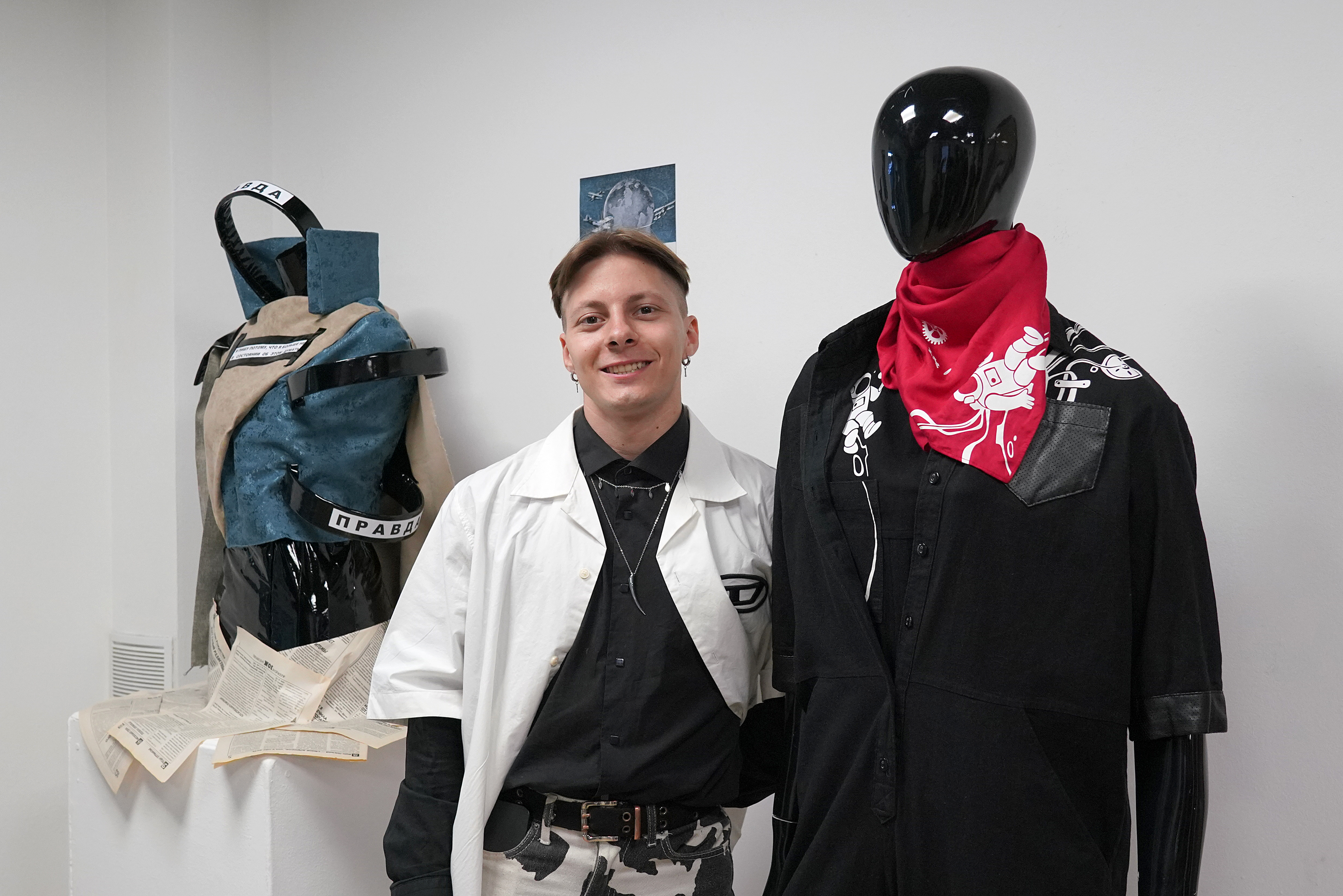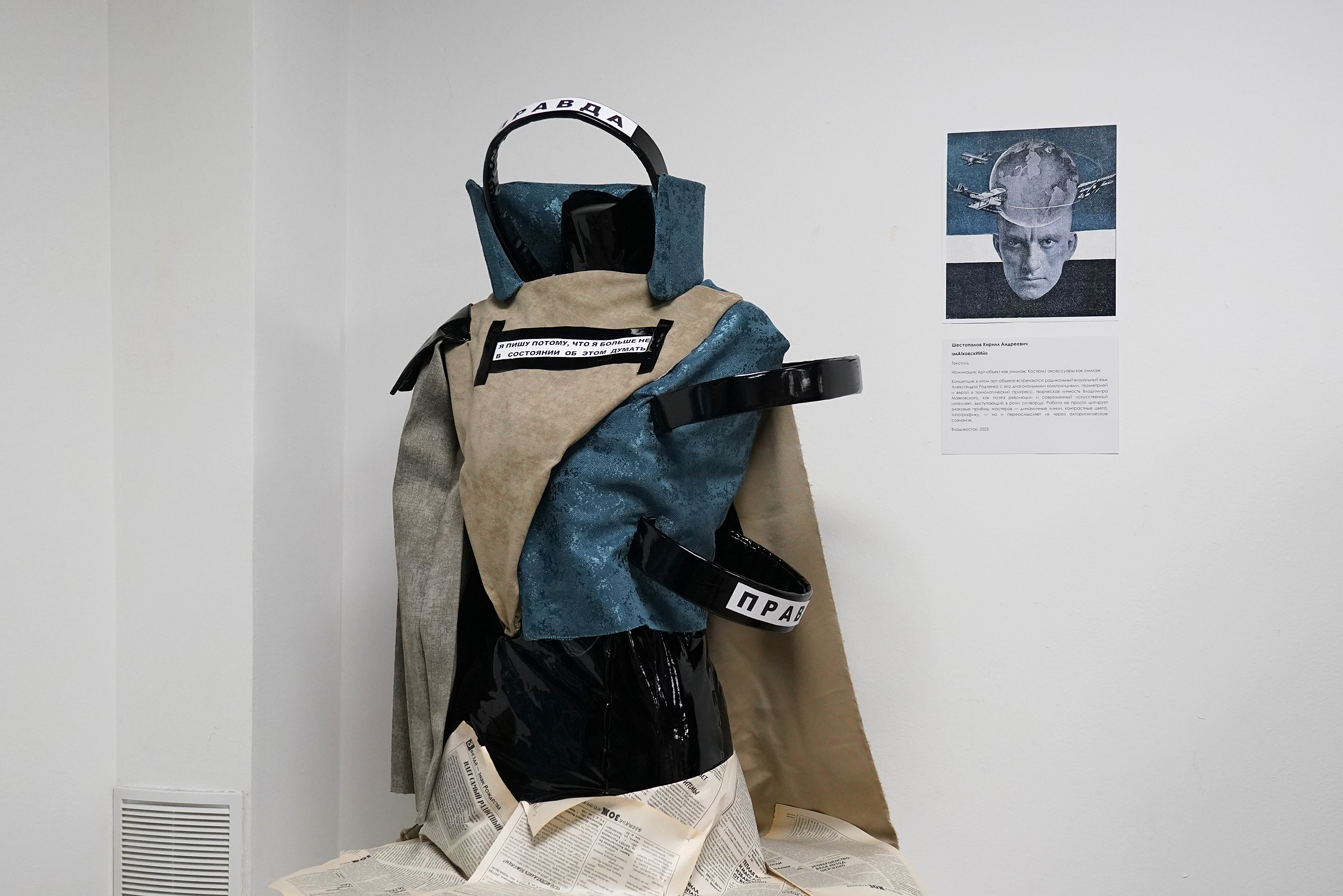 Особое внимание Татьяна Терентьева уделила арт-объекту – костюму из коллекции «Восточные муссоны» выпускницы ВВГУ Маргариты Авоян, созданному под влиянием картин Александра Родченко «Черное на черном».