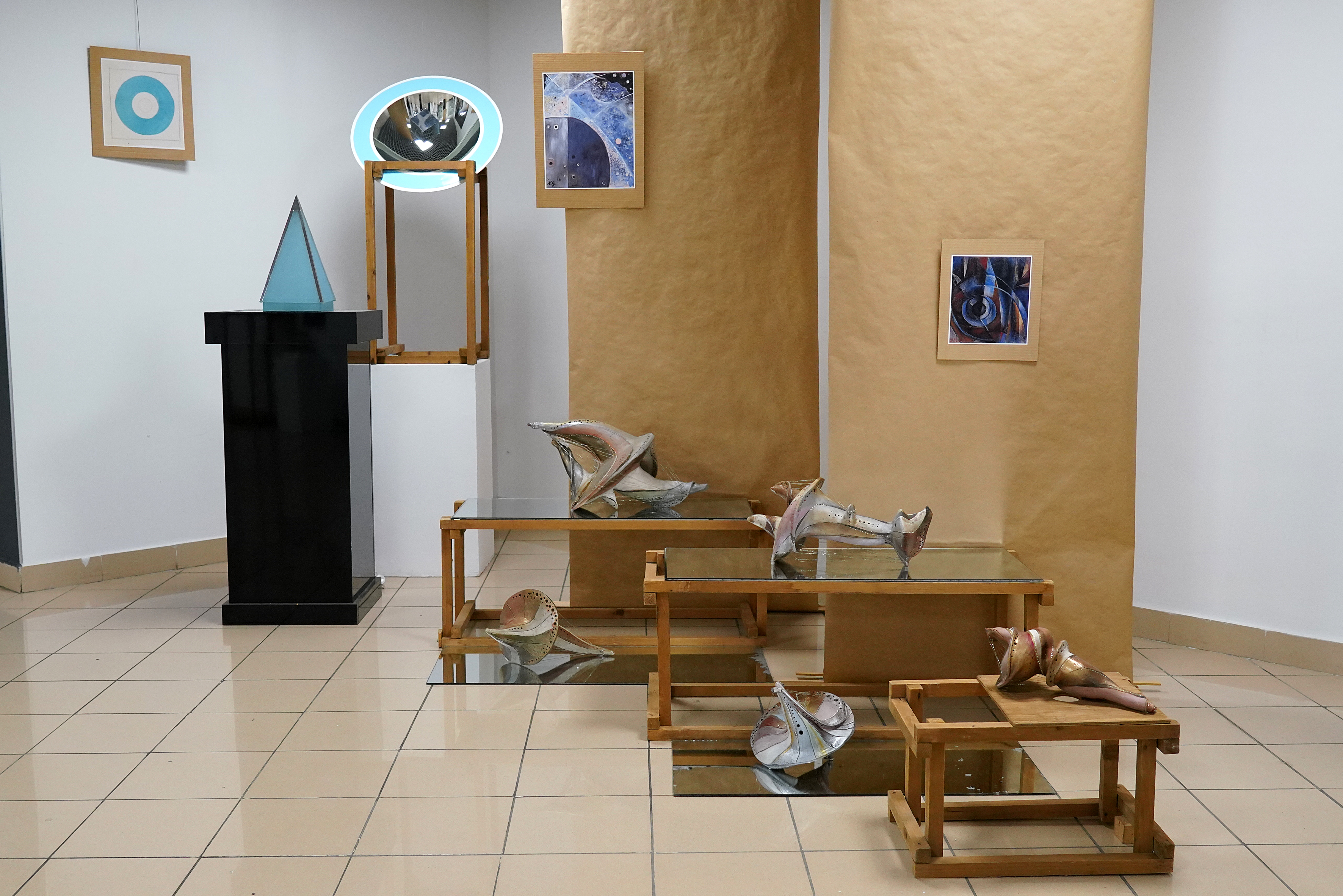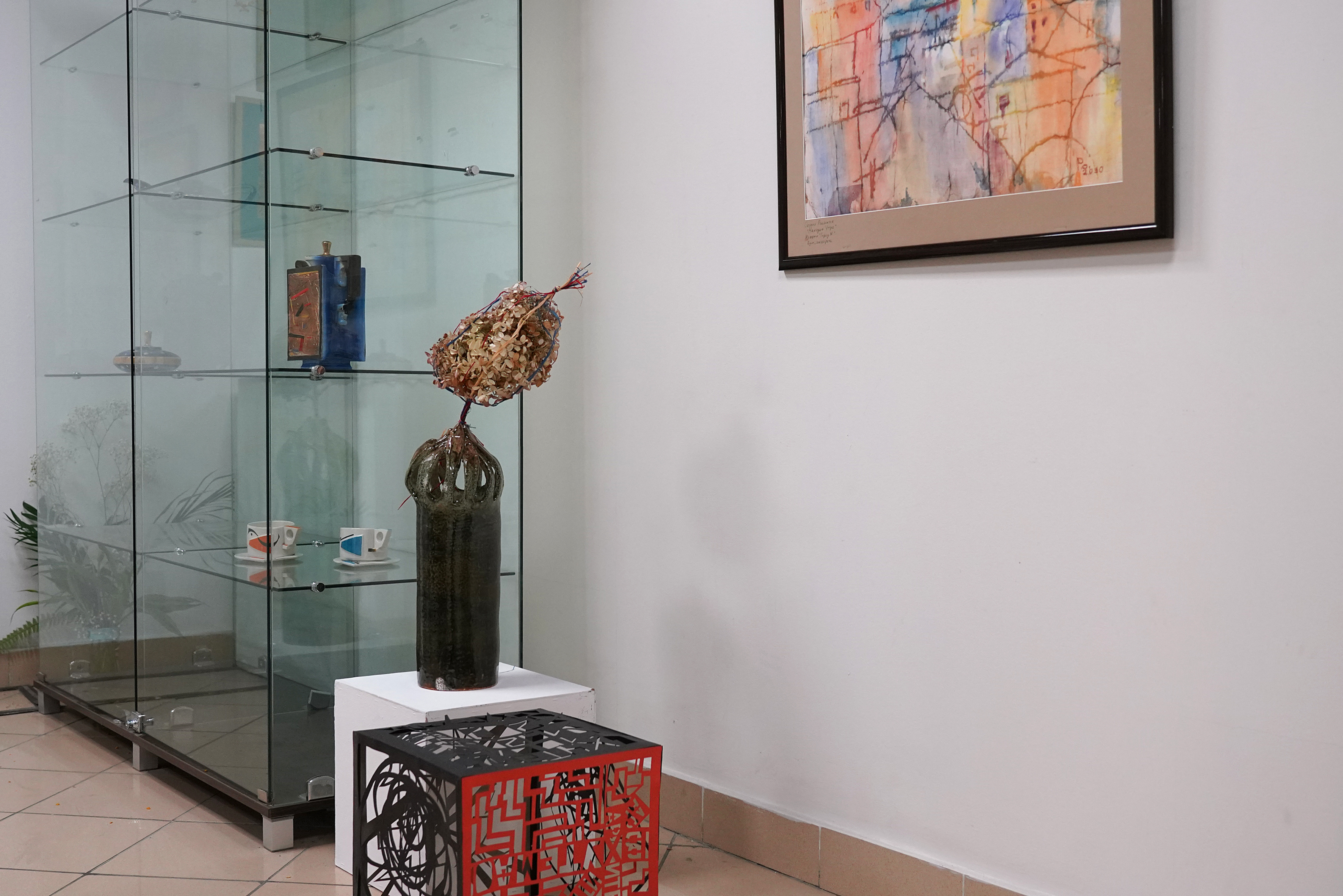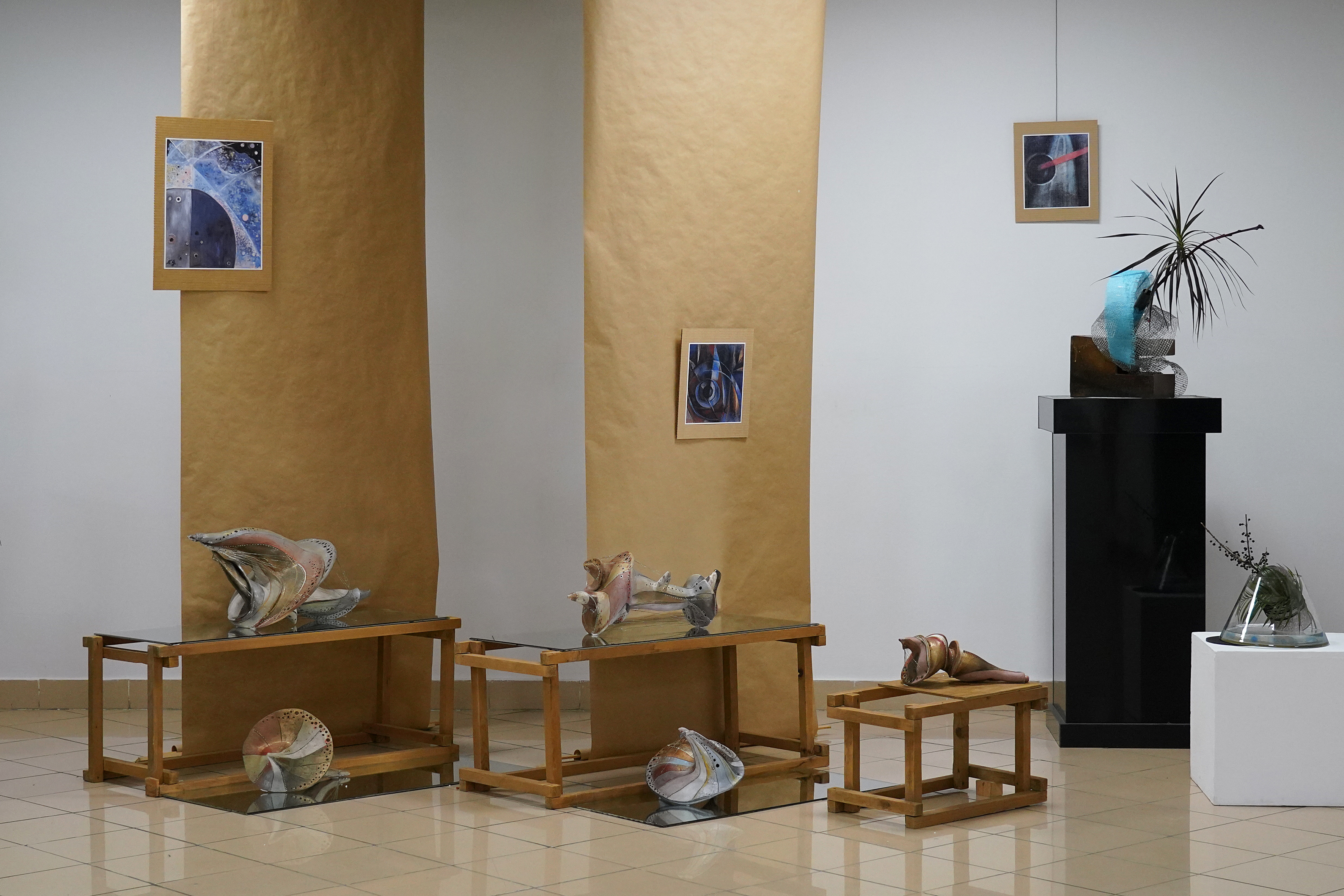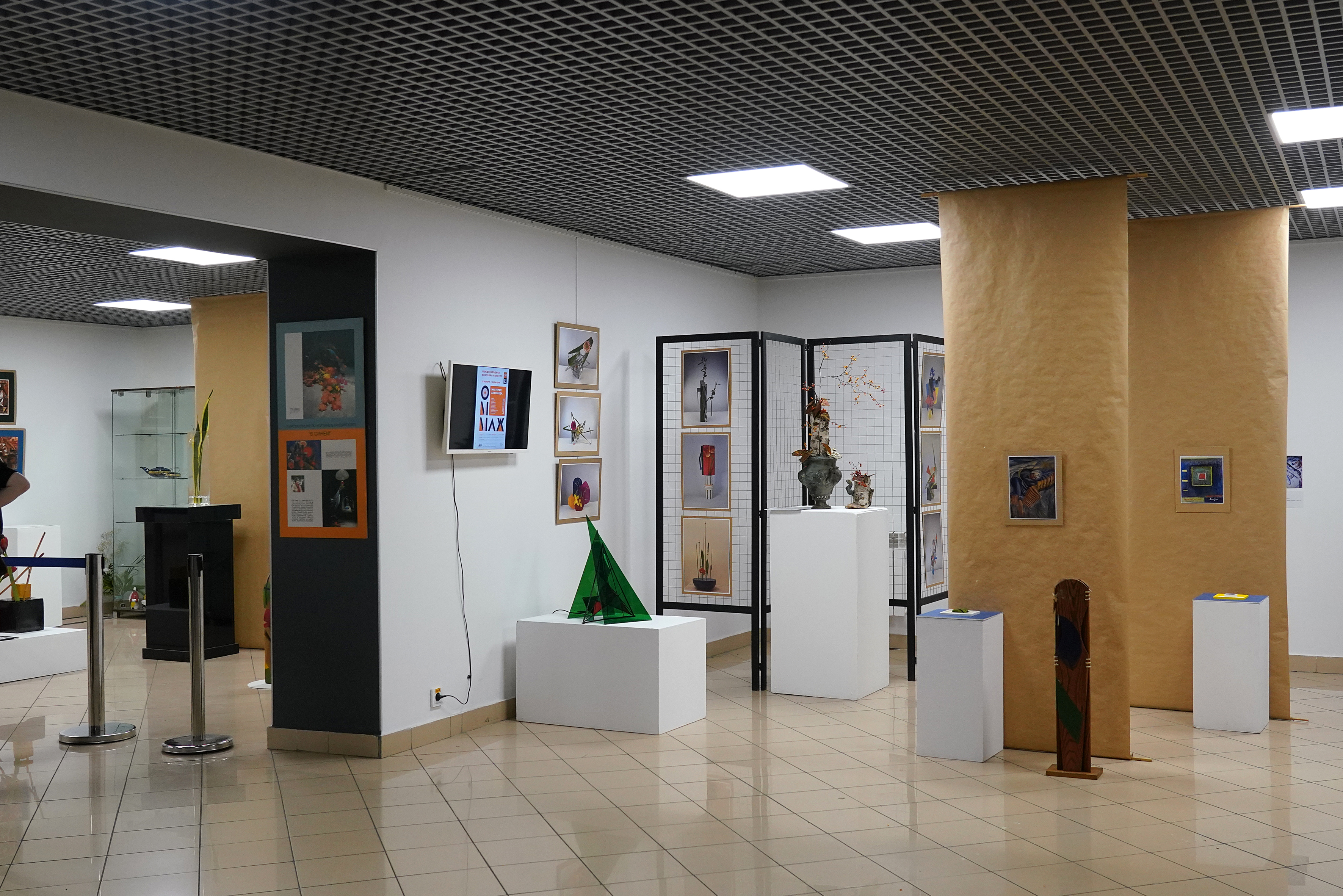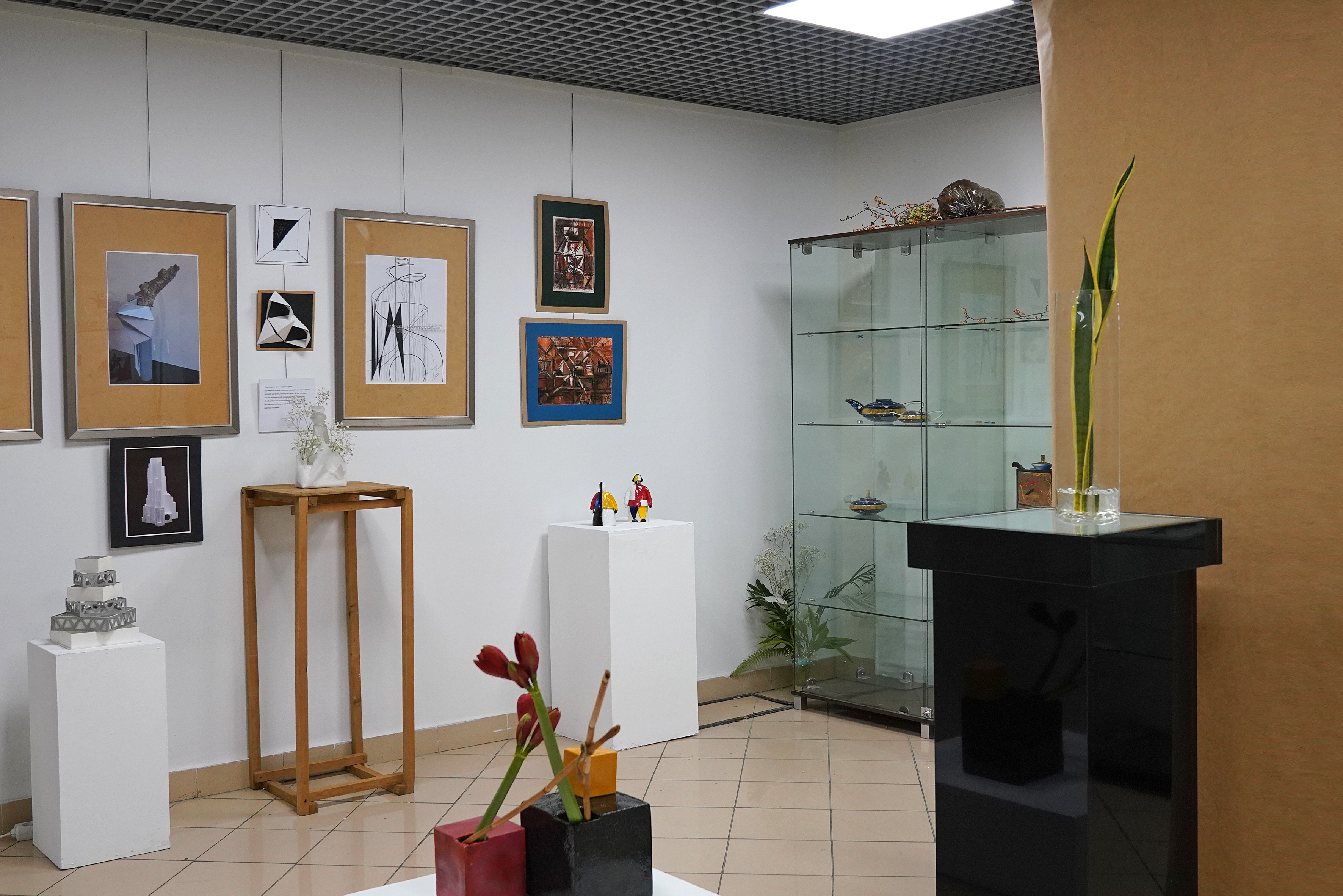 На выставке представлены работы в разных техниках и жанрах: живопись, графика, керамика, коллаж, фотография, бумагопластика, флористические композиции.