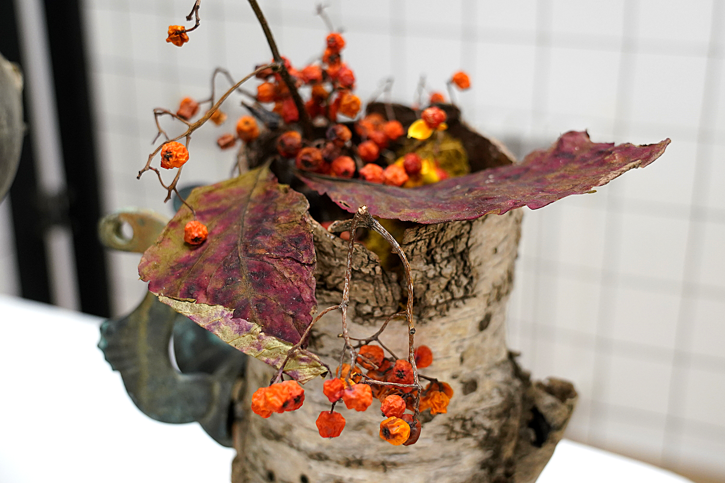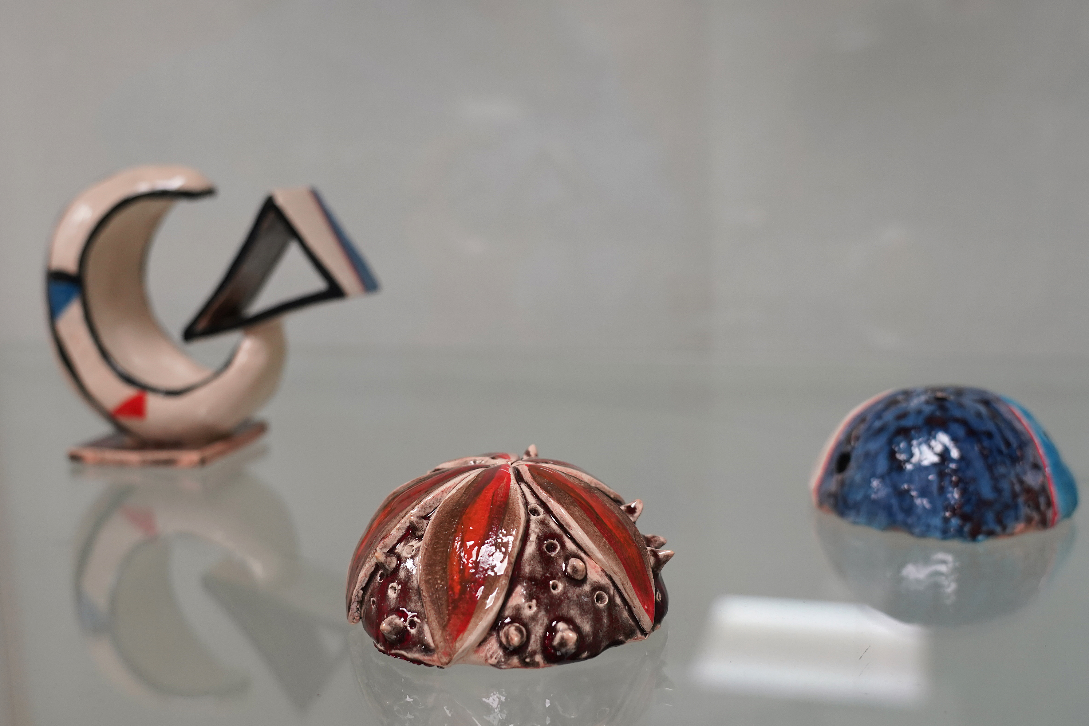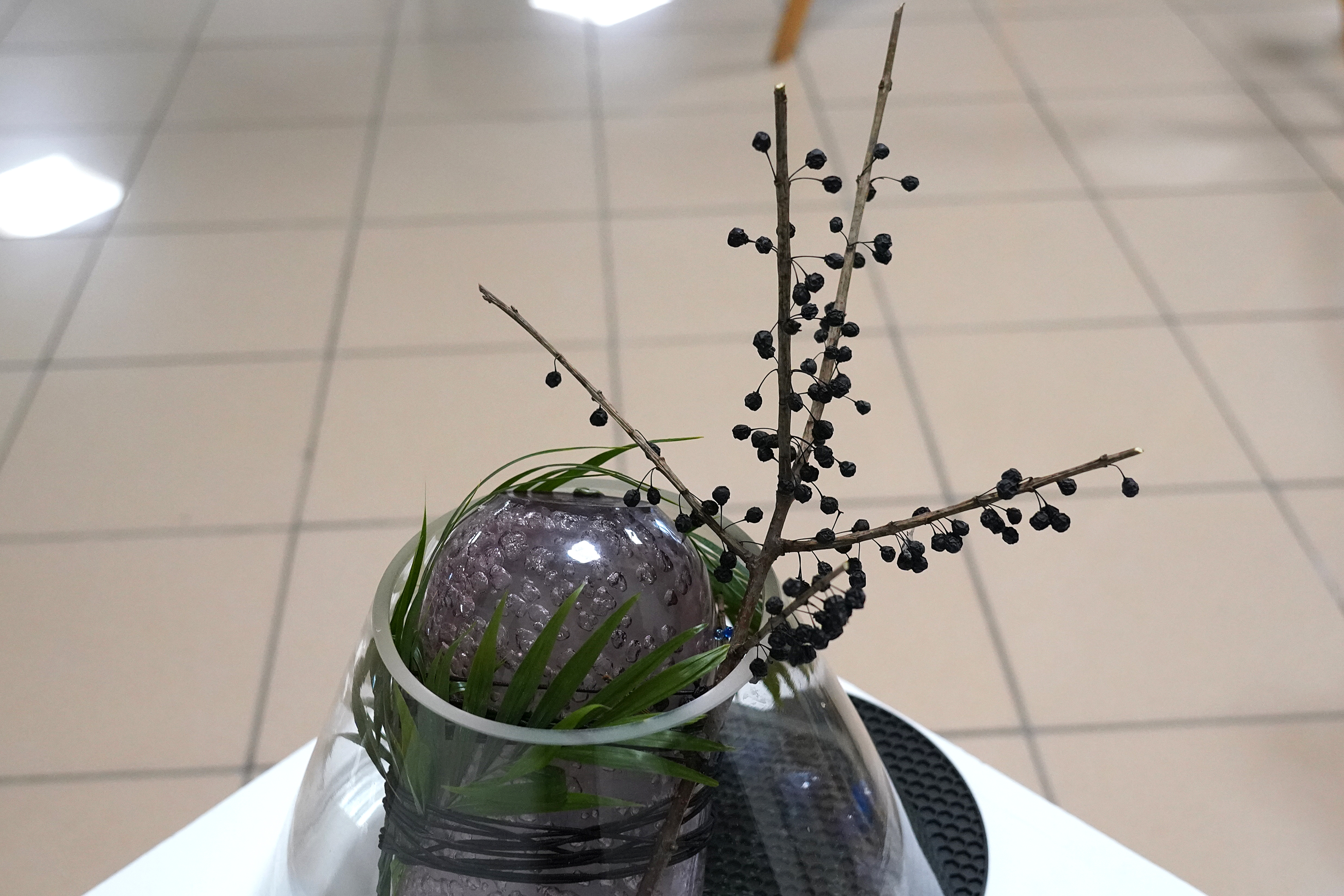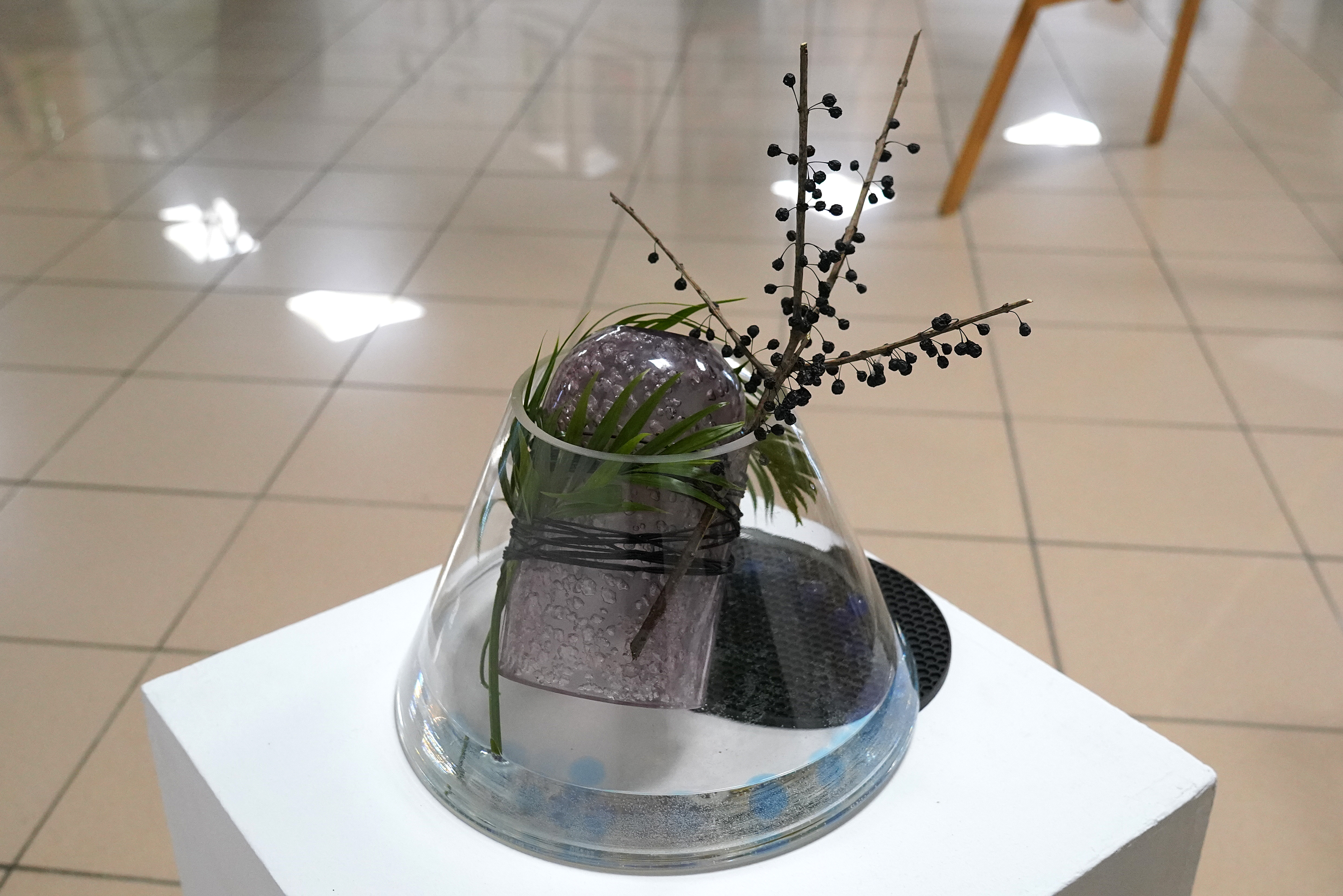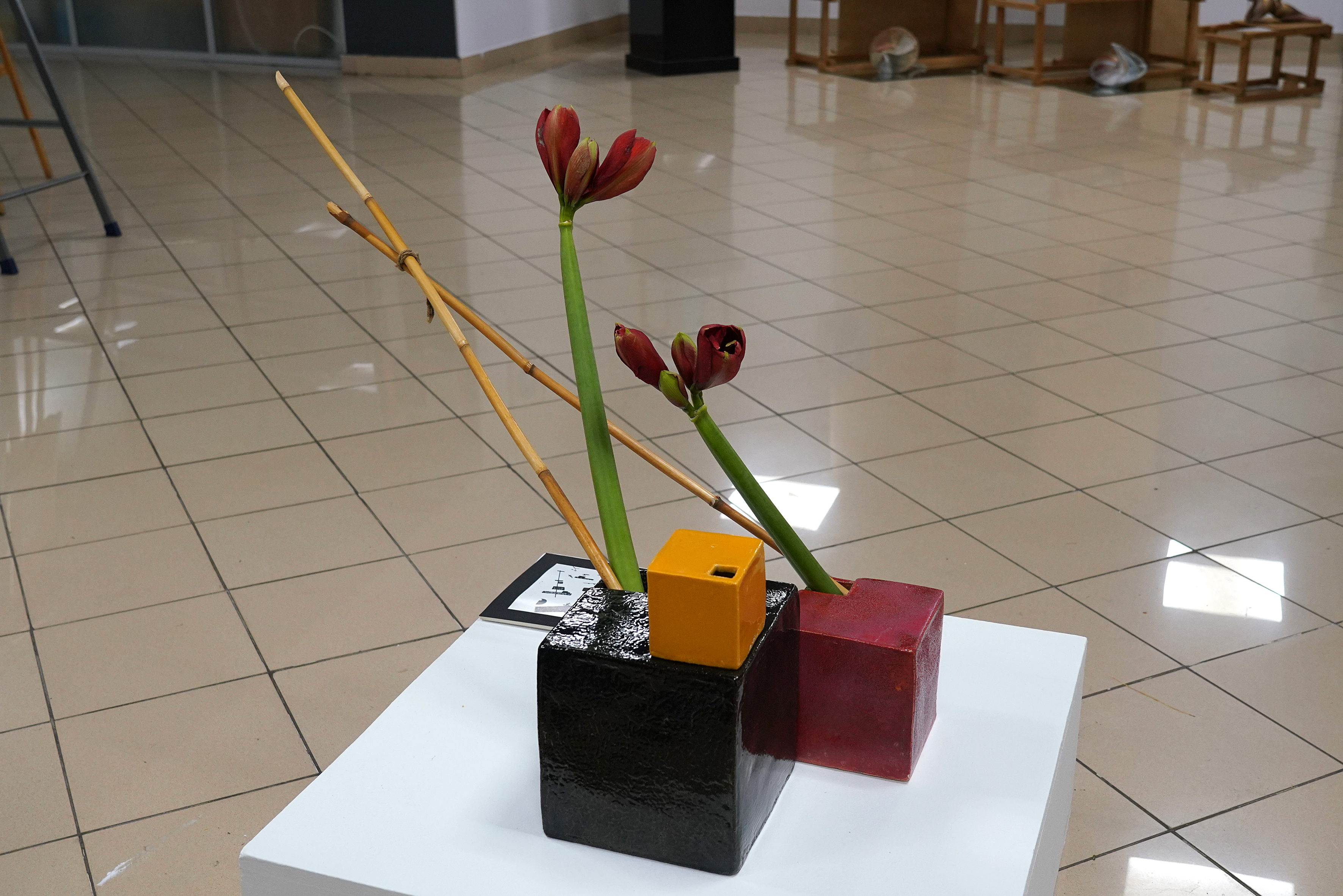 На выставке представлены работы в разных техниках и жанрах: живопись, графика, керамика, коллаж, фотография, бумагопластика, флористические композиции.