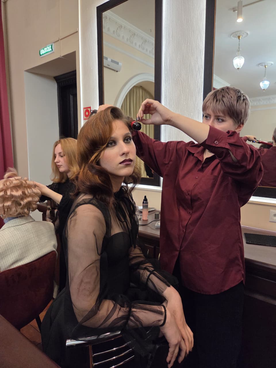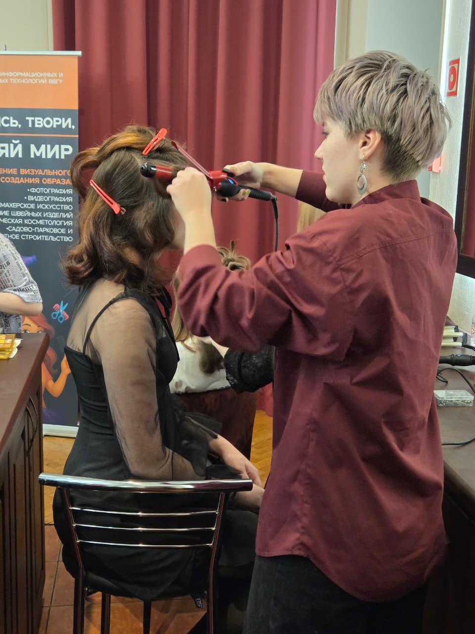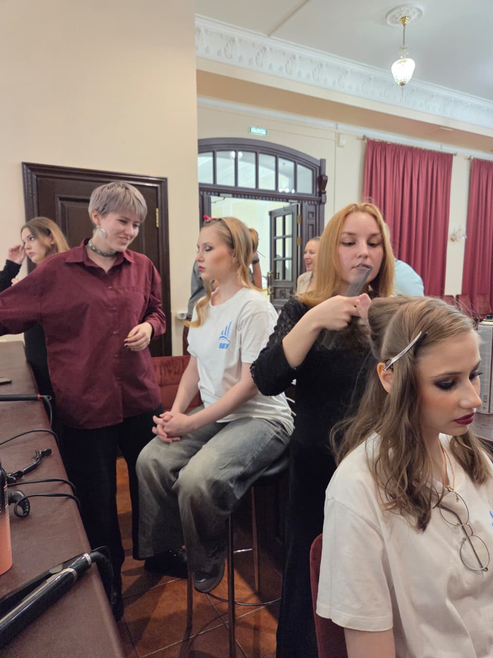 Учащиеся и преподаватели колледжа провели для участников мастер-класс по визажу и укладкам. В ярких образах 1920-х модели выступили на модном показе.