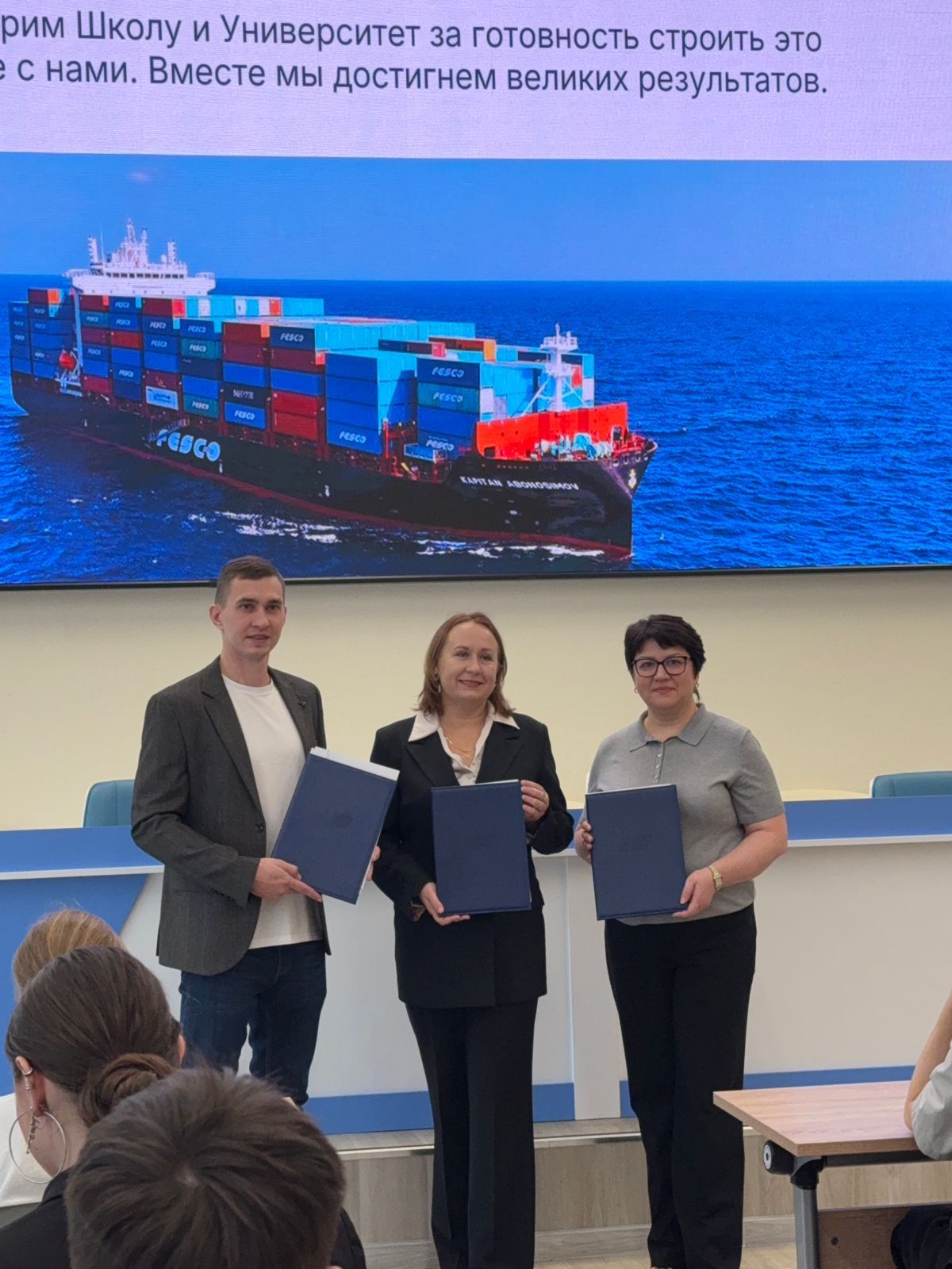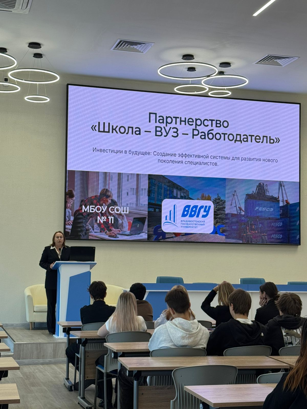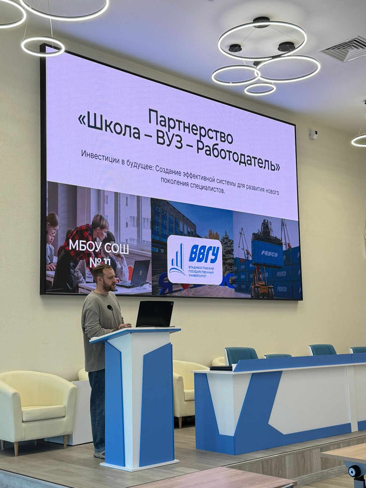 Владивостокский государственный университет, Транспортная группа FESCO («FESCO», «Группа», предприятие в контуре управления госкорпорации «Росатом») и средняя общеобразовательная школа № 11 Владивостока заключили первое в Приморском крае соглашение о сотрудничестве в рамках профориентационного трека «школа – вуз – работодатель». Цель такого сотрудничества – совместная подготовка кадров для экономики региона.