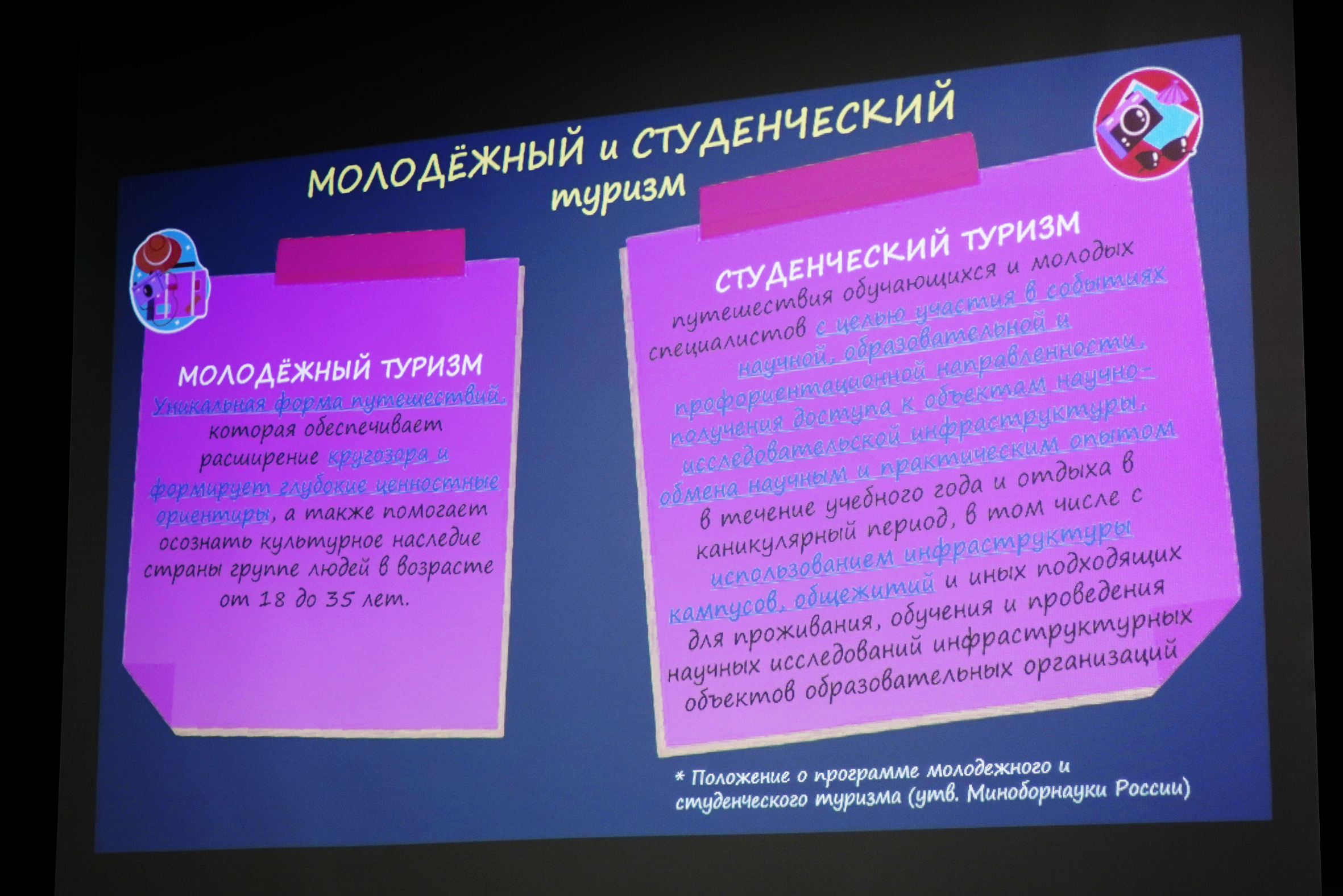 Участники школы познакомились с федеральной программой молодёжного и студенческого туризма. Об основных её возможностях рассказала директор Турцентра «ВГУЭС-ТРЭВЕЛ» Илона Олейникова. Сегодня «Студтуризм» это: