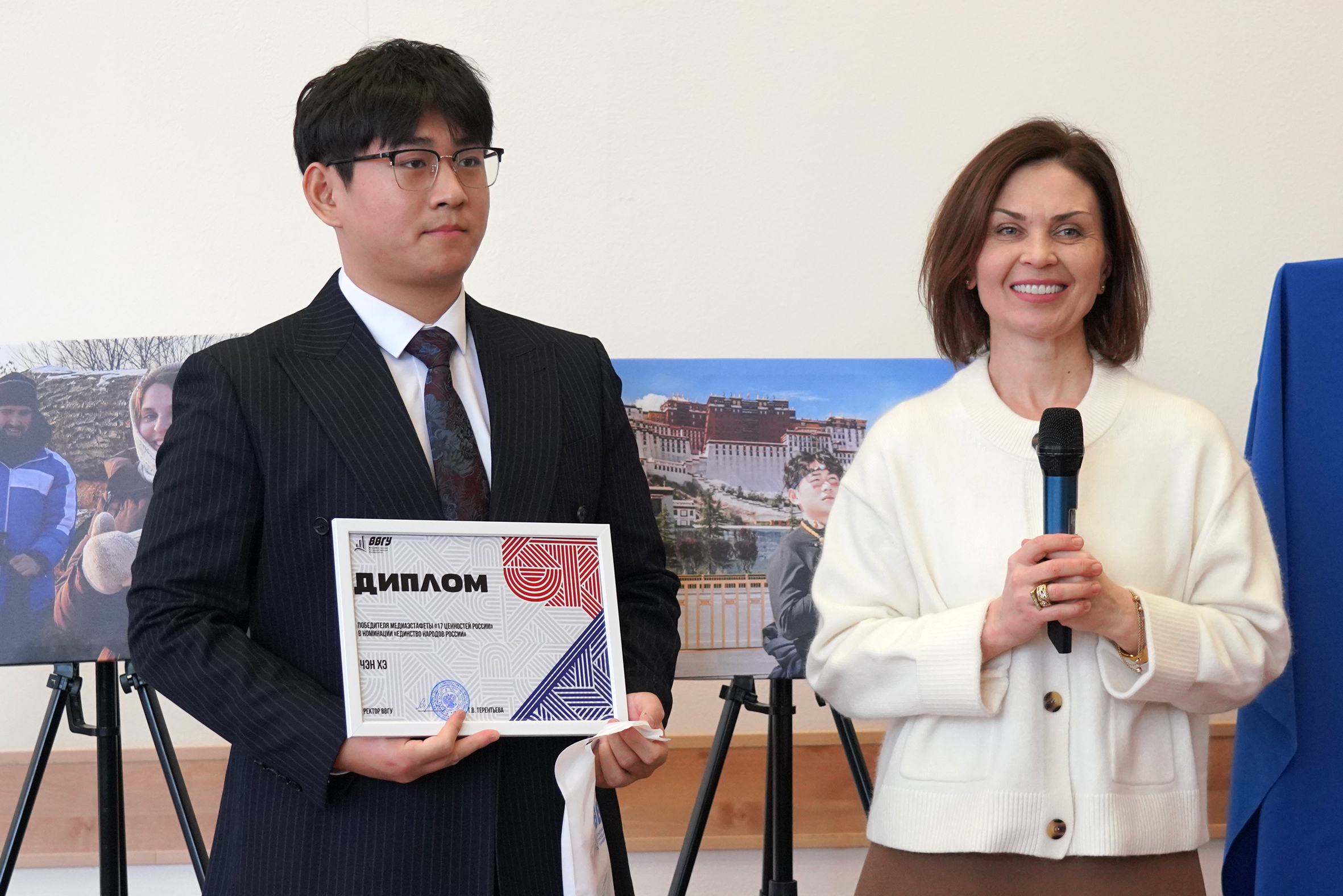 Обращаясь к участникам и гостям, ректор отметила, что каждая из семнадцати работ конкурса – это не просто снимок, а глубокая эмоция и гражданская позиция автора.