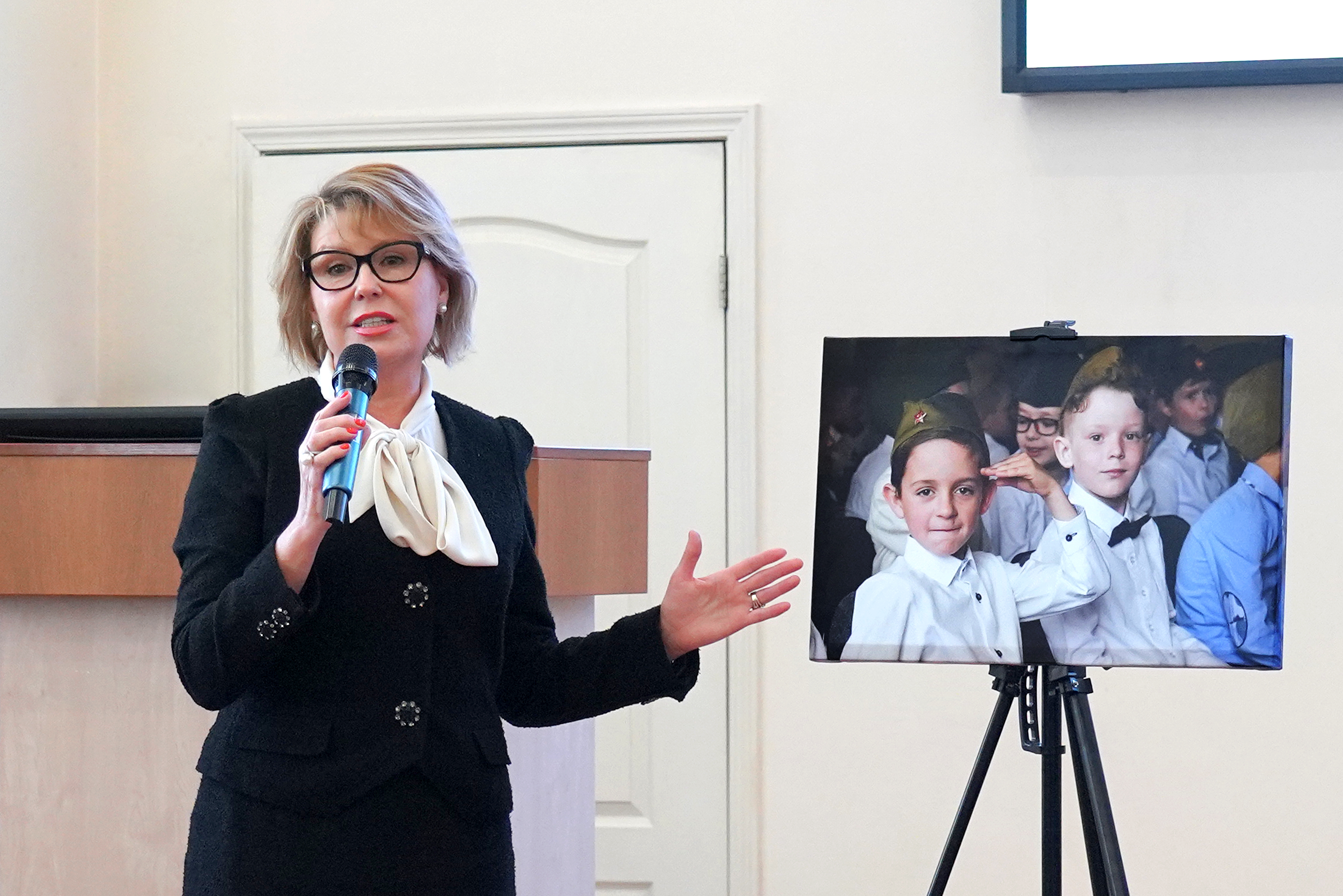 Ректор ВВГУ прокомментировала работу победителя в номинации «Патриотизм». Взглянув на фотографию, где младшеклассники в пилотках со звёздами выступают на празднике Дня защитника Отечества, ректор вспомнила, как накануне видела, как дети исполняли Гимн России и была тронута тем, что каждый ребёнок знал слова. Она рассуждала о том, что патриотизм – это прежде всего готовность сделать всё для своих близких, для своей семьи, а через это – и для всей страны.