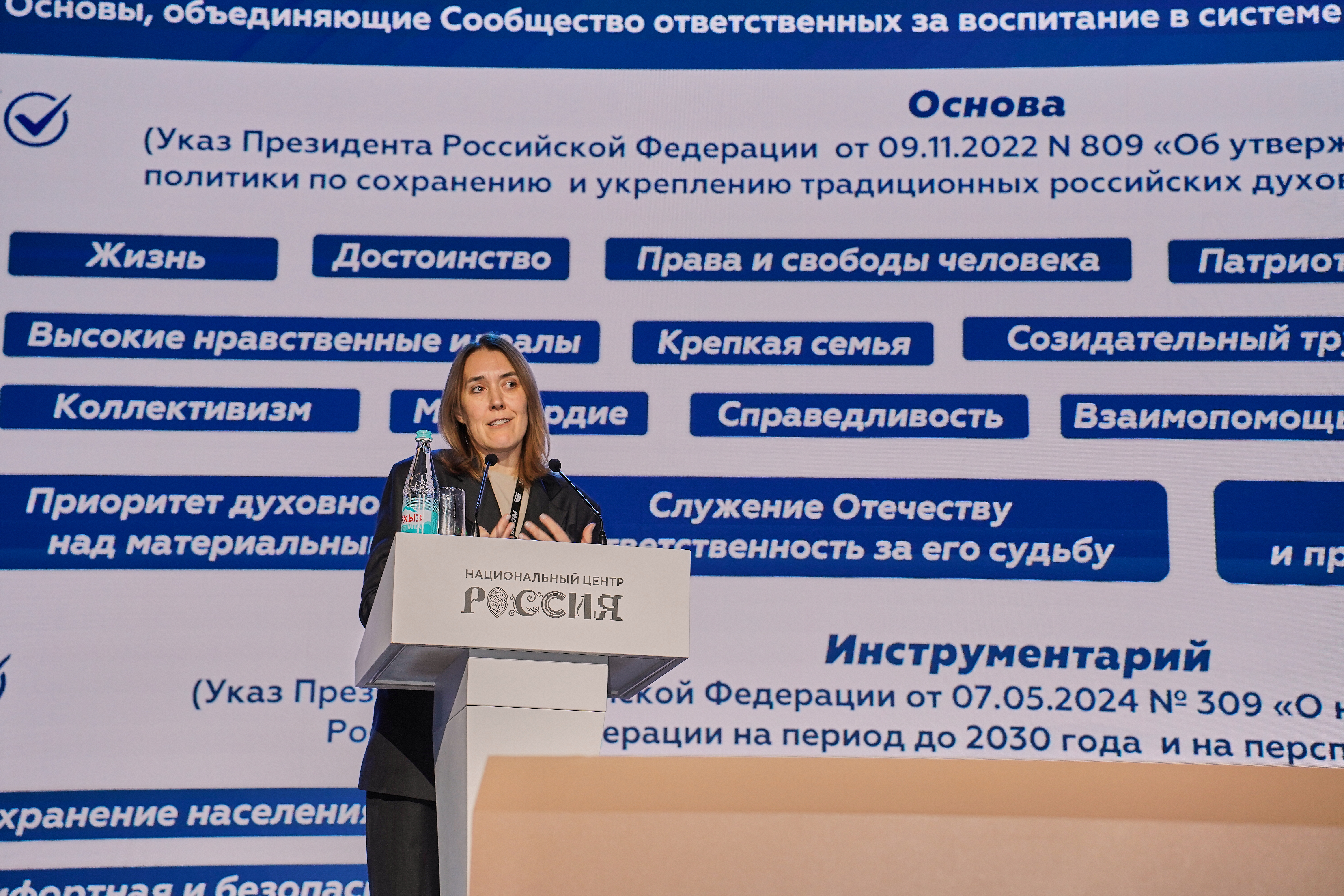 Заместитель министра науки и высшего образования Российской Федерации Ольга Петрова напомнила, что с 2023 года воспитательная деятельность в вузах была переориентирована в соответствии с указом президента №809, определившим приоритетные духовно-нравственные ценности и целевые ориентиры до 2030 года. Она рассказала о корректировке программ воспитательной работы с акцентом на ключевые направления государственной политики, включая поддержку студенческих семей, реализацию мер демографической повестки и развитие патриотических инициатив среди студентов.