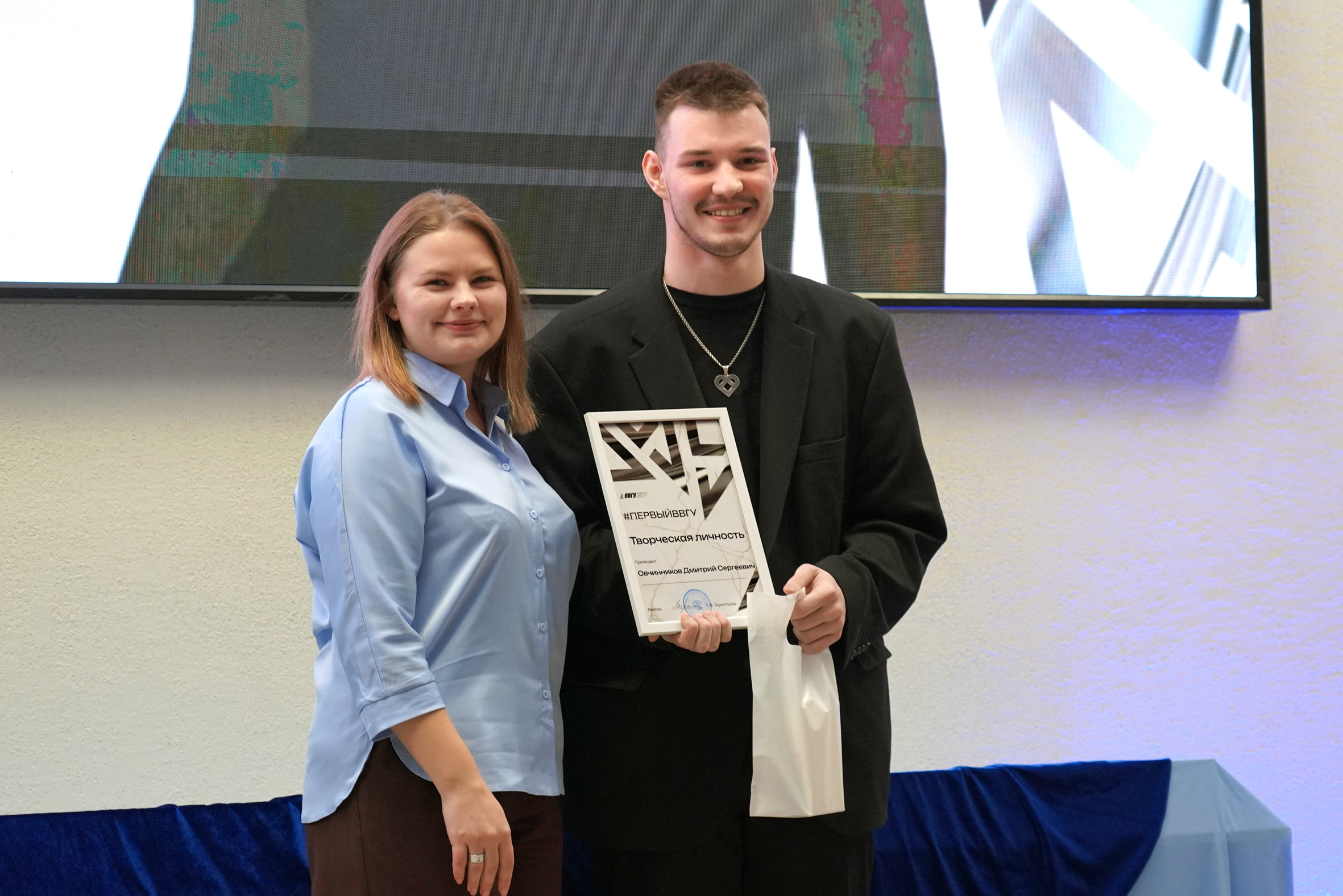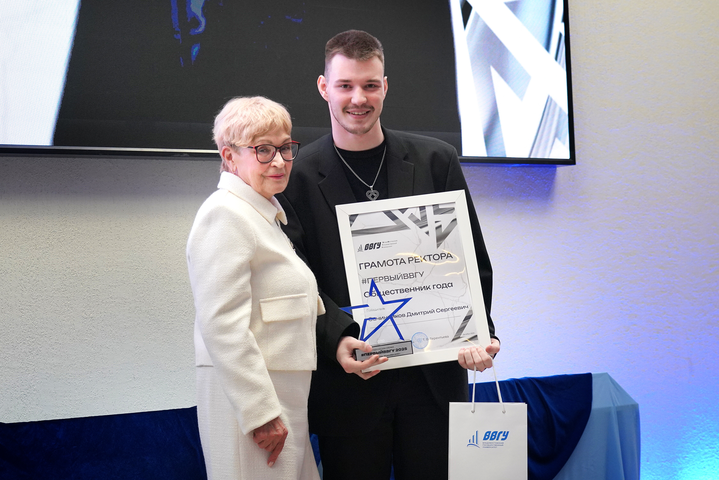 Общественник года – Овчинников Дмитрий (Академический колледж): основатель и креативный продюсер ТИК «Фарватер», лауреат премии «Молодёжный вектор – 2025» в номинации «Вдохновляю на творчество», диплом II степени в номинации «Оригинальный жанр» конкурса «Звёздная осень ВВГУ».