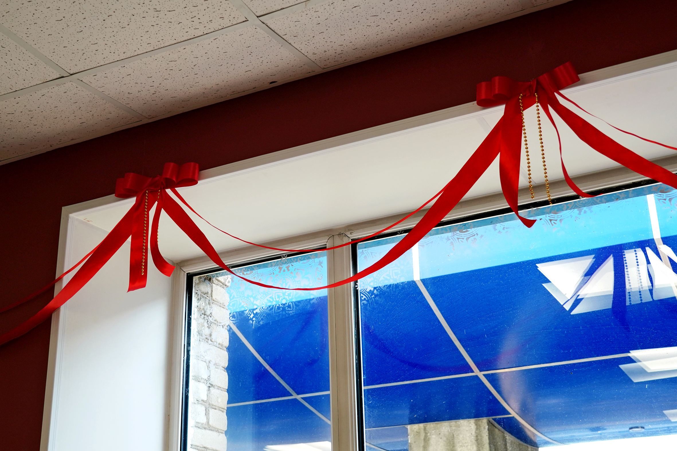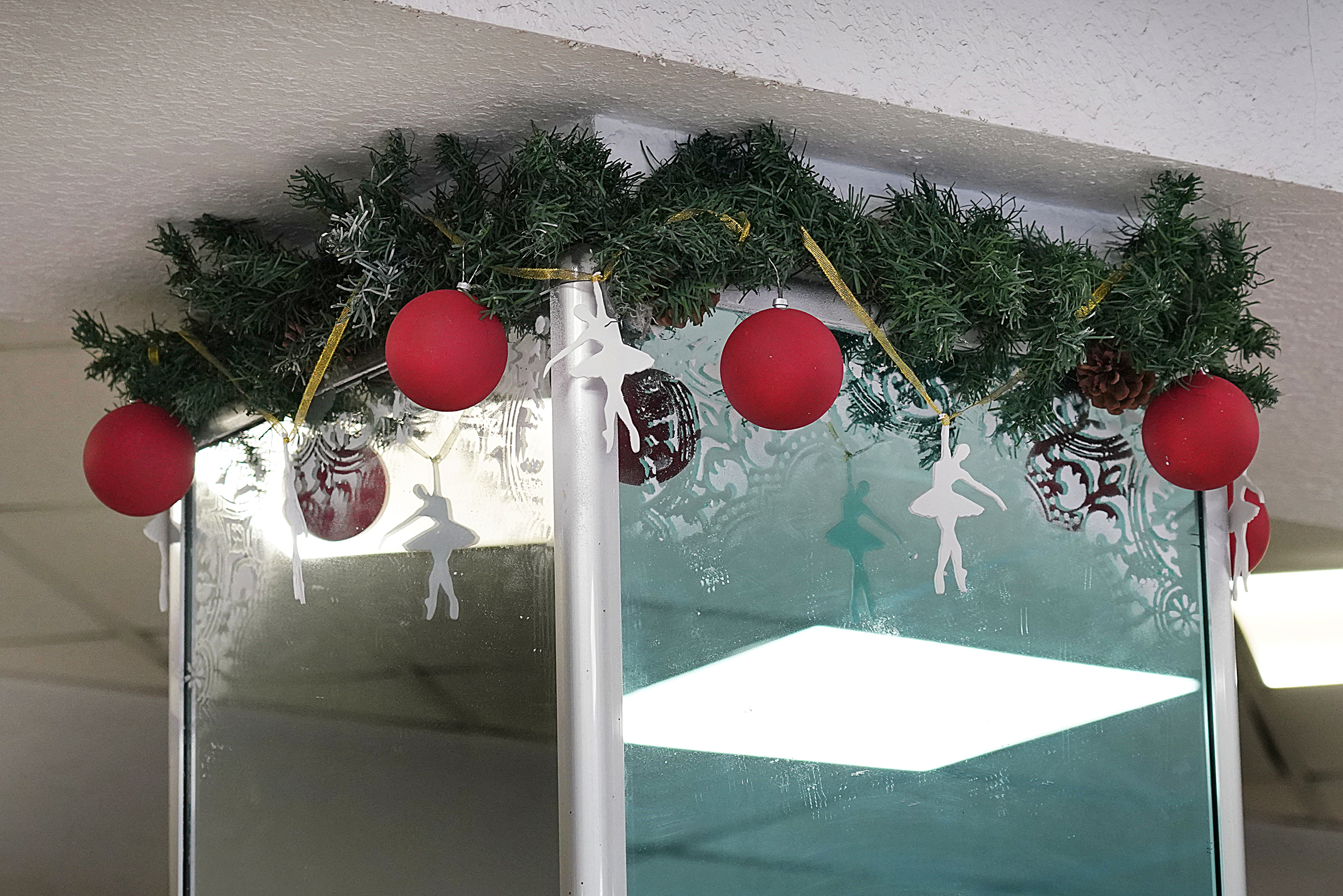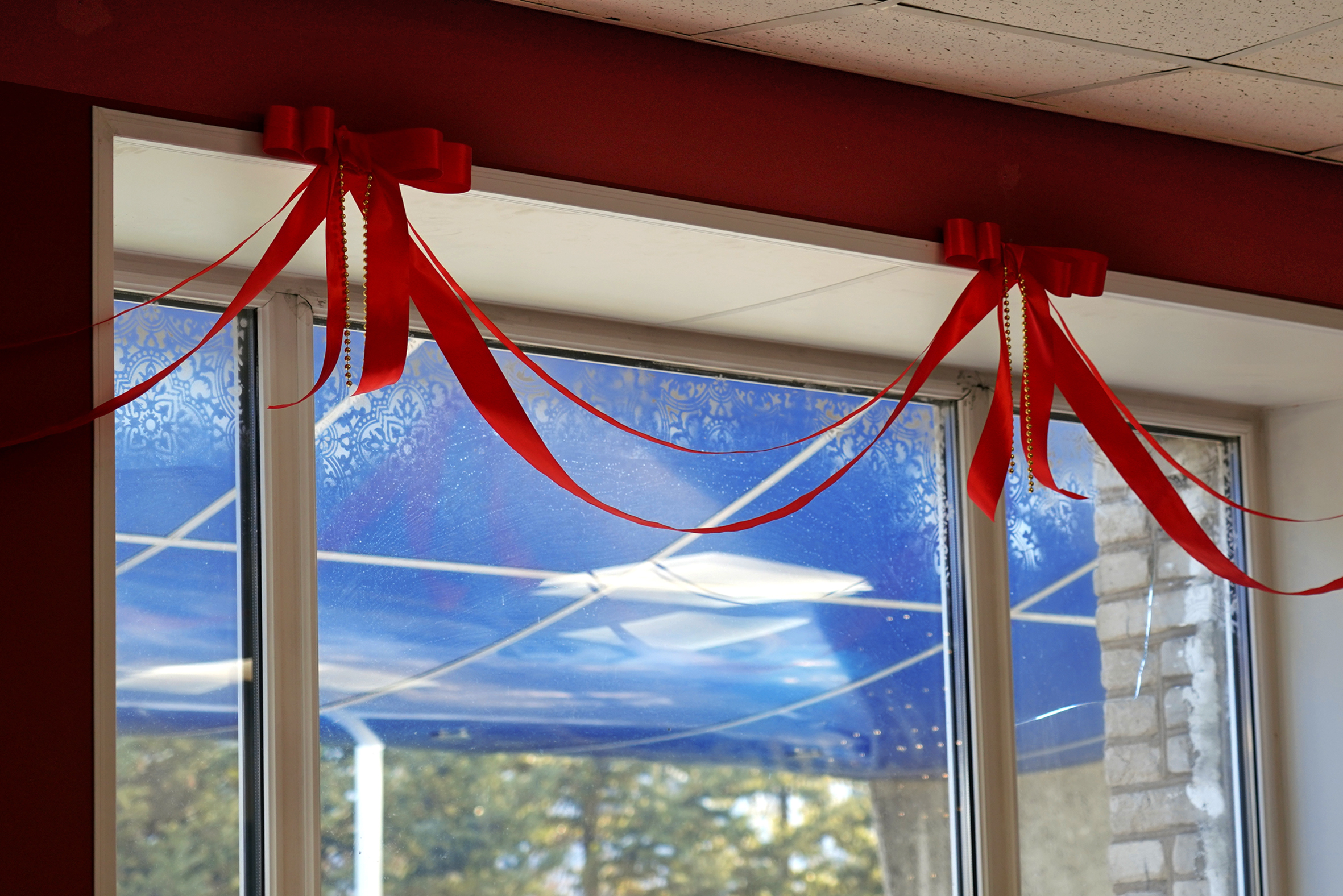 Общее пространство украсили яркими лентами и золотыми бусами – главный тренд наступающего 2026 года. Изюминка концепции – гирлянда с маленькими фигурками балерин – отсылка к отечественному балету «Щелкунчик», известному всему миру.