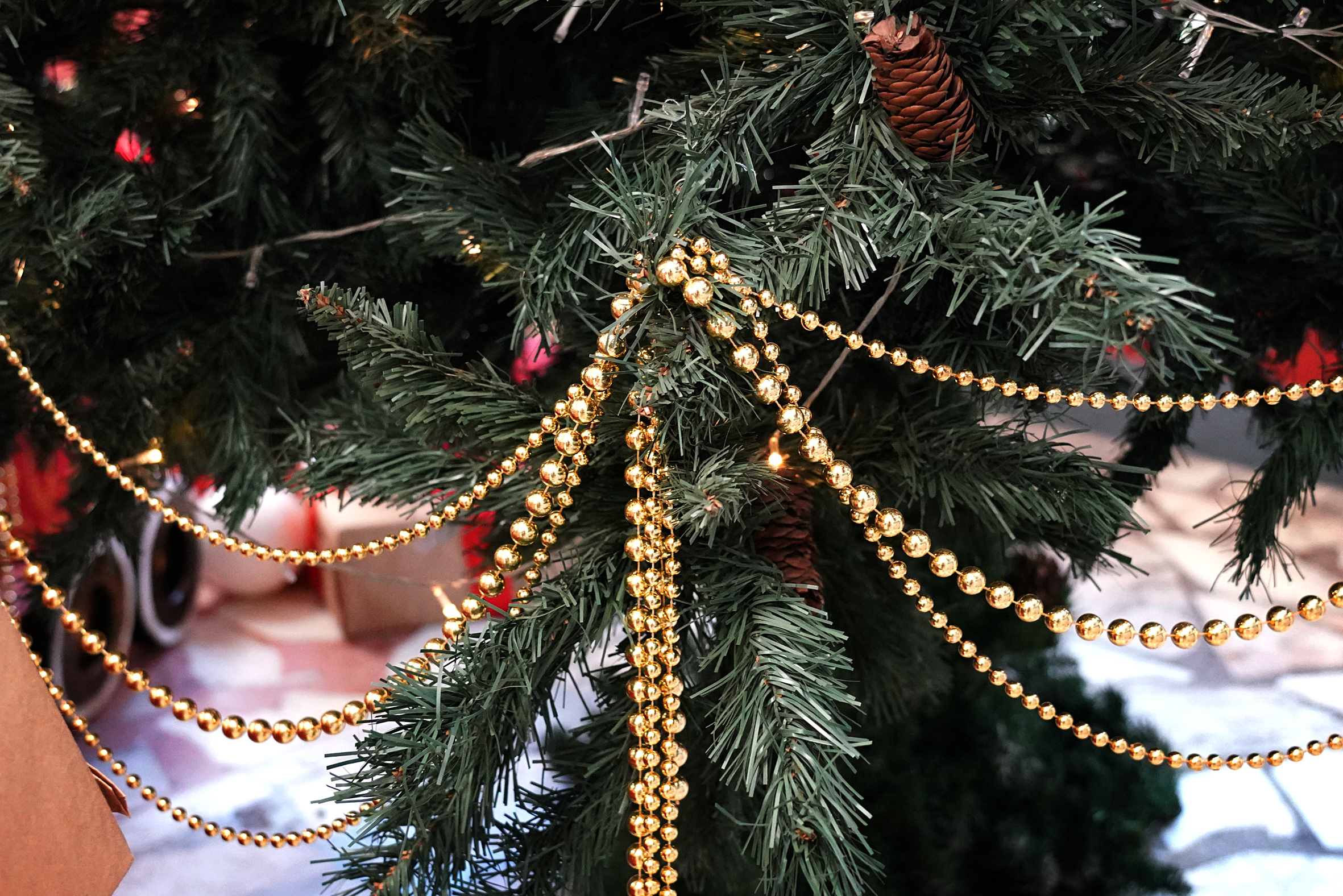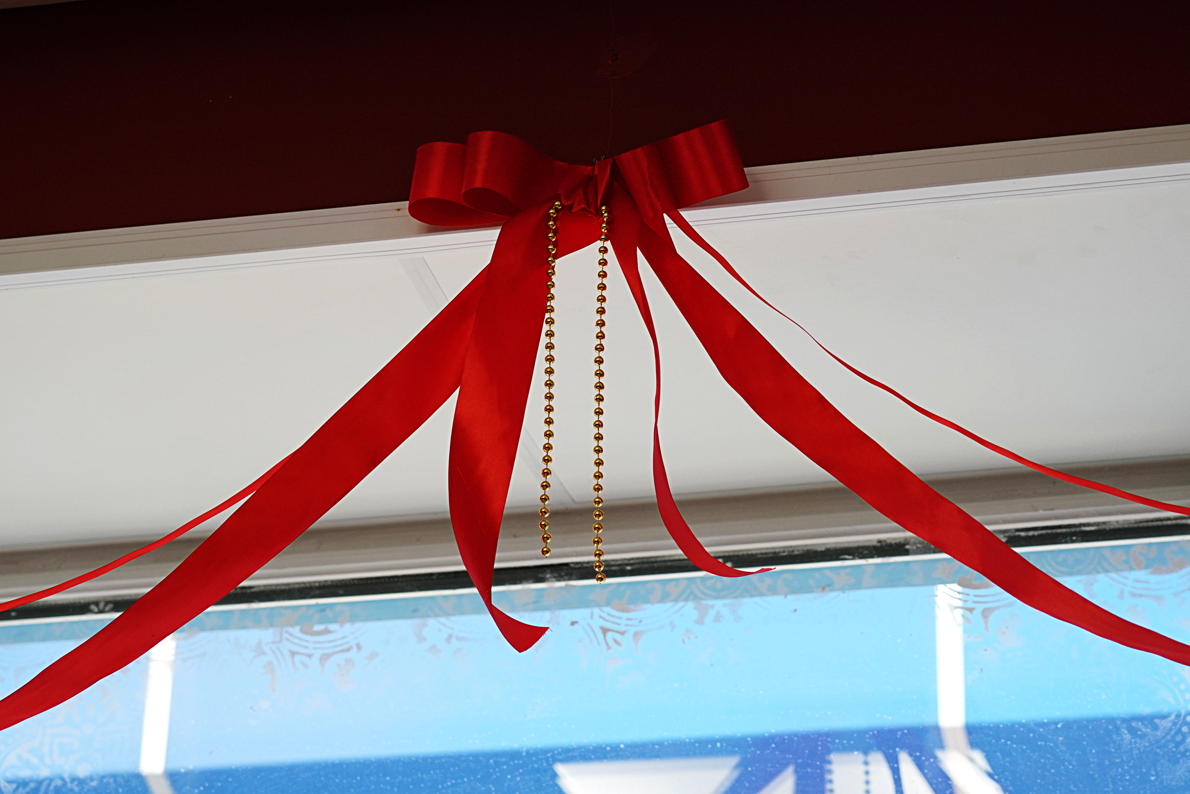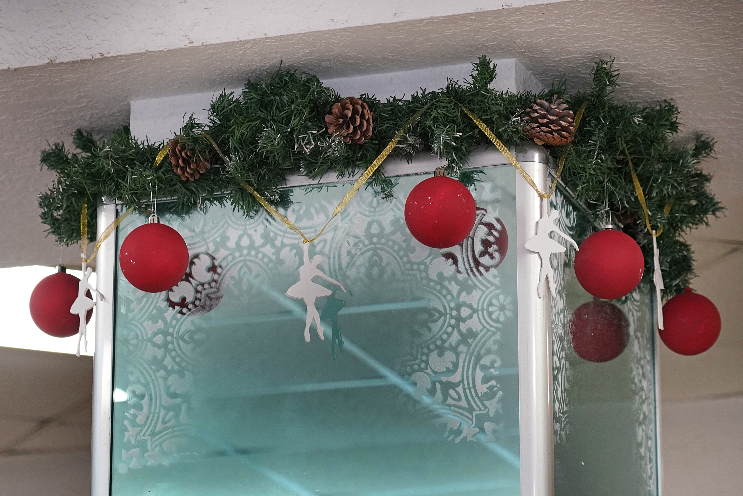 Общее пространство украсили яркими лентами и золотыми бусами – главный тренд наступающего 2026 года. Изюминка концепции – гирлянда с маленькими фигурками балерин – отсылка к отечественному балету «Щелкунчик», известному всему миру.