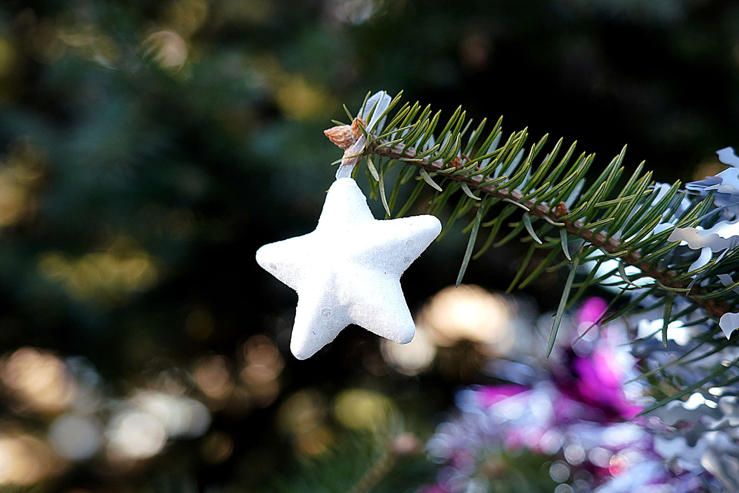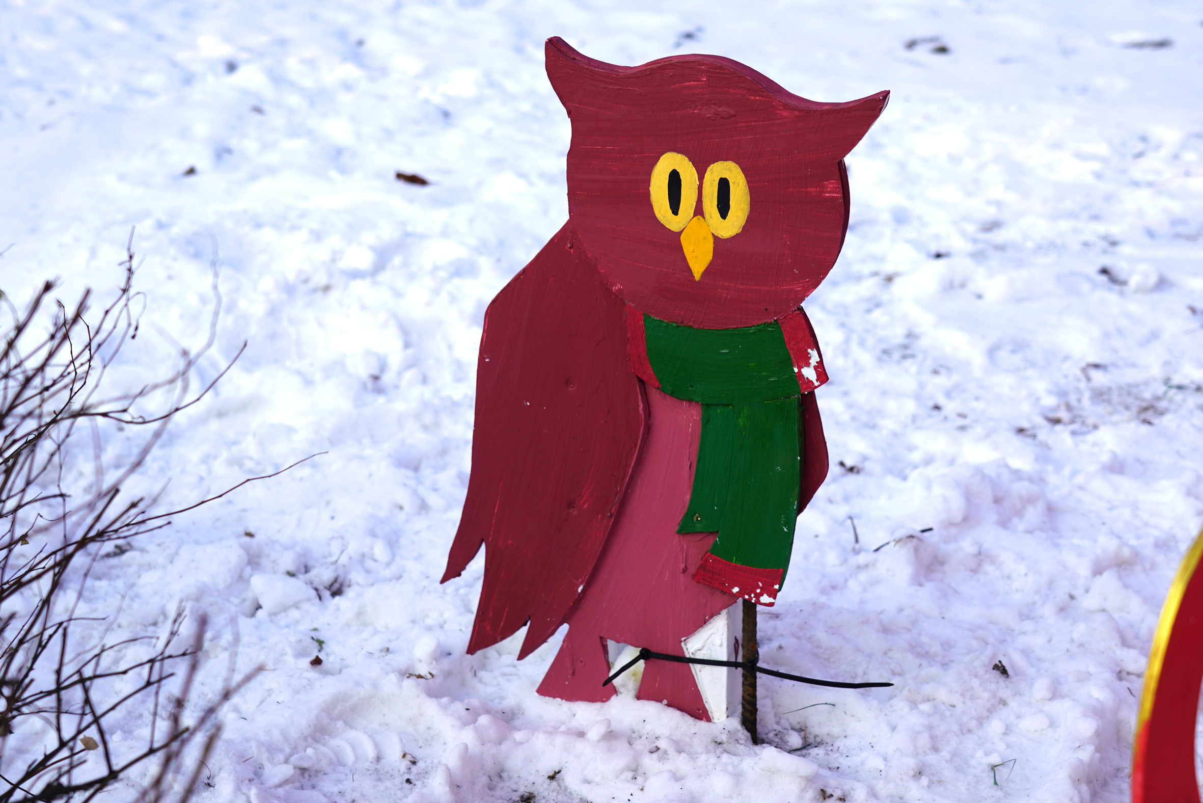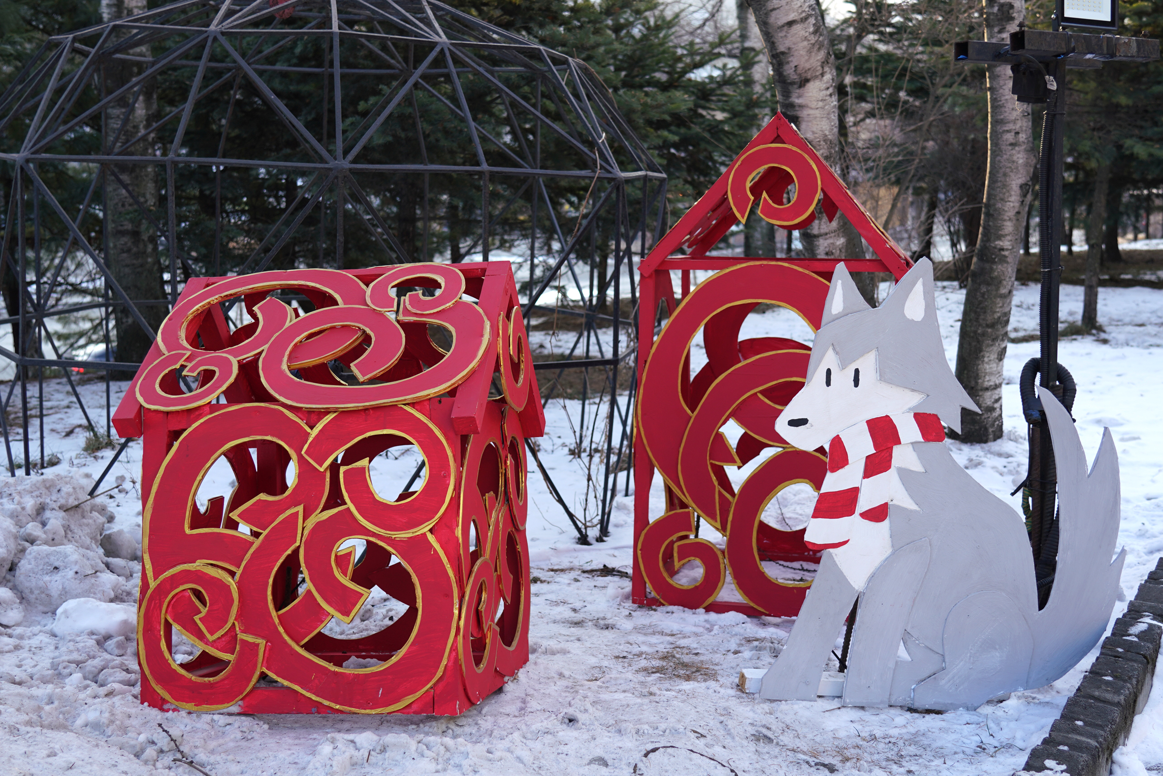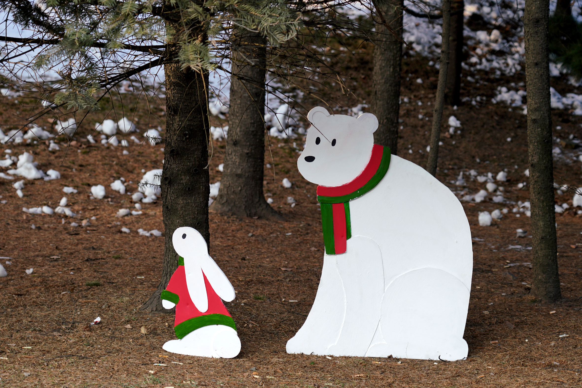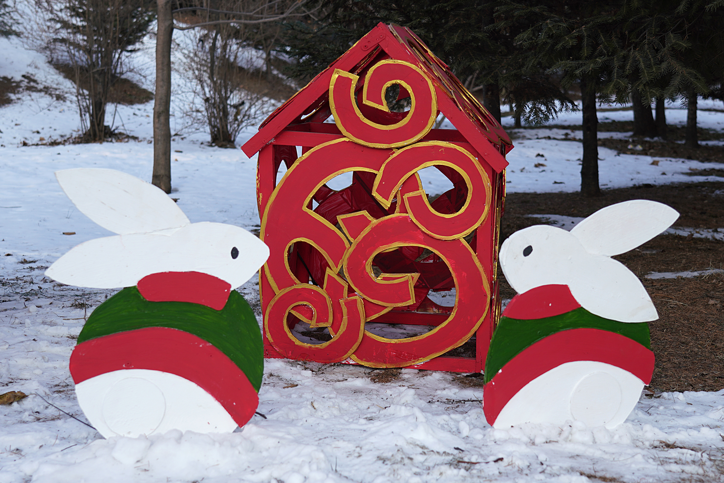 Главным звеном украшения стал новогодний поезд с подарками. Массивную инсталляцию установили у самого подножия новогодней ели. Вся она изготовлена студентами вручную из простого пенопласта.