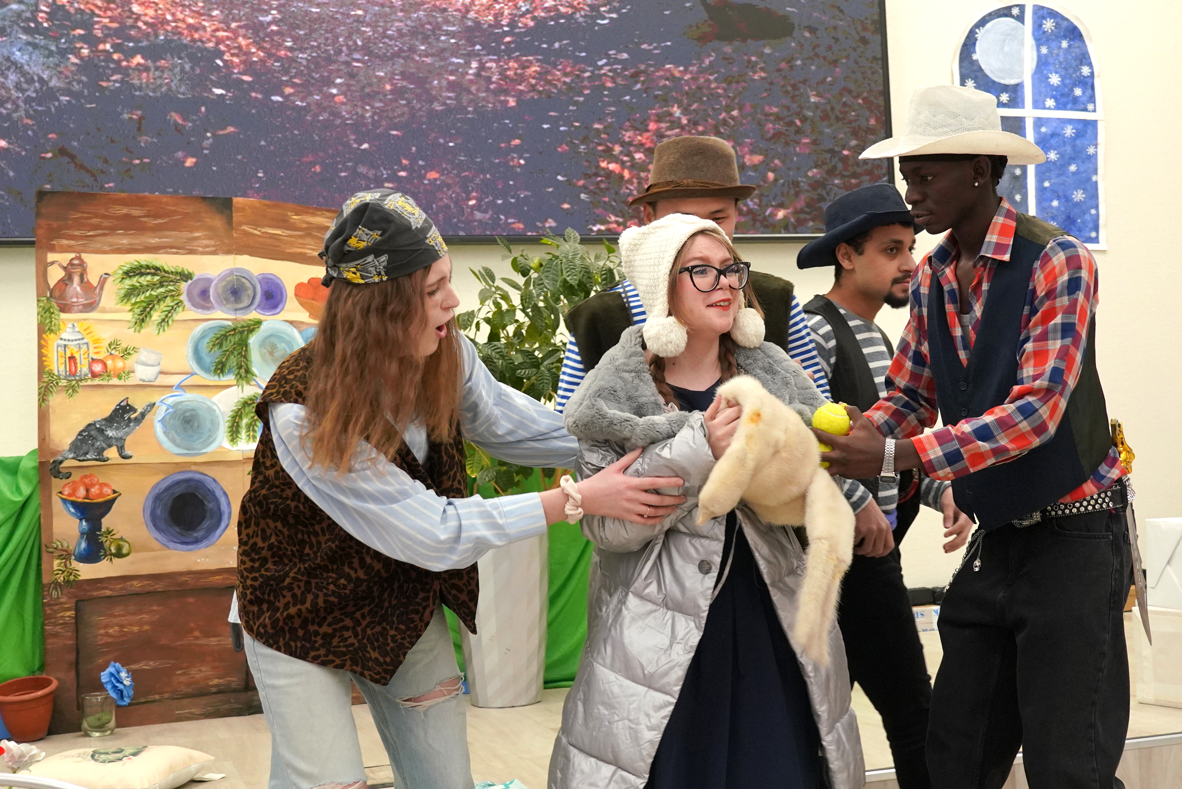 Организаторы отмечают, репетиции к спектаклю проходили весело и содержательно. Каждый участник хотел, чтобы у него обязательно были слова. Поэтому было решено дать слова и роли всем. А студенты, играющие разбойников, и вовсе поставили цирковой номер – научились жонглировать и крутить обруч.
