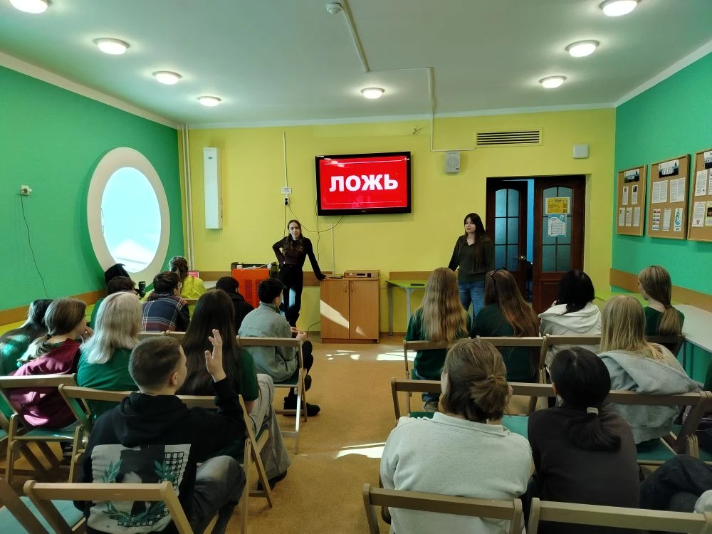 Студентка Высшей школы кино и телевидения Марина Якубенко провела лекцию о коммуникациях с собеседником и рассказала подросткам о цифровой грамотности: как не попасться на уловки мошенников и отличить фейковую новость от правдивой.![]()