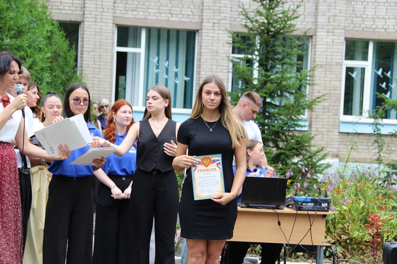 Тепло и душевно поздравила студентов заместитель директора по воспитательной работе и молодёжной политике Компаниец Алина Александровна. Она призвала всех студентов активно пользоваться возможностями внеучебной жизни. Ведь студенческие годы — это не только пары и зачёты, но и время ярких событий, творческих побед и настоящей дружбы. Алина Александровна торжественно наградила грамотами самых активных студентов за достижения в учебной, научной, творческой и спортивной деятельности за прошедший учебный год. Среди награждённых были члены студенческого совета, победители конкурсов и олимпиад, а также студенты сборных команд филиала.