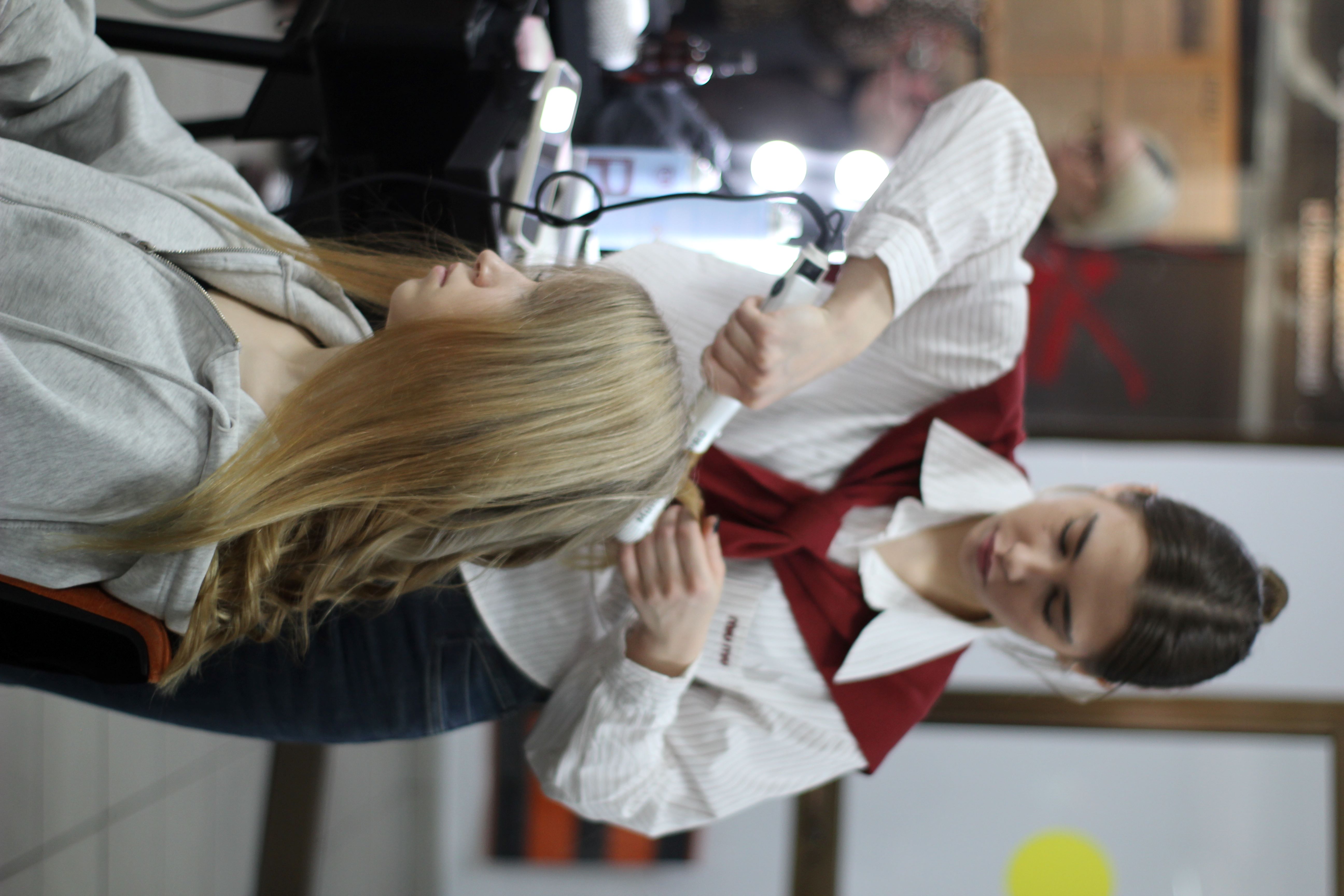 студенты-парикмахеры помогали создать стильные образы, завивали локоны и делали укладки;