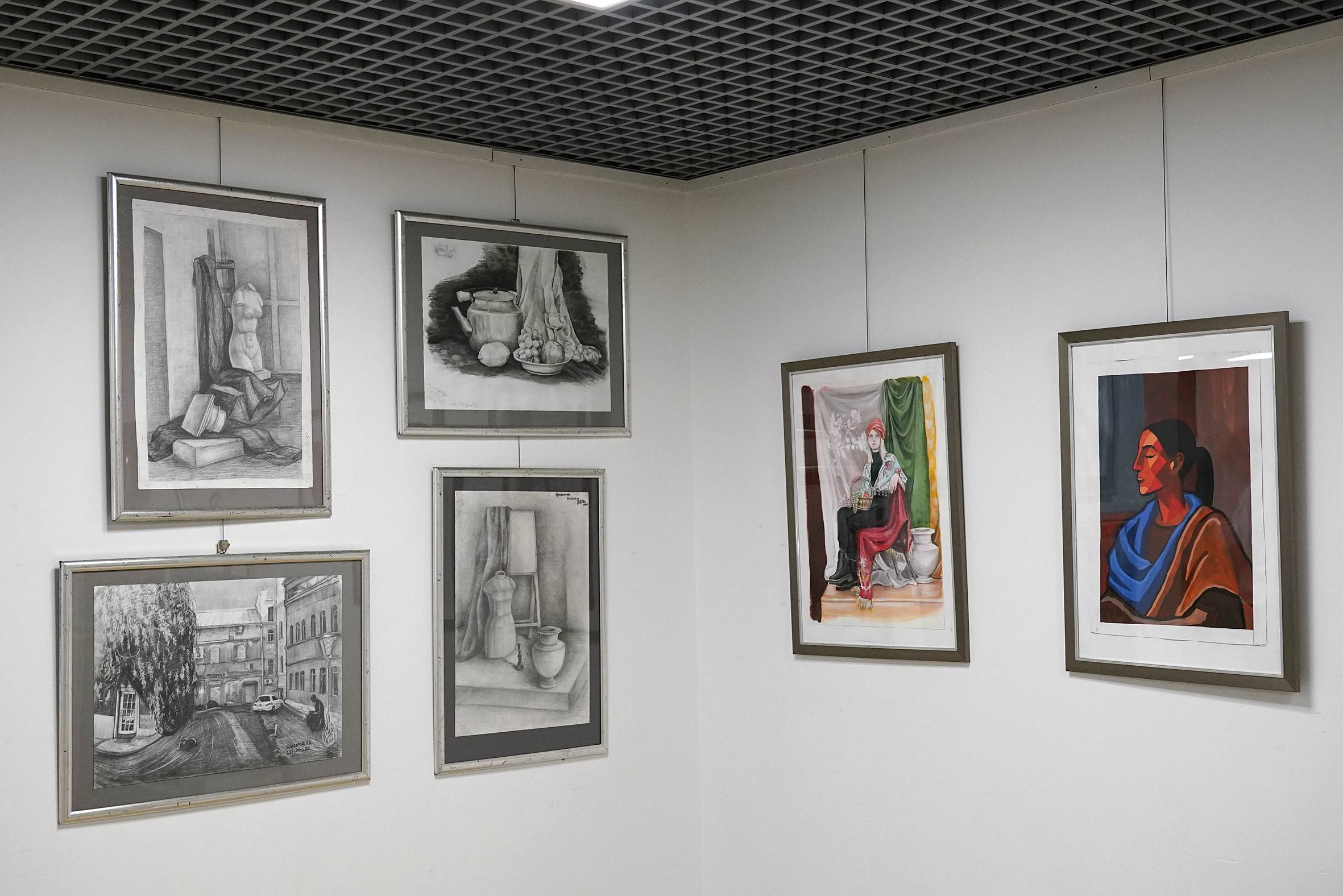 На выставке можно увидеть живопись маслом и гуашь, рисунки сангиной, тушью и карандашом, керамику малых форм и объёмные композиции, батик и дизайн одежды, портреты, натюрморты, пейзажи и жанровые зарисовки, включая рисунки‑стилизации.